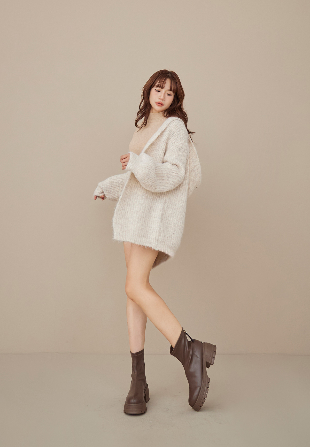 T01 (舒芙蕾系列)混織鬆軟連帽針織外套