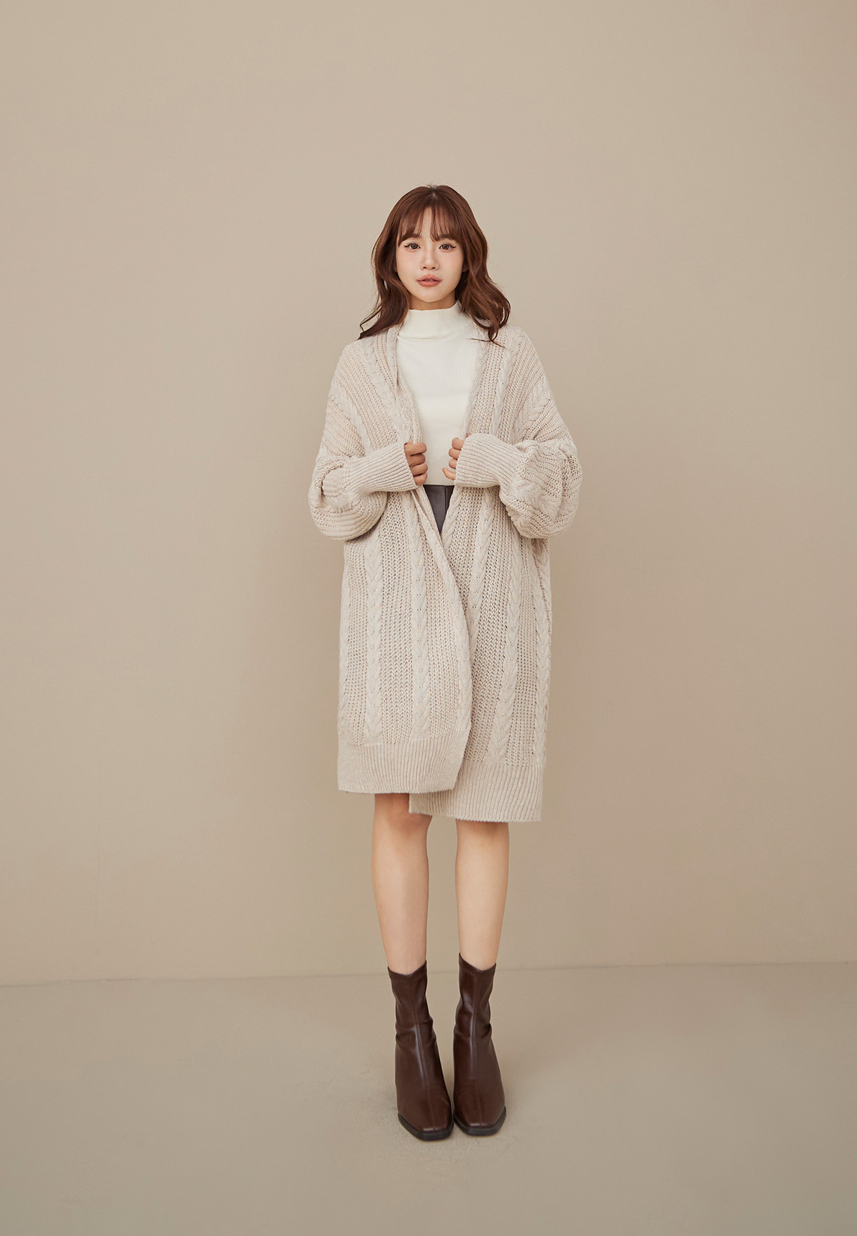 T03 Cozy有夠舒適!修身麻花長針織外套