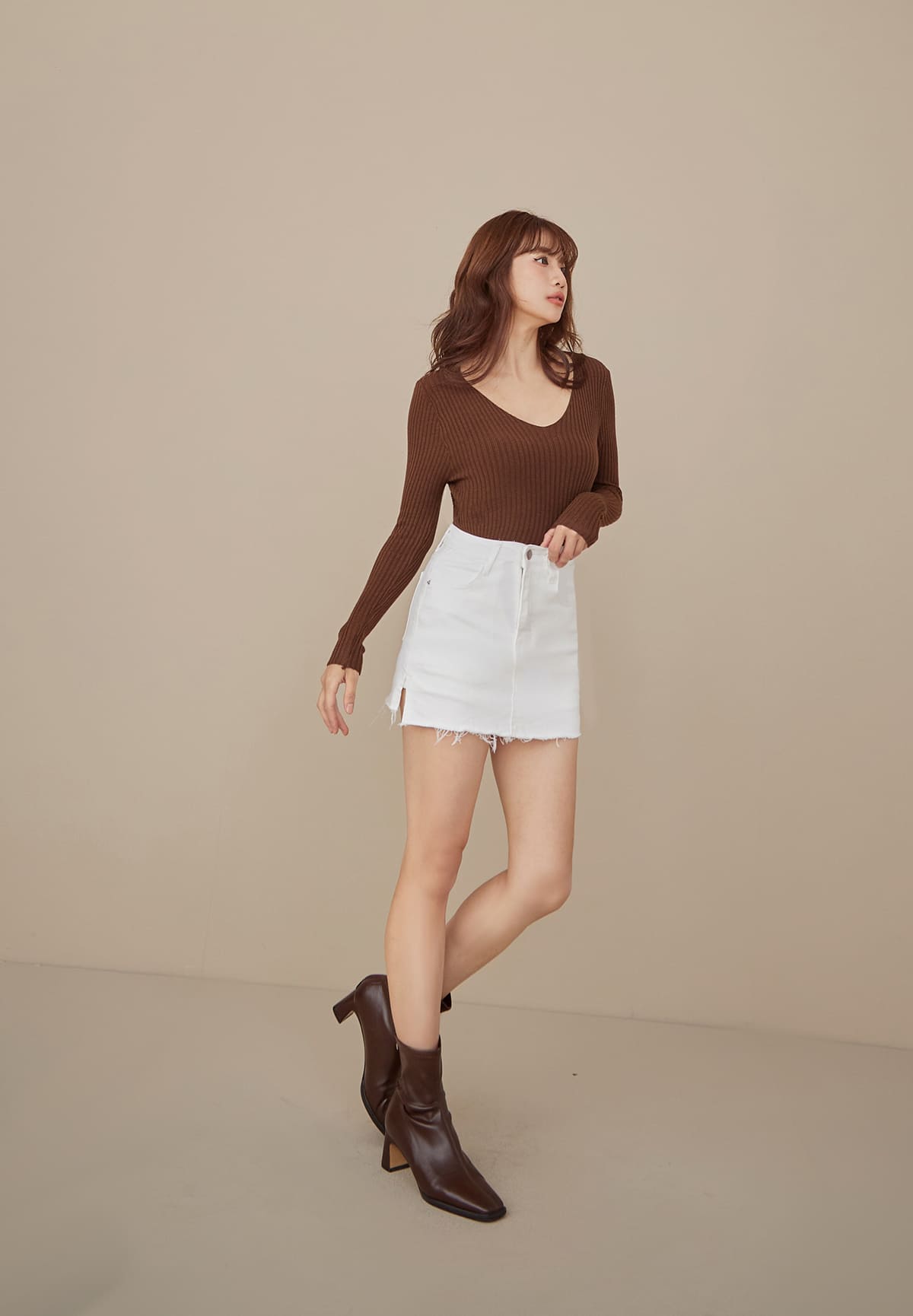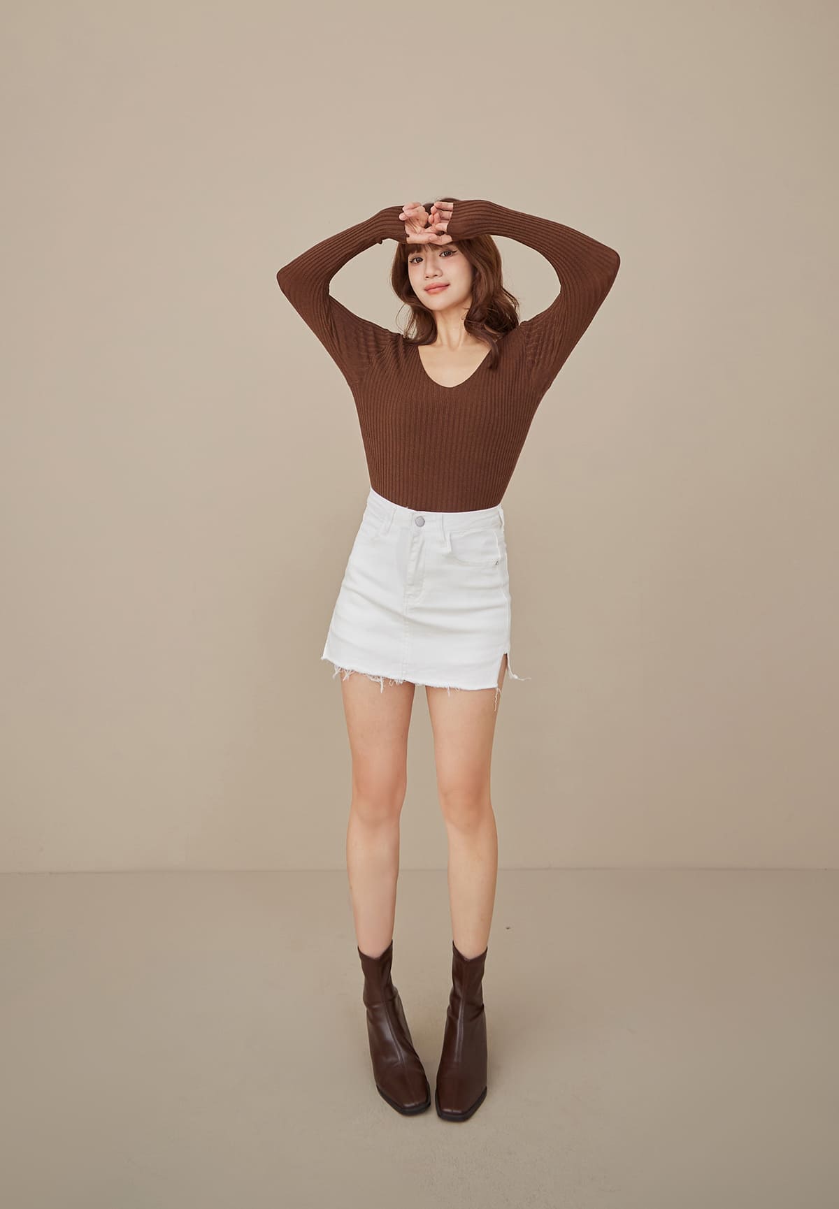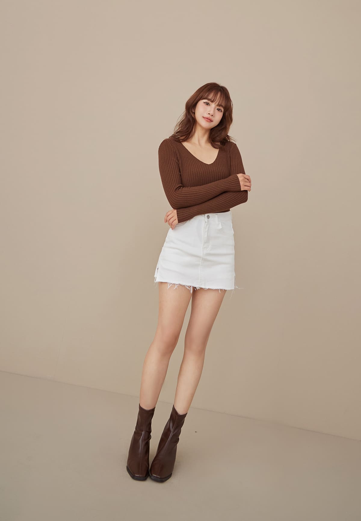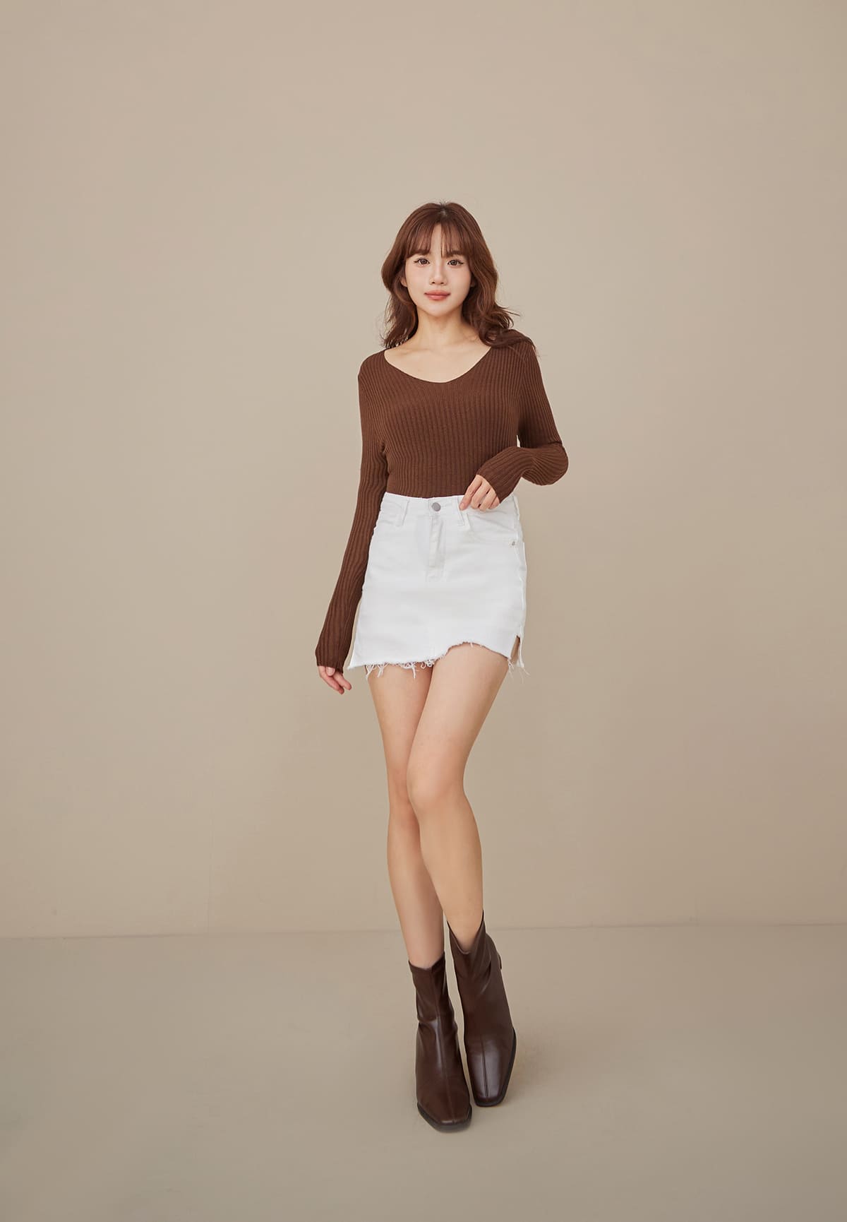 T05 (太實穿)極致親膚V領坑條彈力上衣