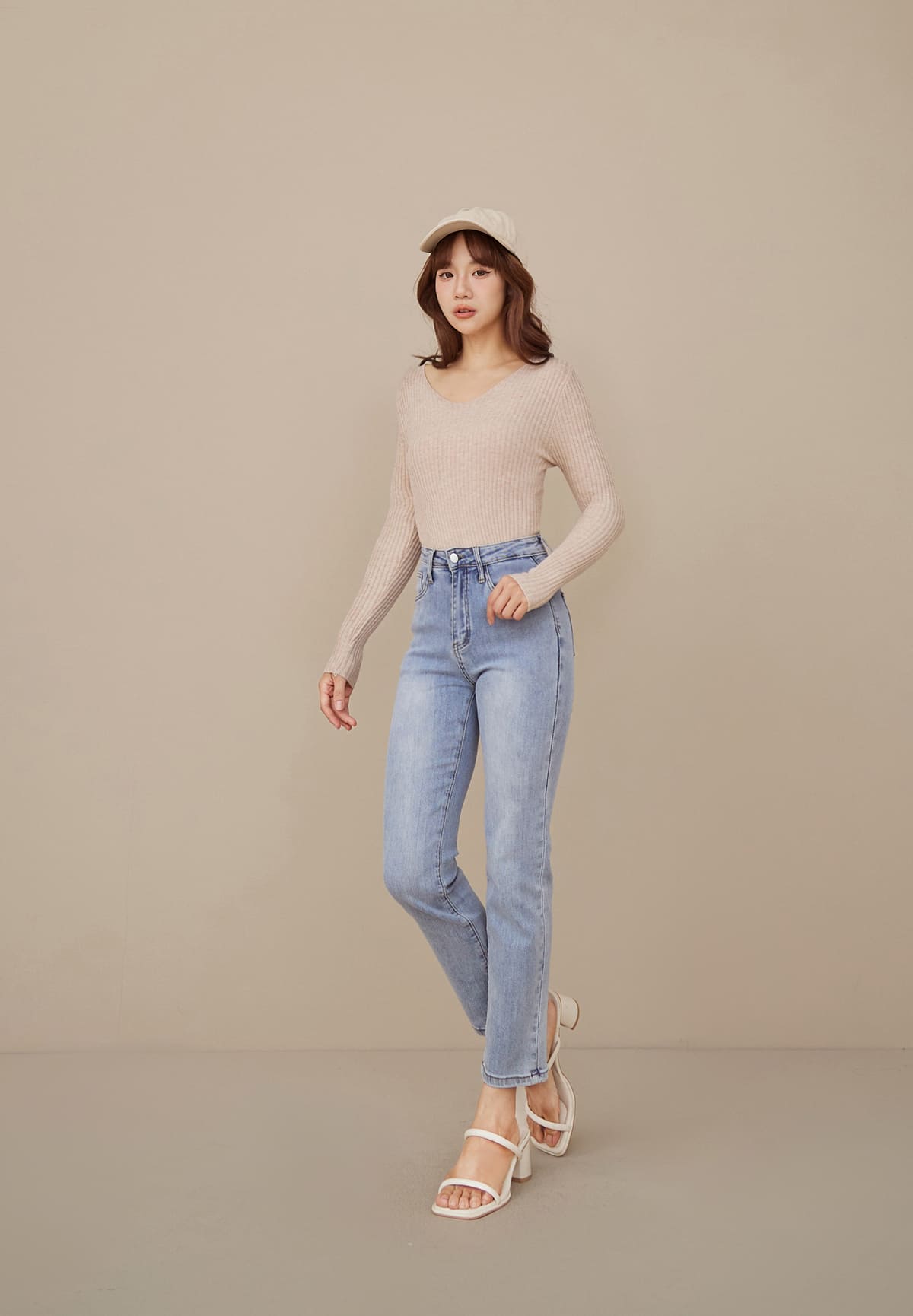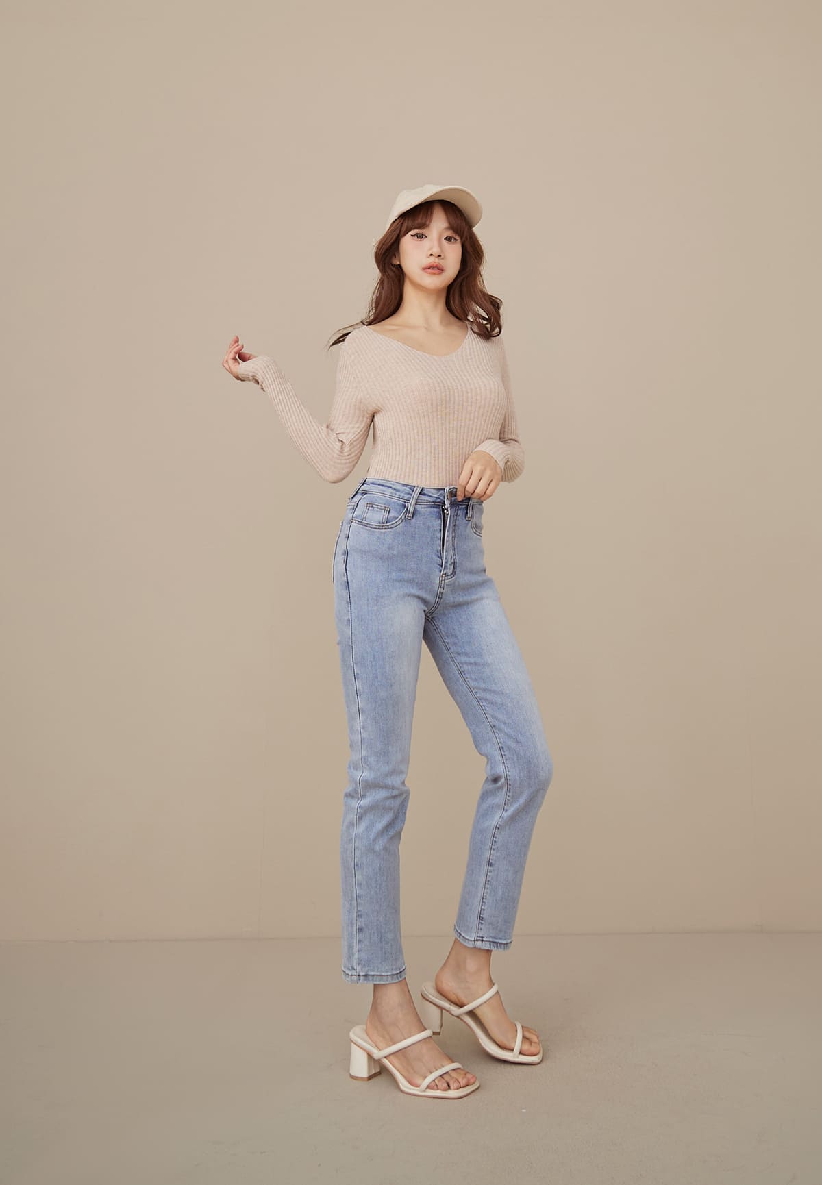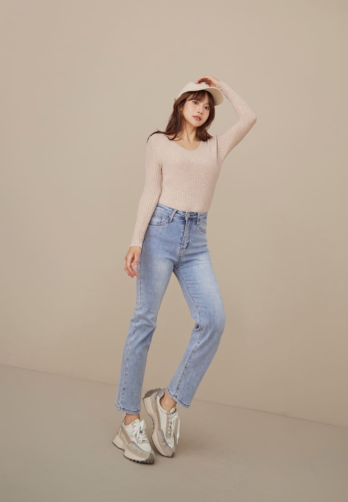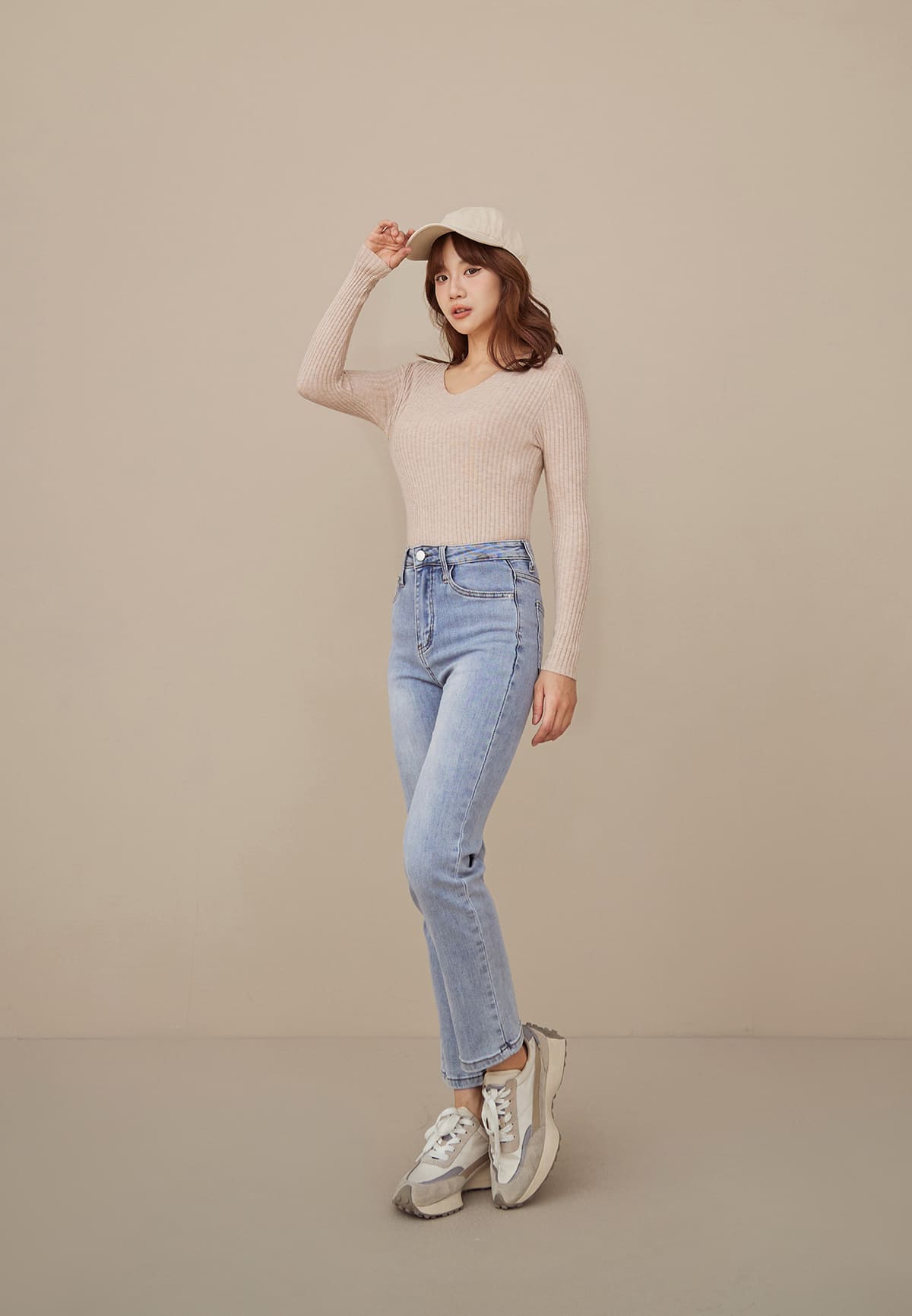 T05 (太實穿)極致親膚V領坑條彈力上衣