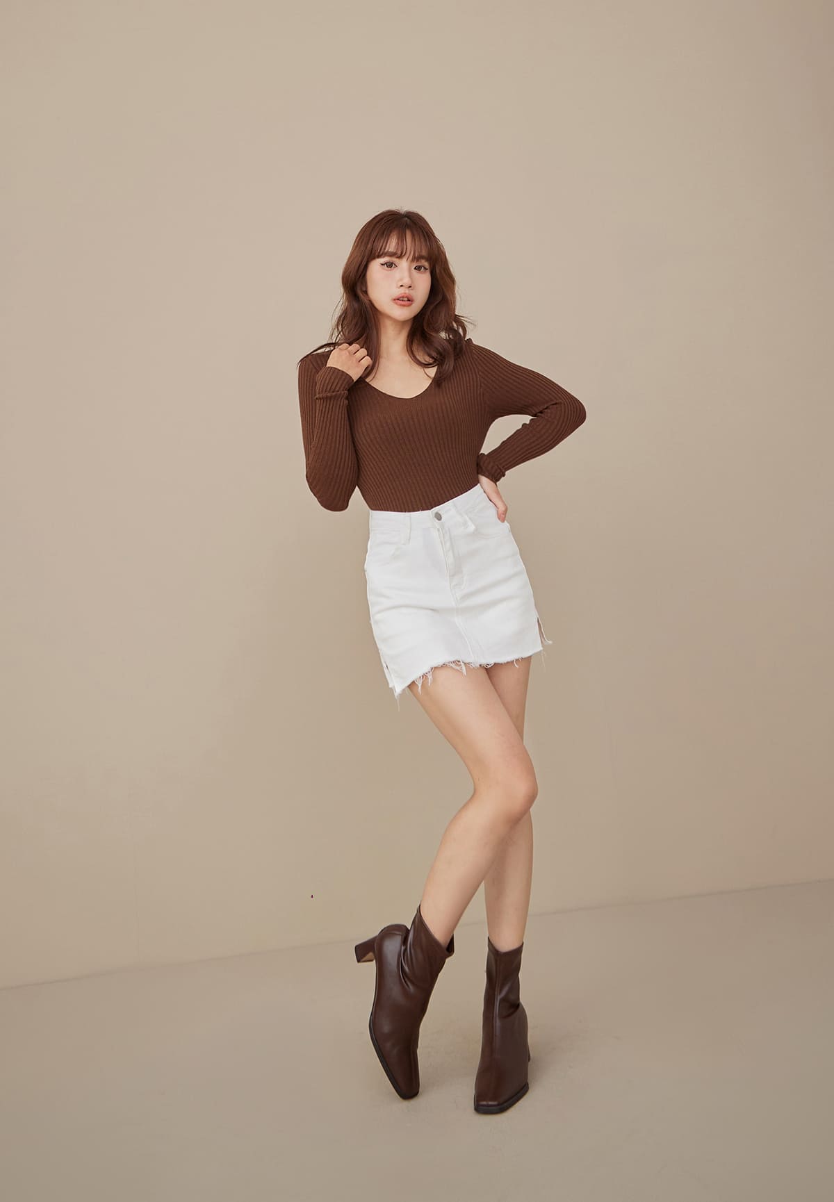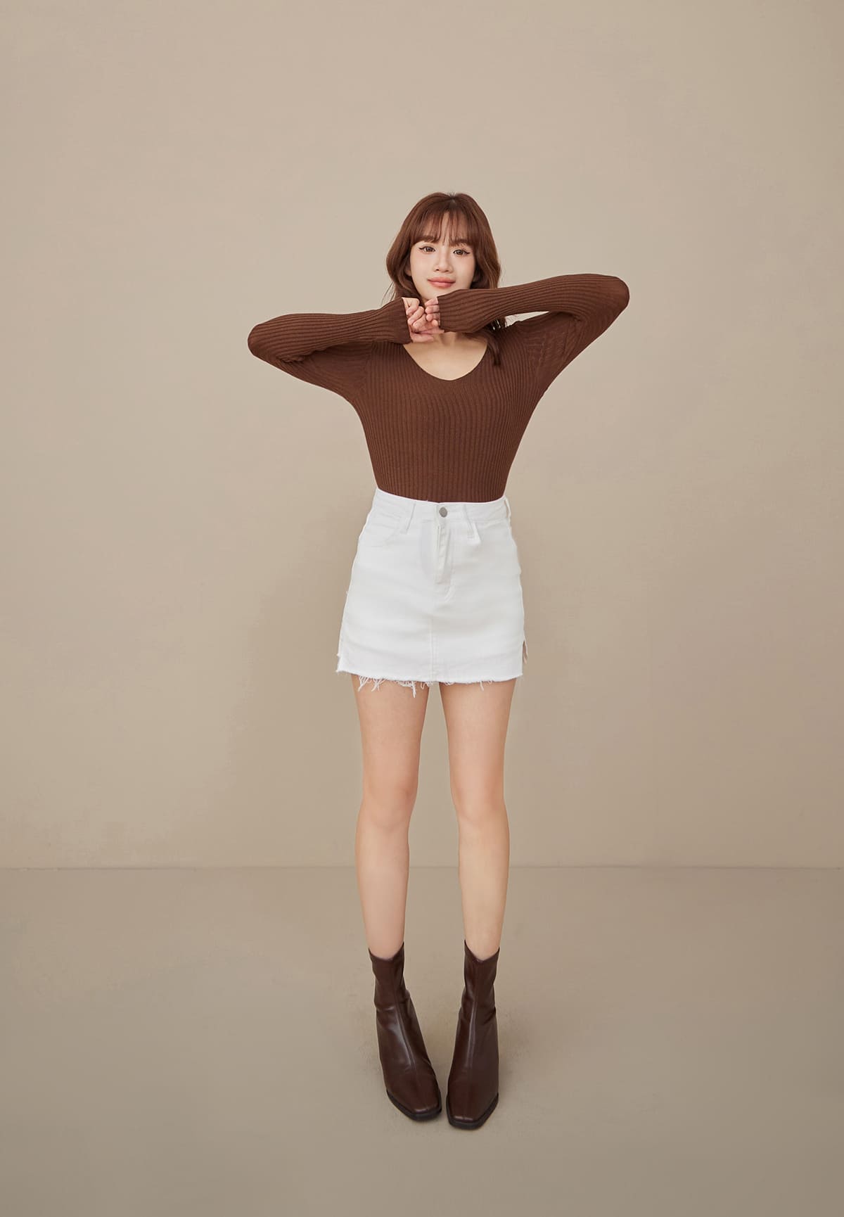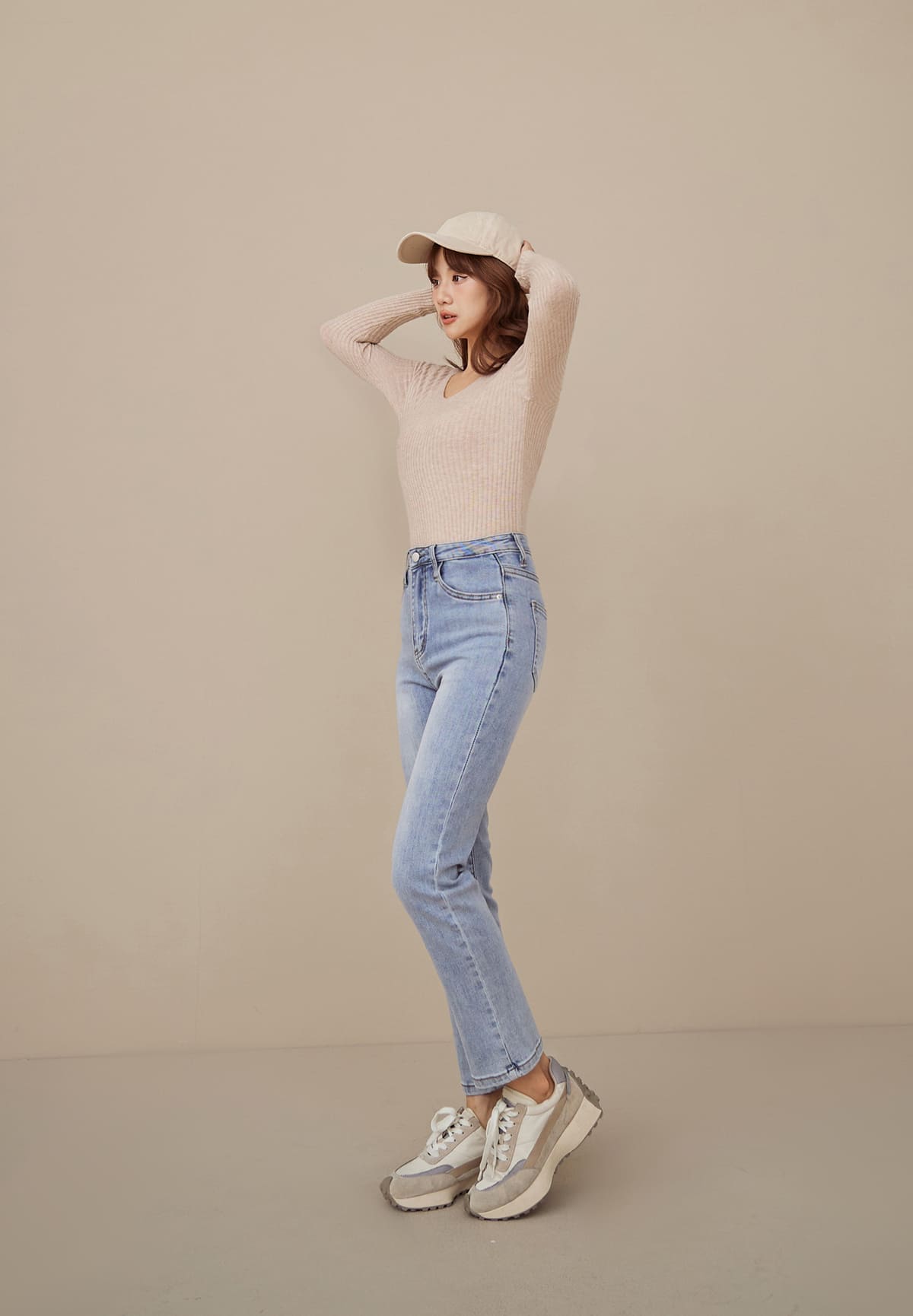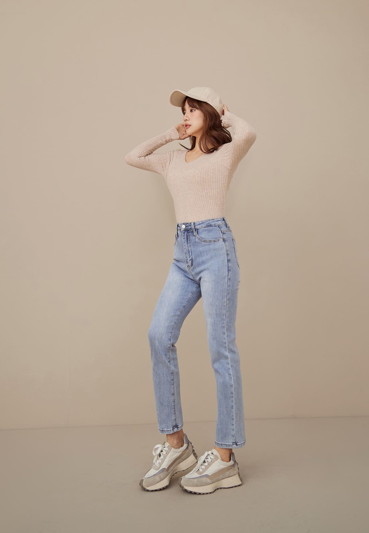 T05 (太實穿)極致親膚V領坑條彈力上衣