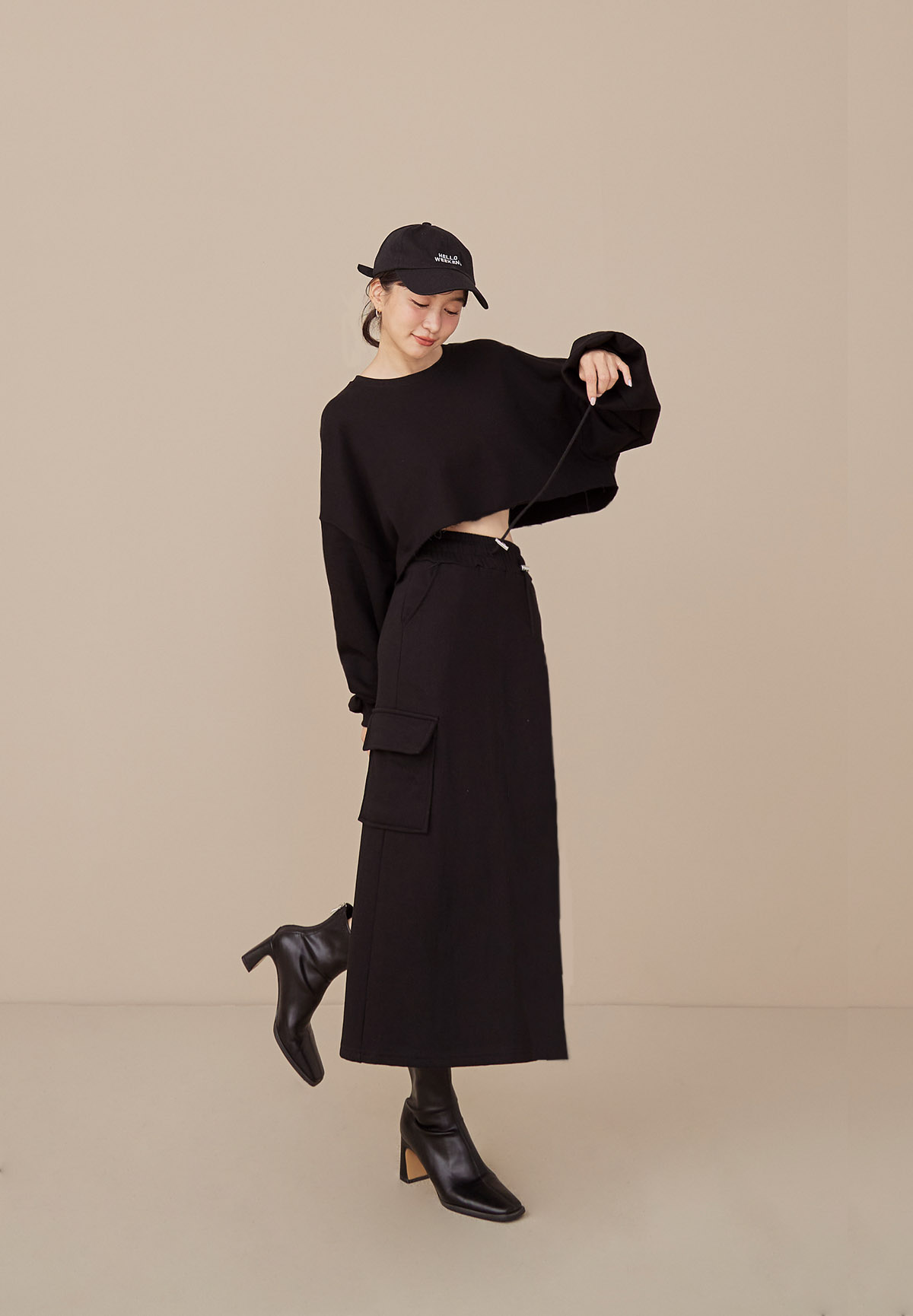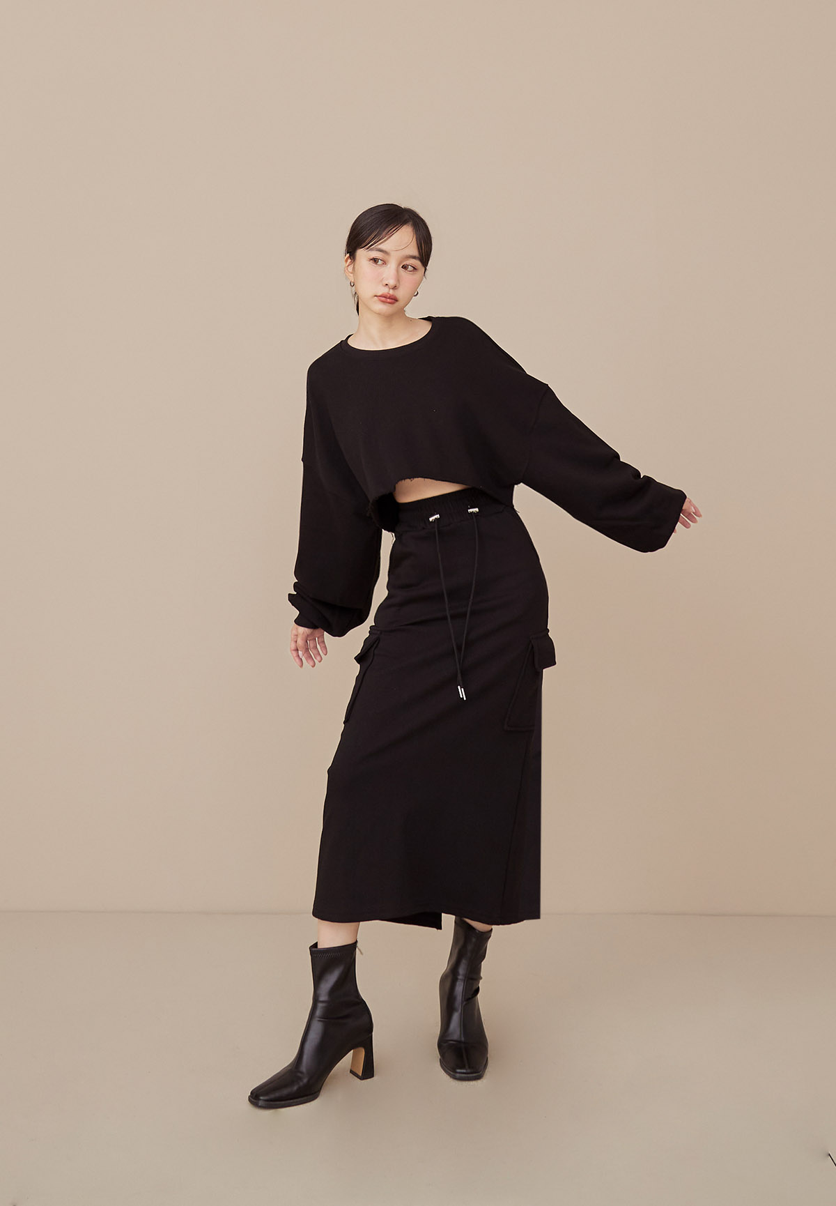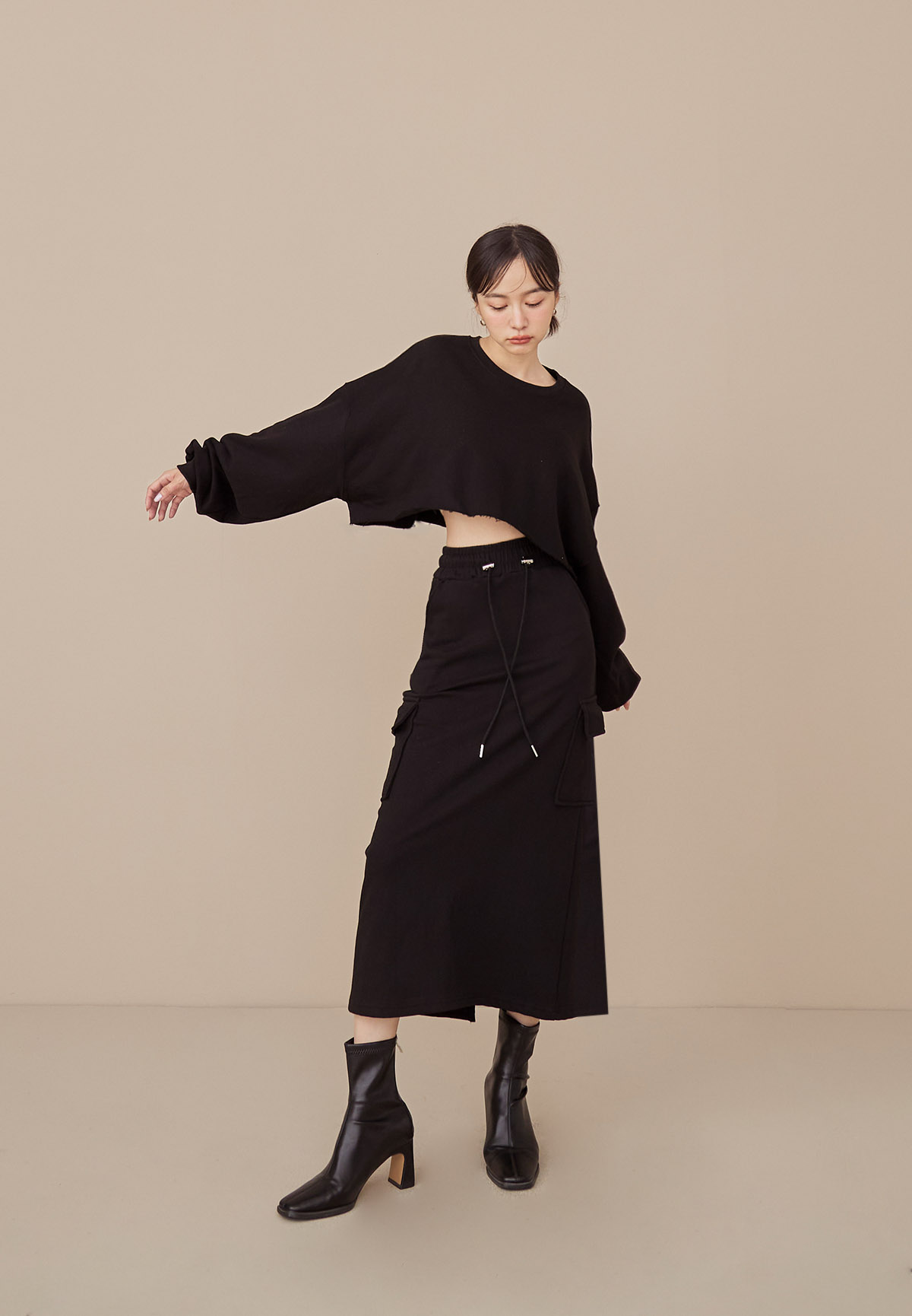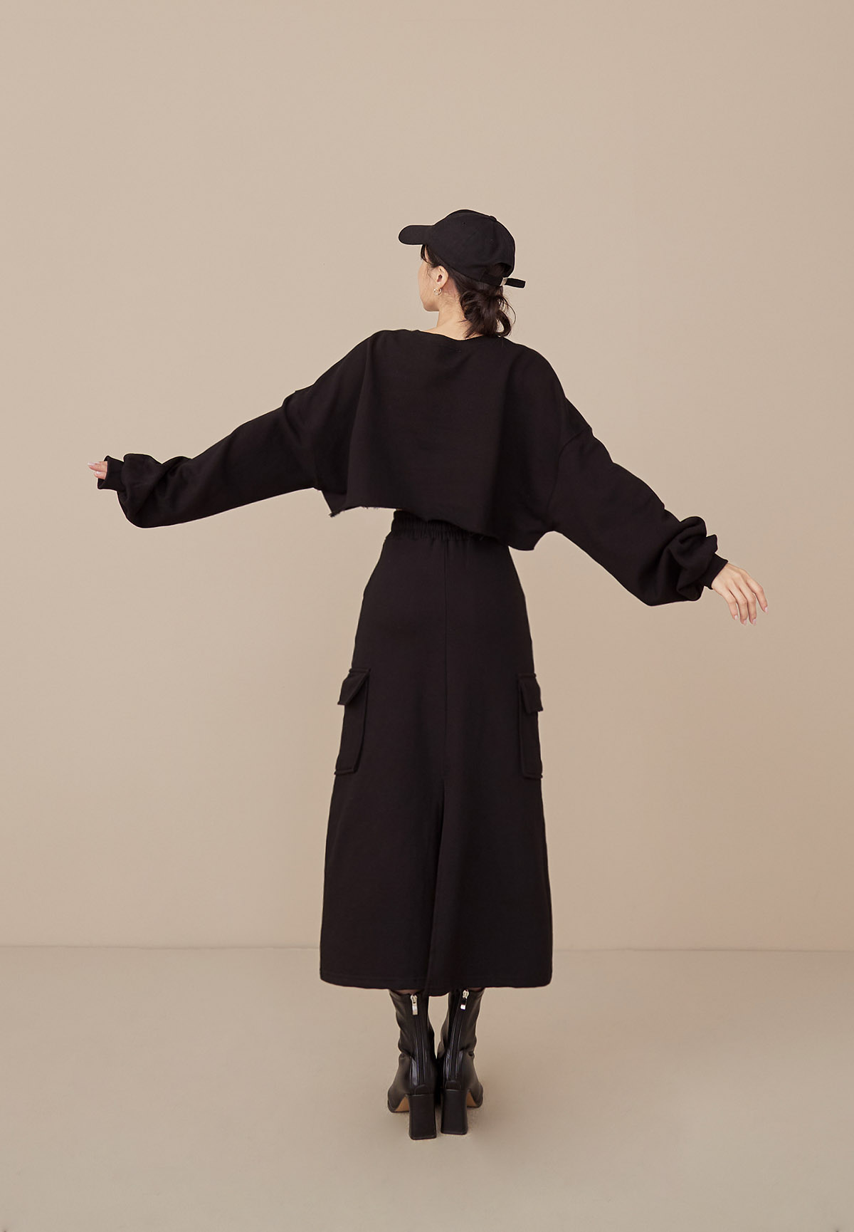 B43 Stylish 帥美範本抽繩口袋工裝長裙