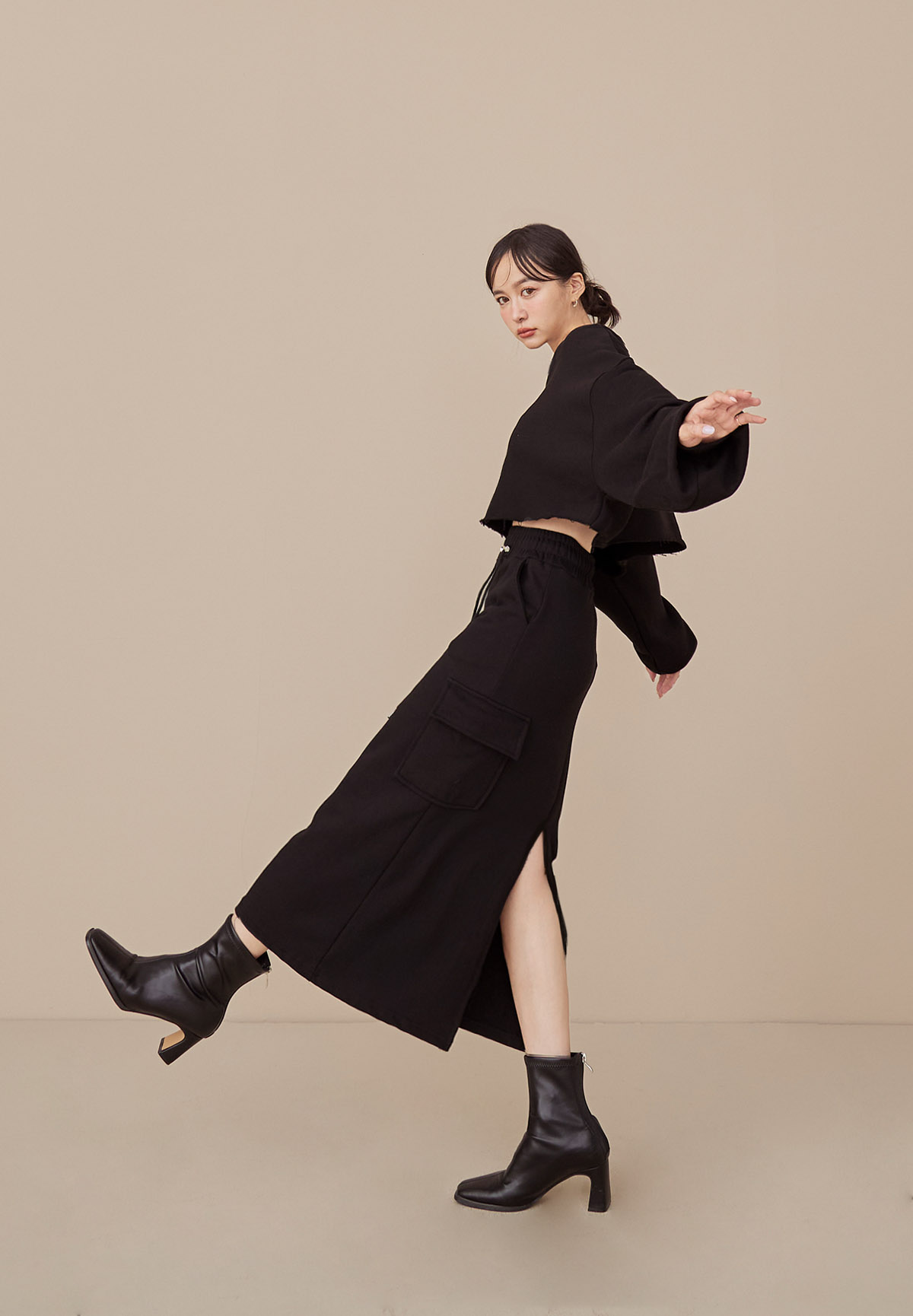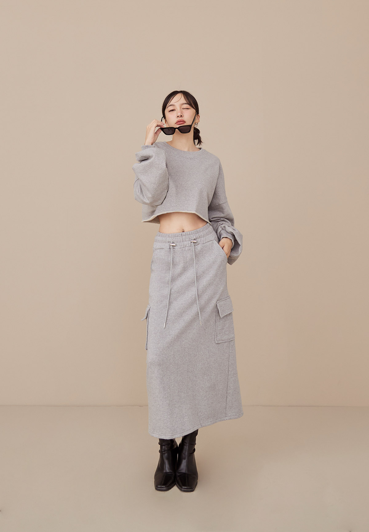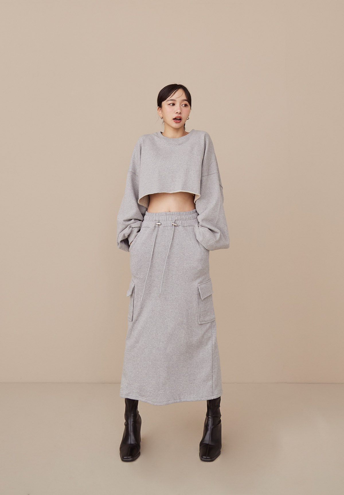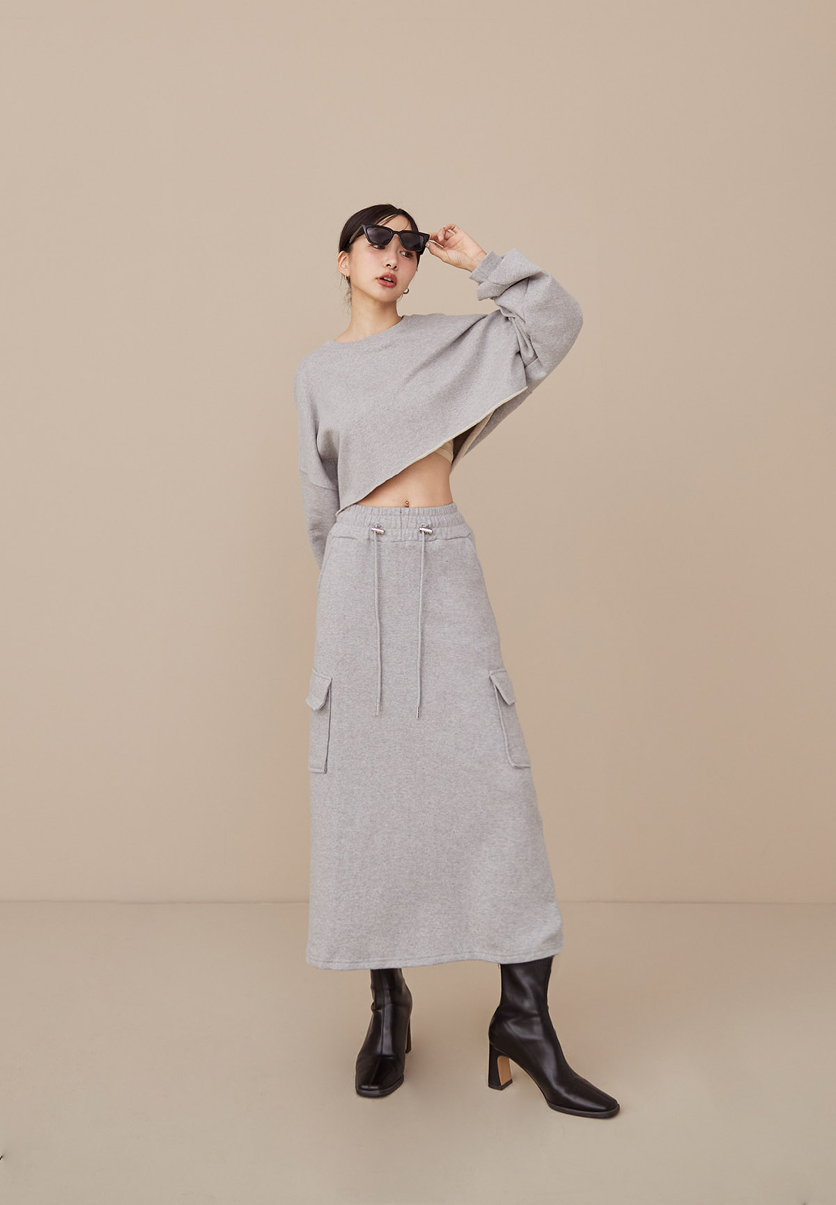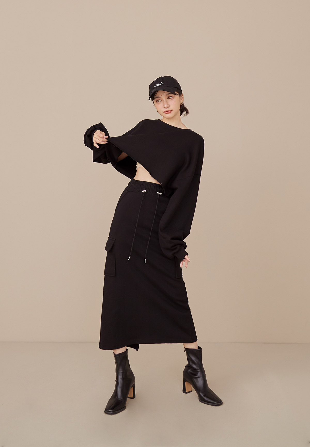 B43 Stylish 帥美範本抽繩口袋工裝長裙