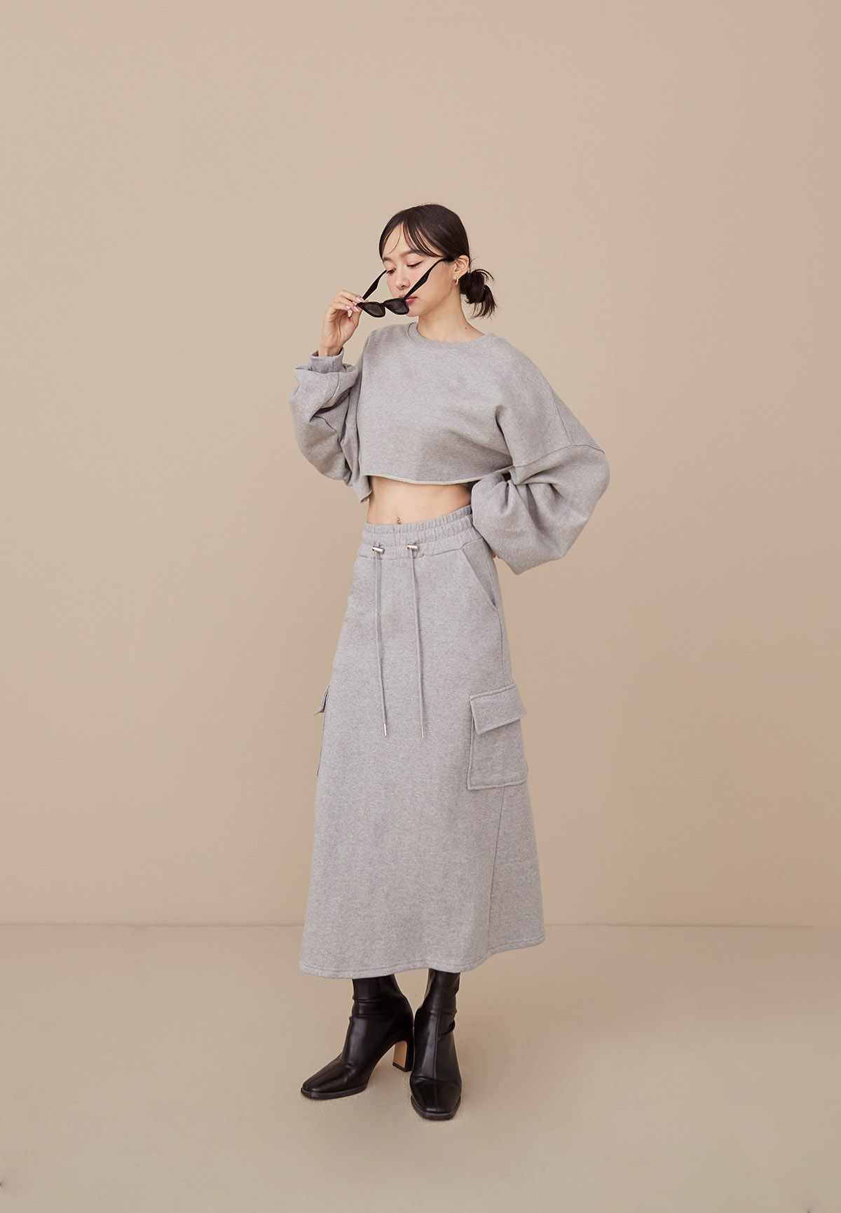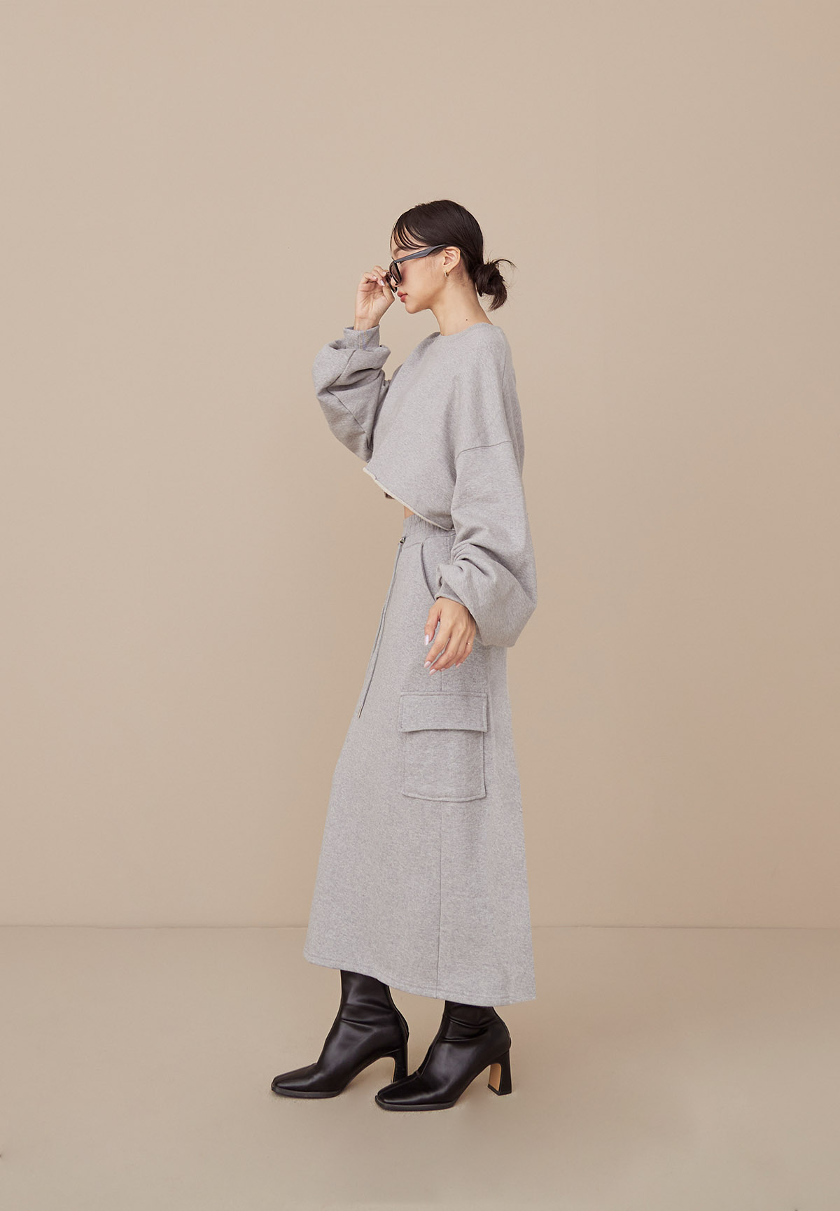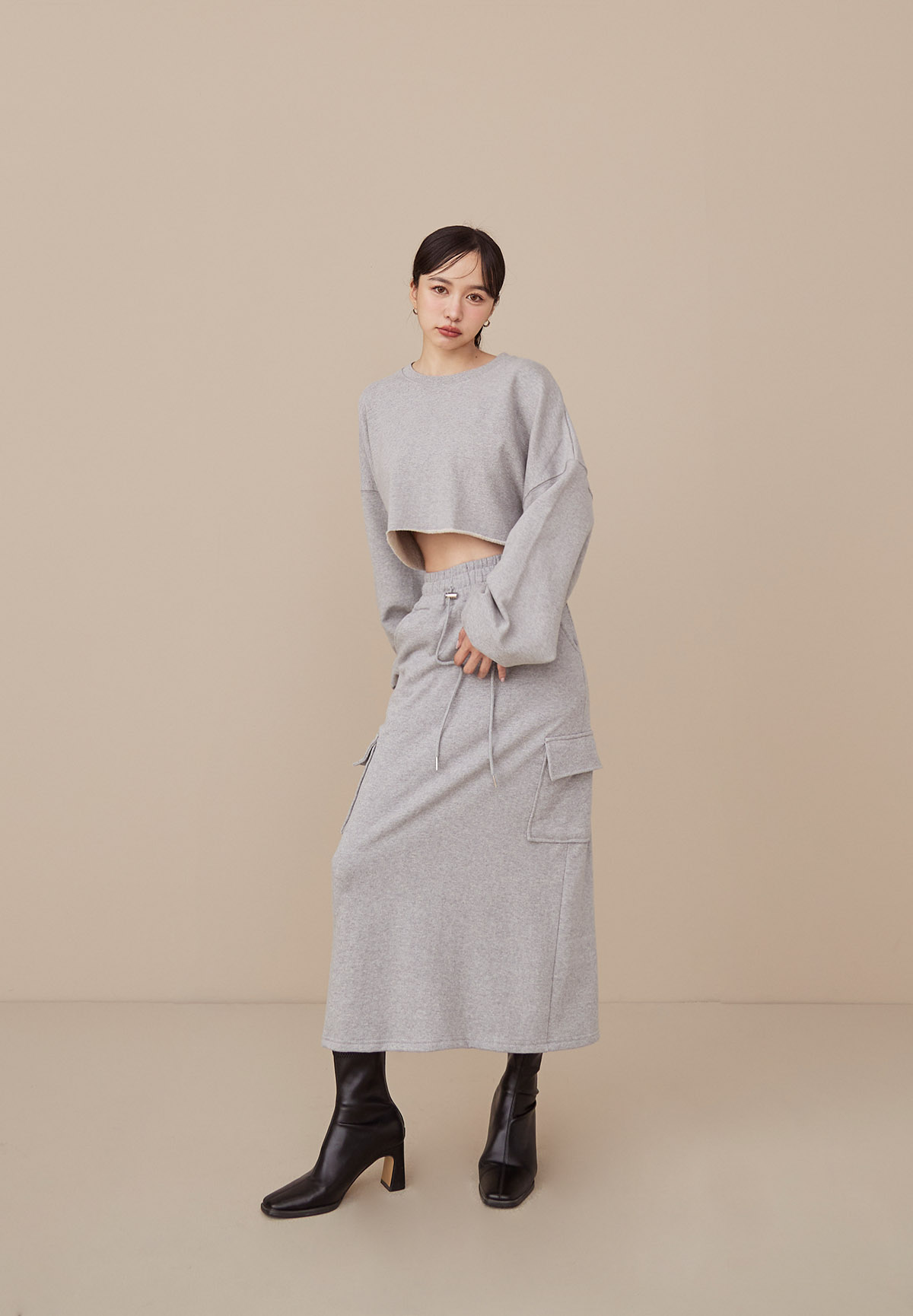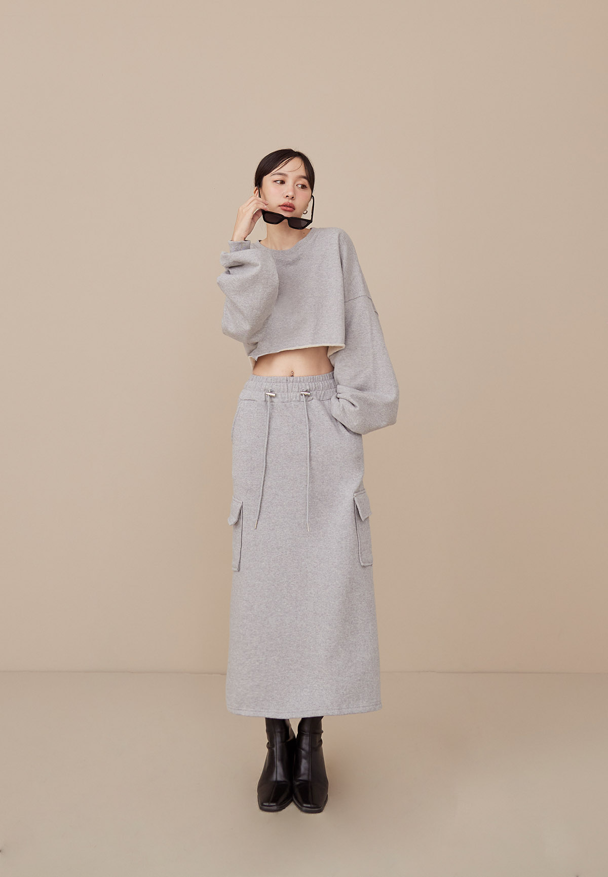B43 Stylish 帥美範本抽繩口袋工裝長裙