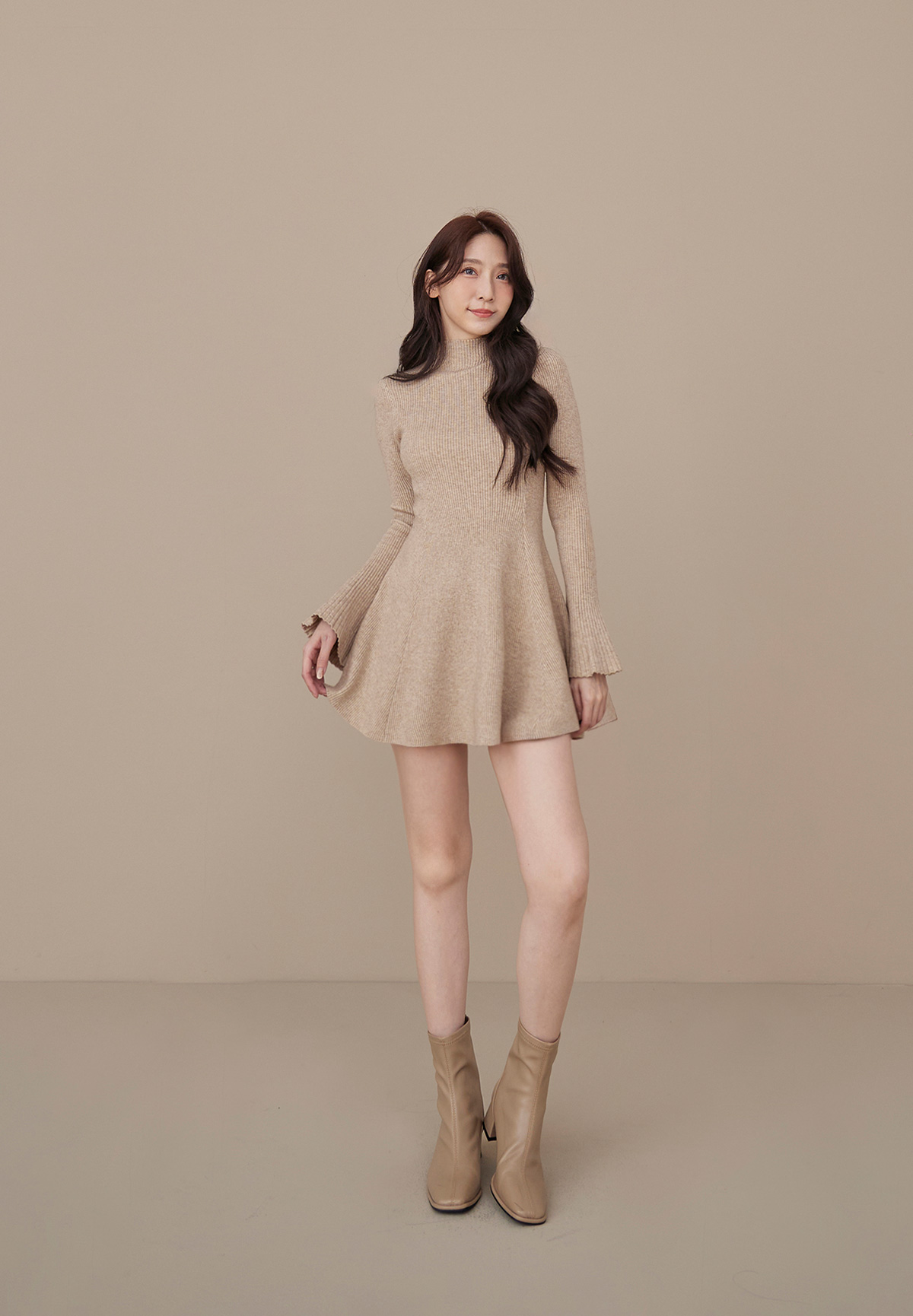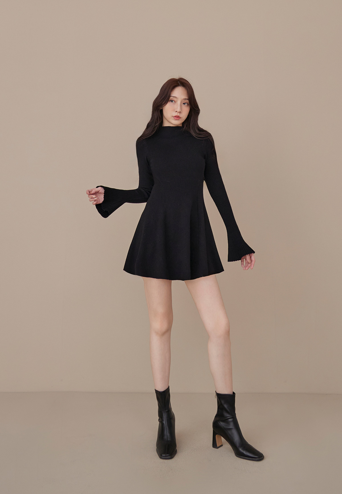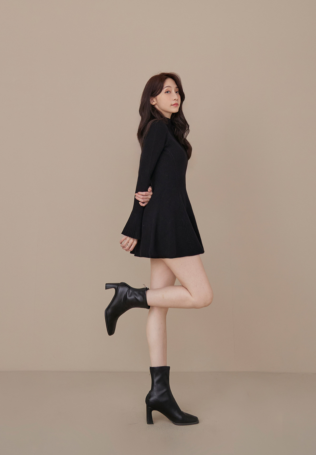 B06性感的不疾不徐小立領荷葉袖針織洋裝