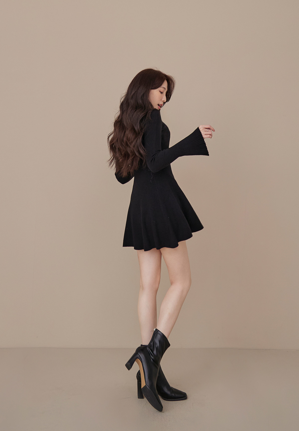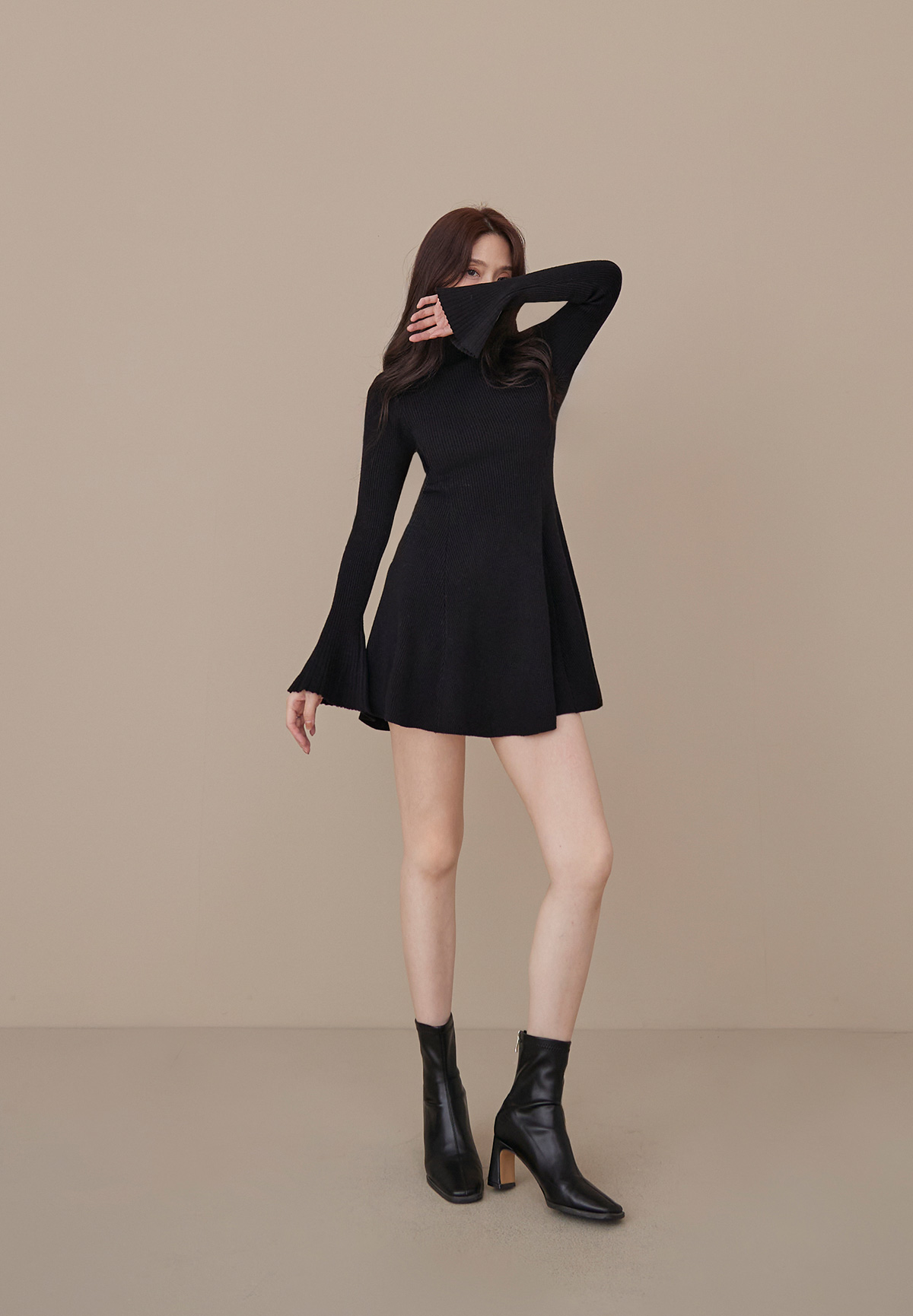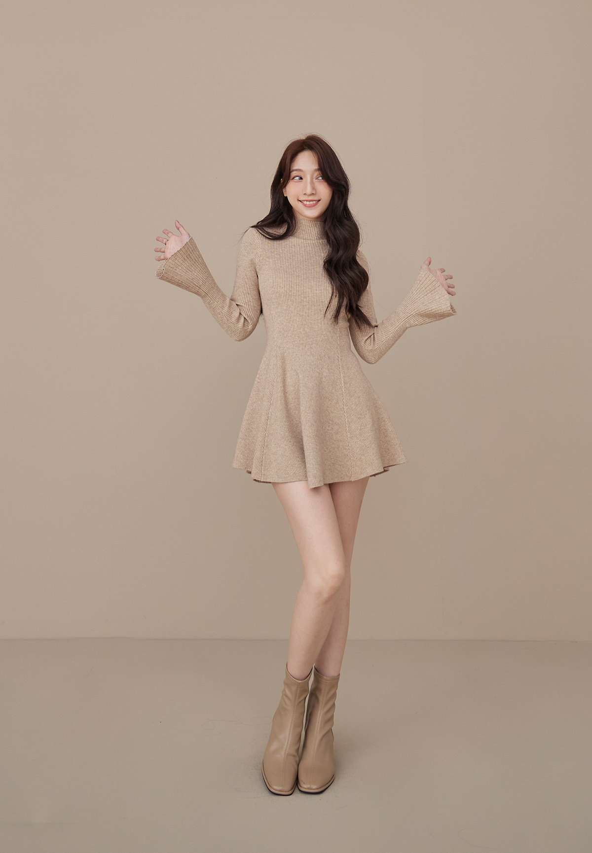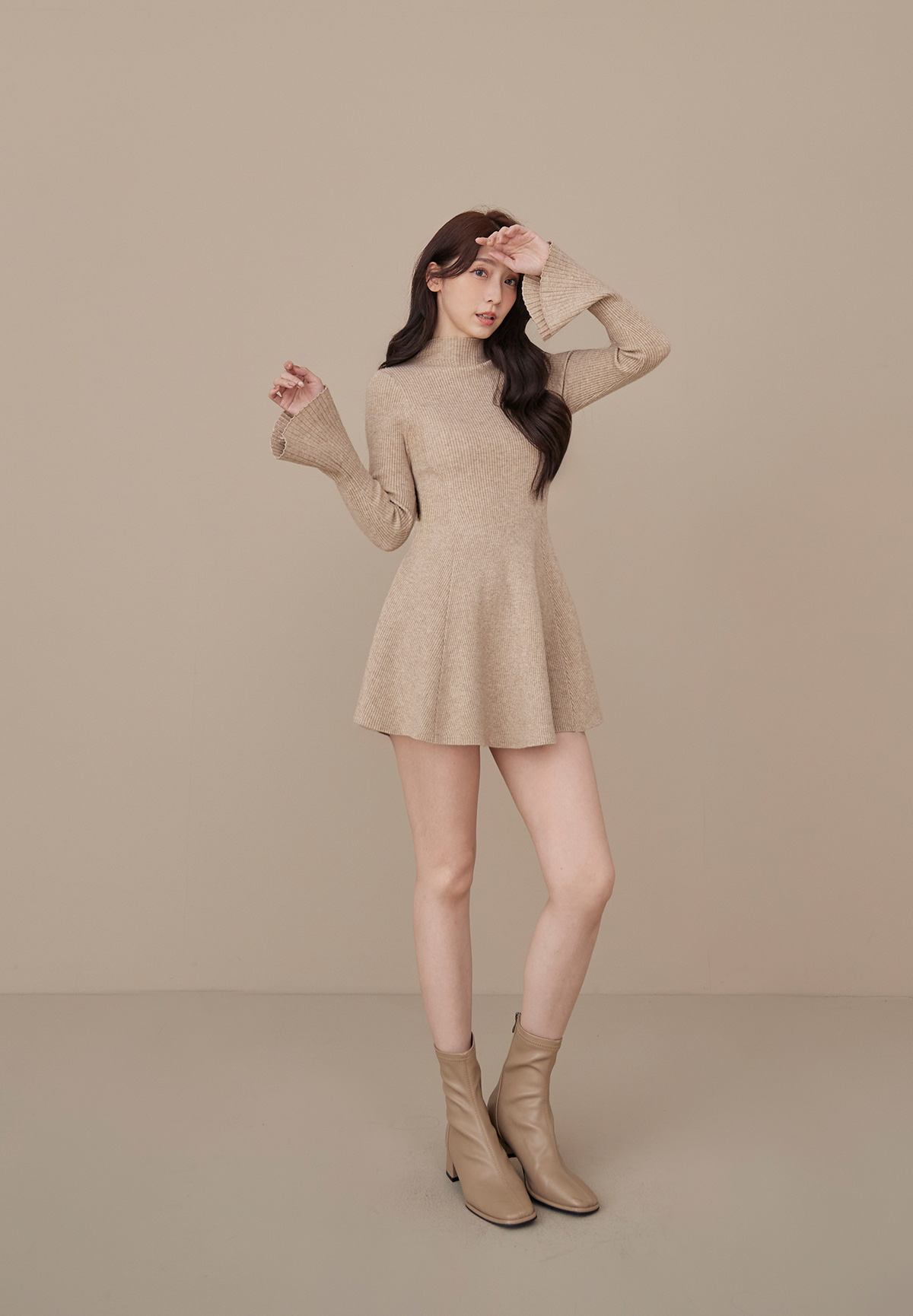 B06性感的不疾不徐小立領荷葉袖針織洋裝