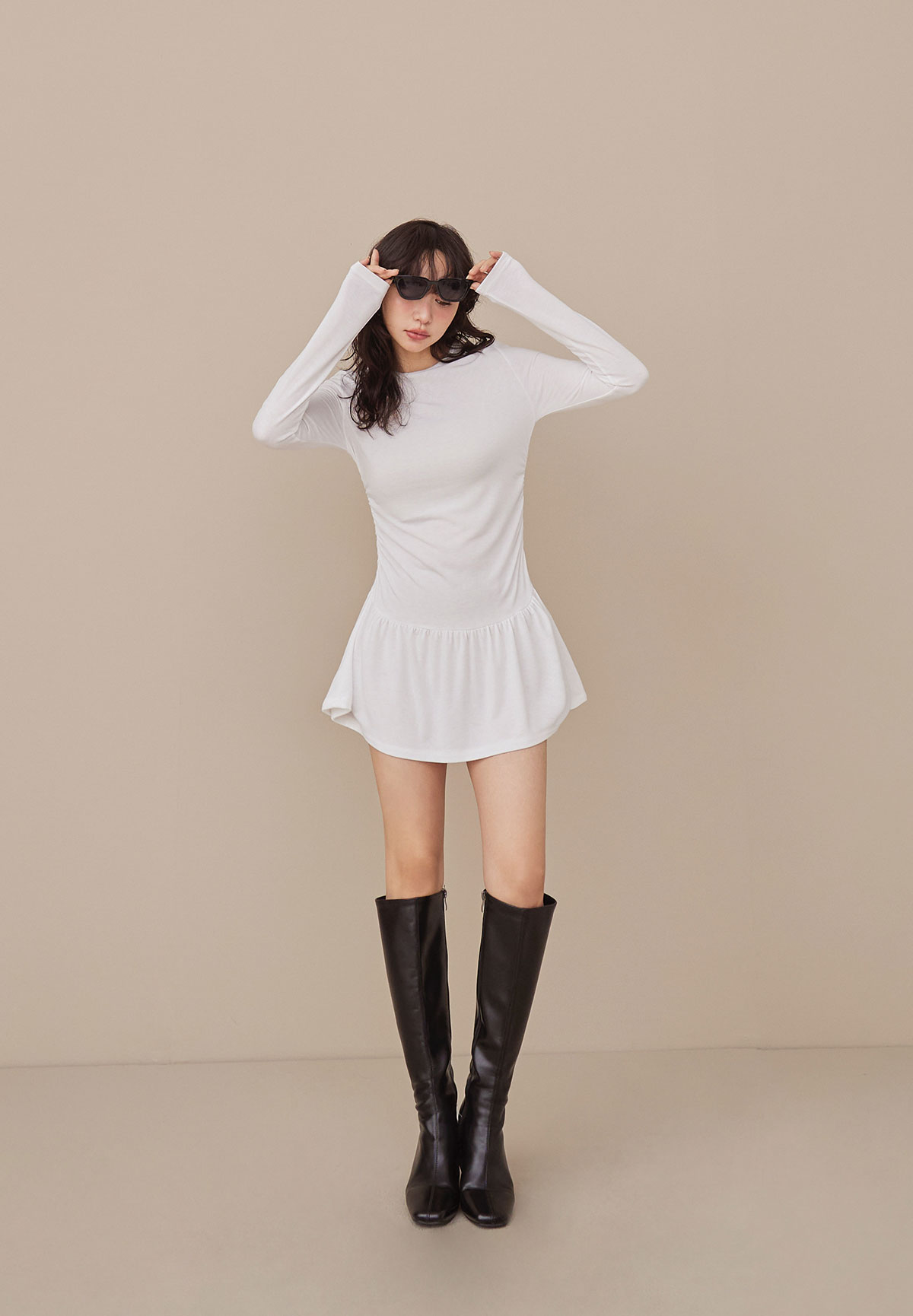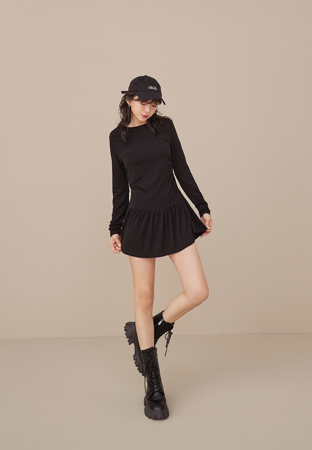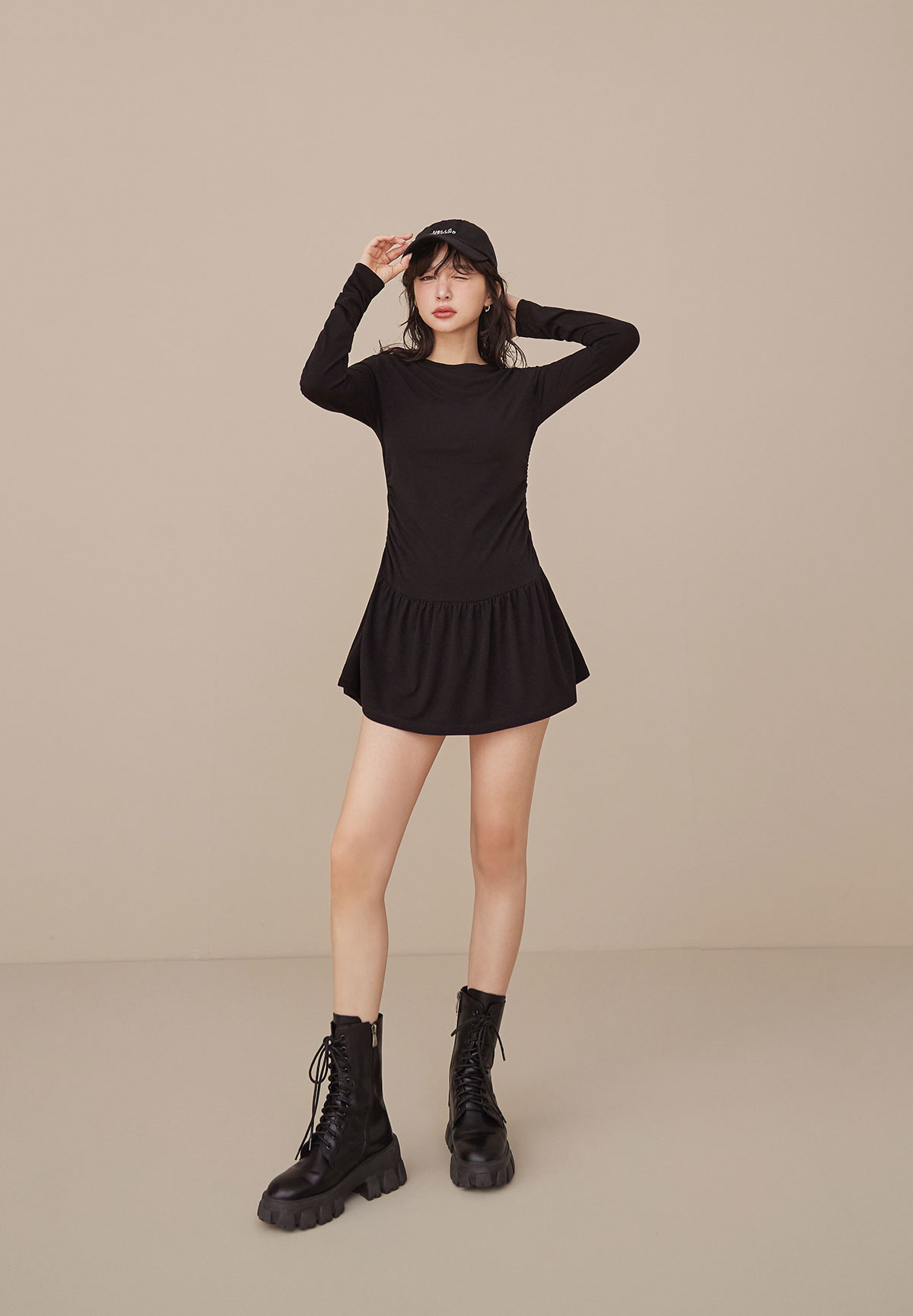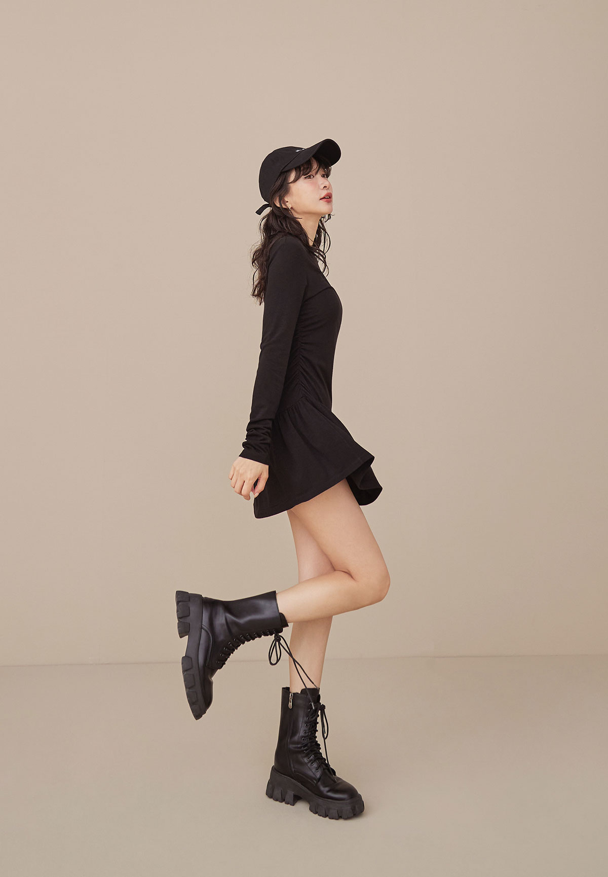 A34迷人芭蕾風腰抽皺洋裝(疊搭毛衣超完美)