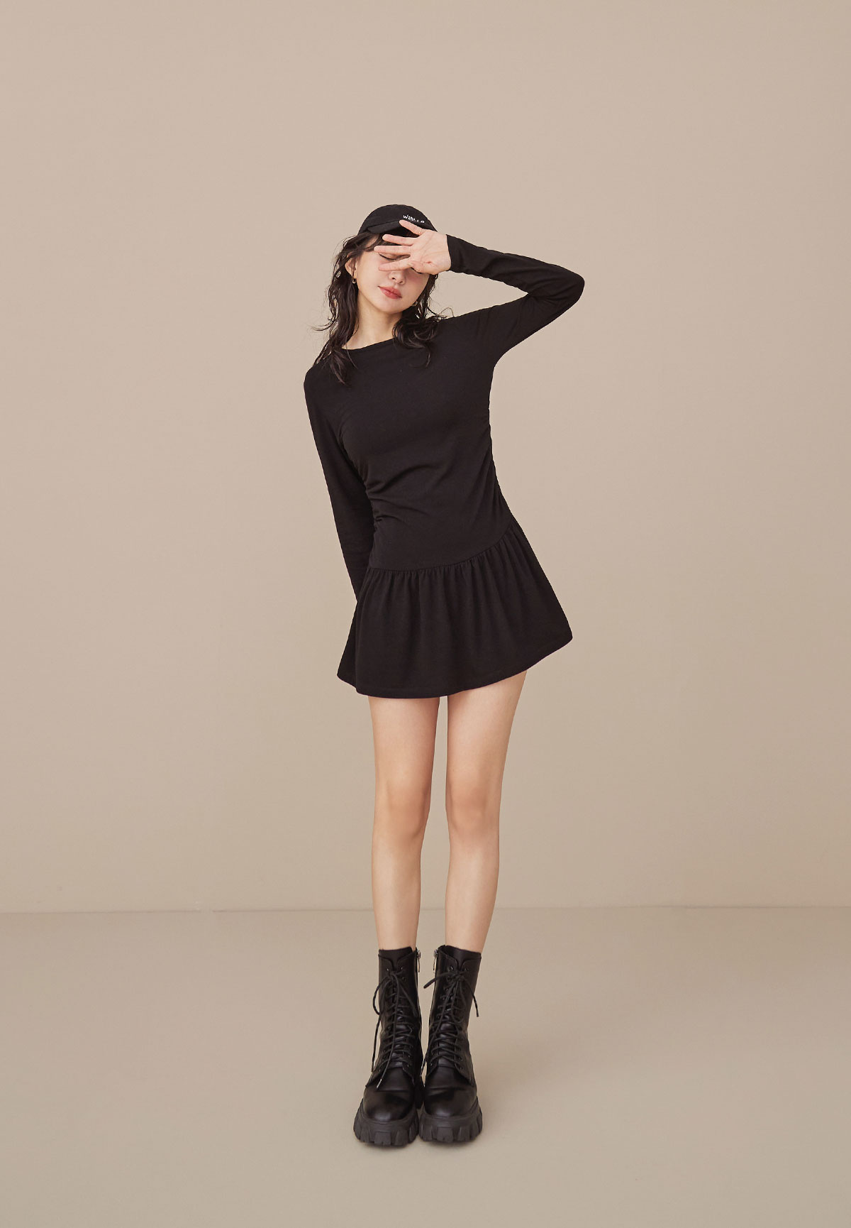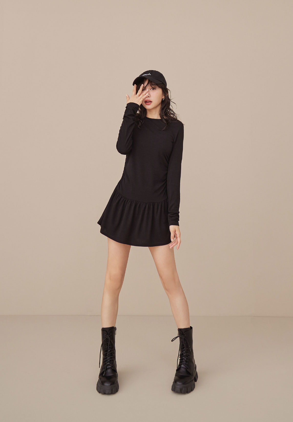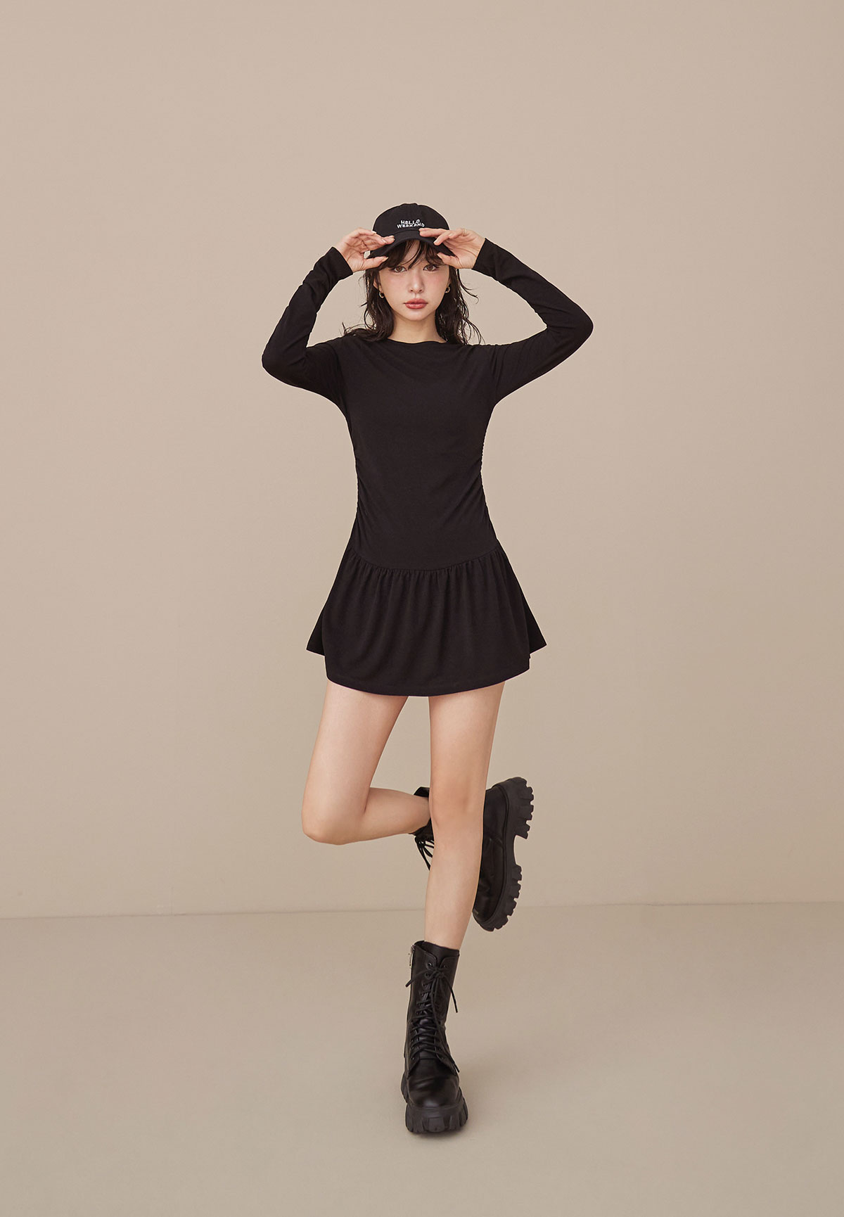 A34迷人芭蕾風腰抽皺洋裝(疊搭毛衣超完美)