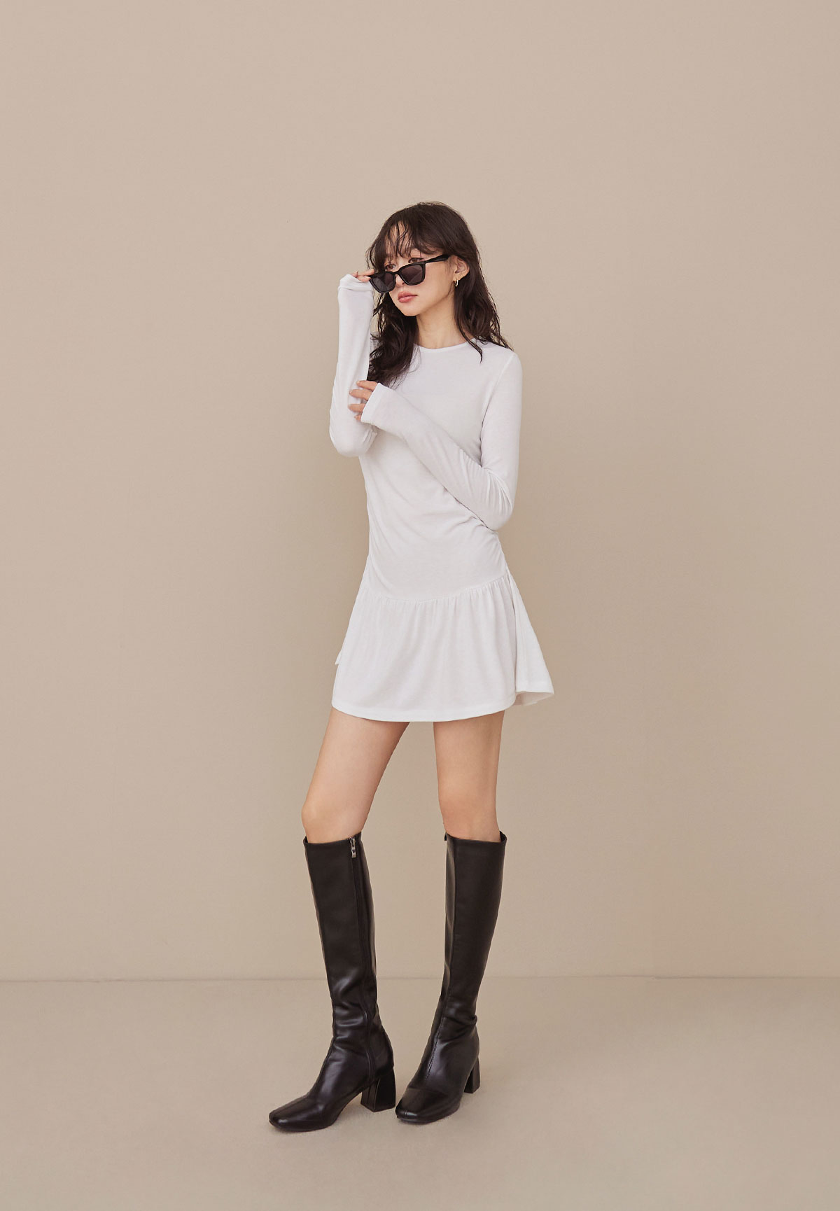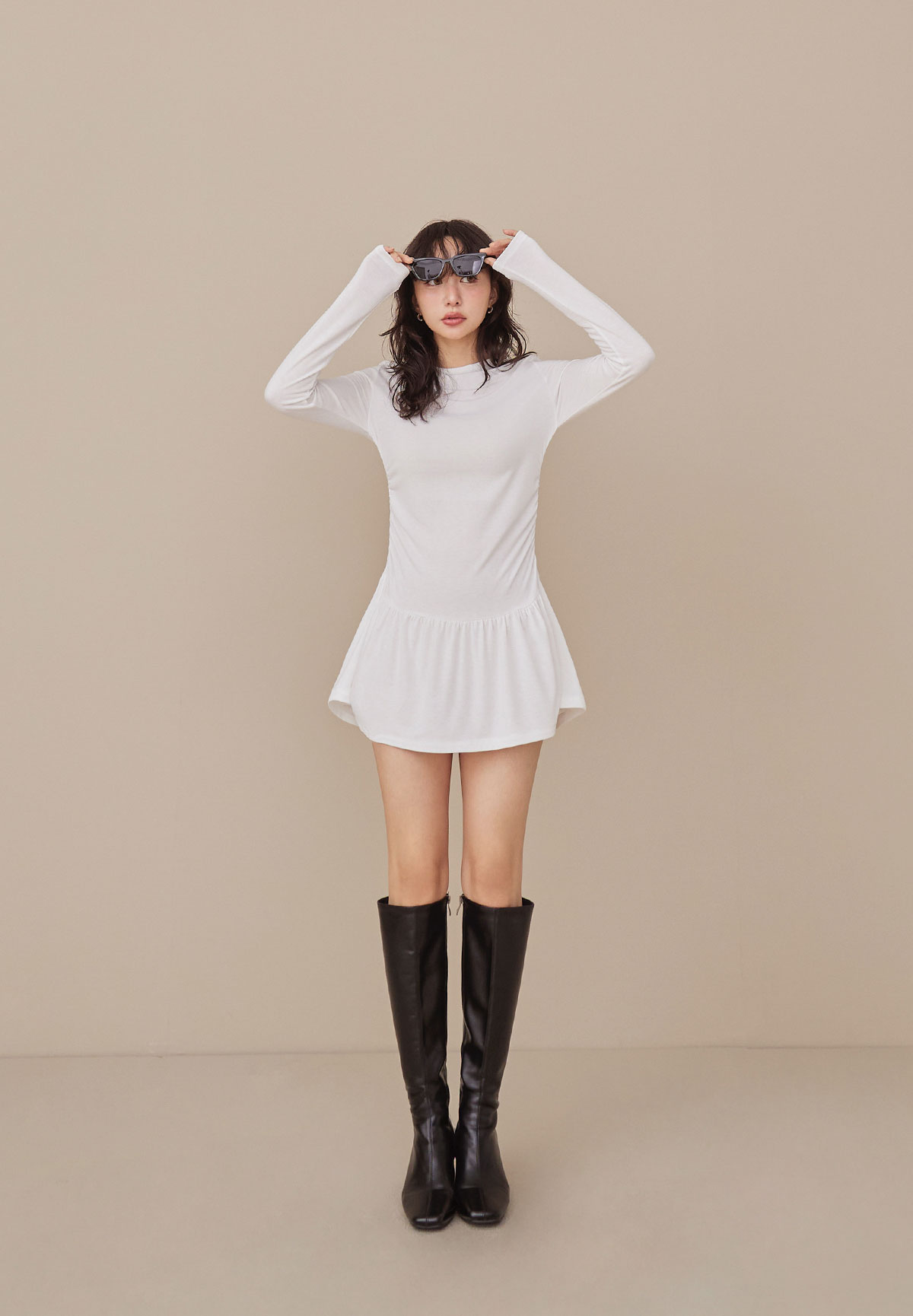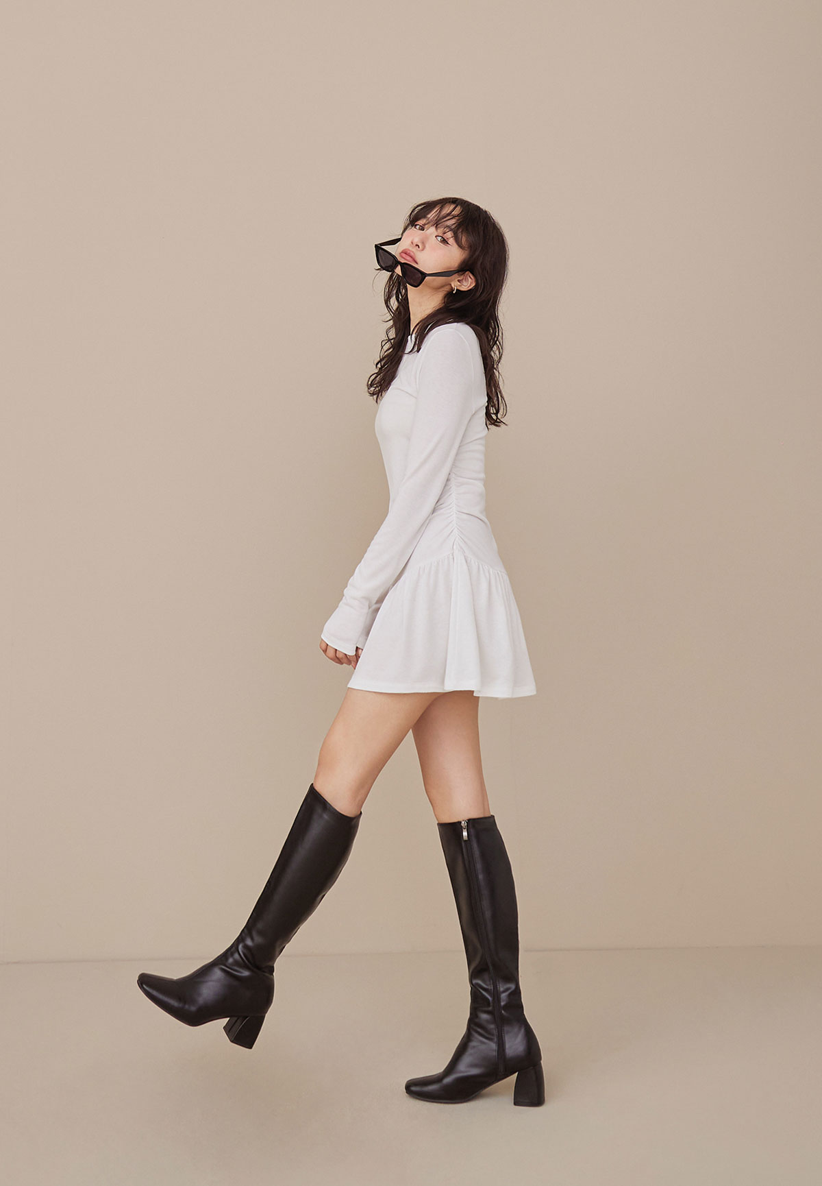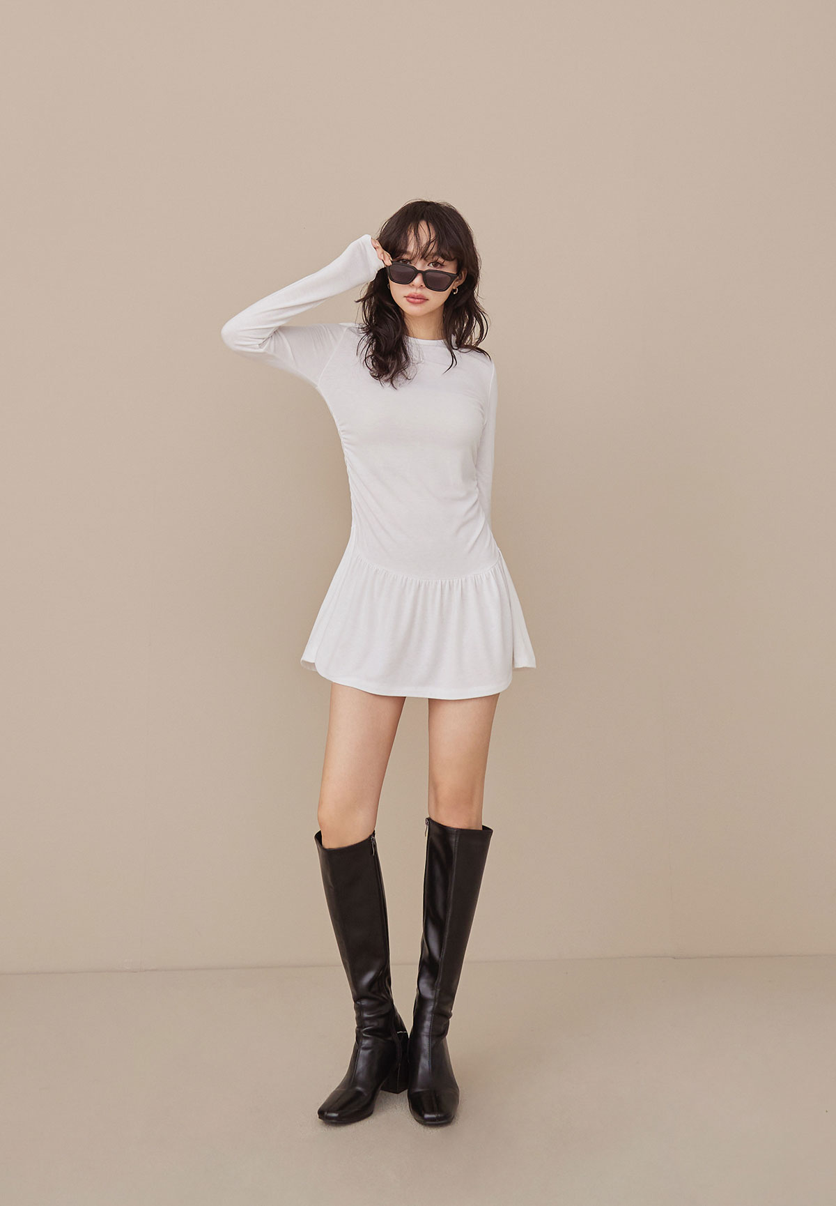 A34迷人芭蕾風腰抽皺洋裝(疊搭毛衣超完美)