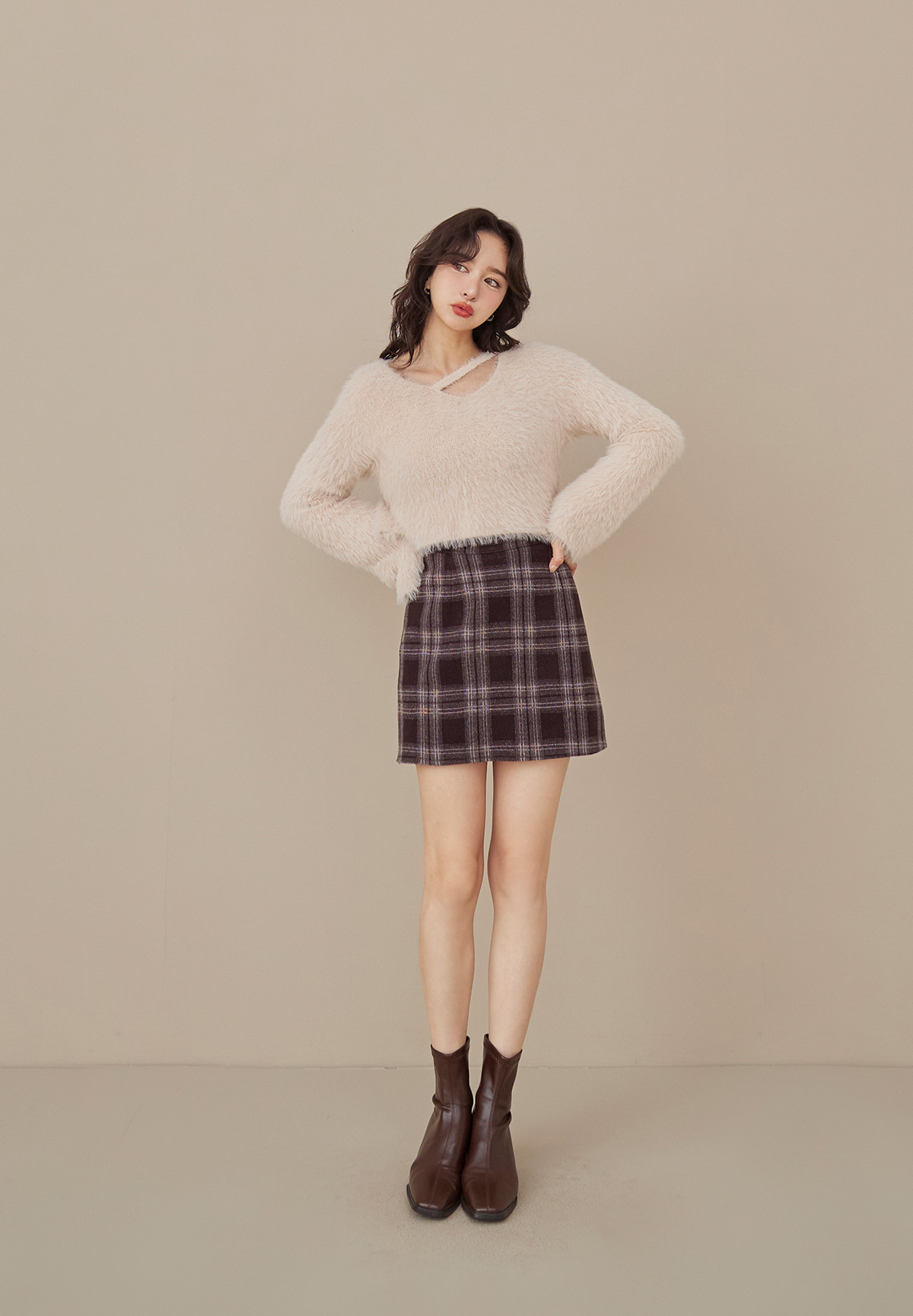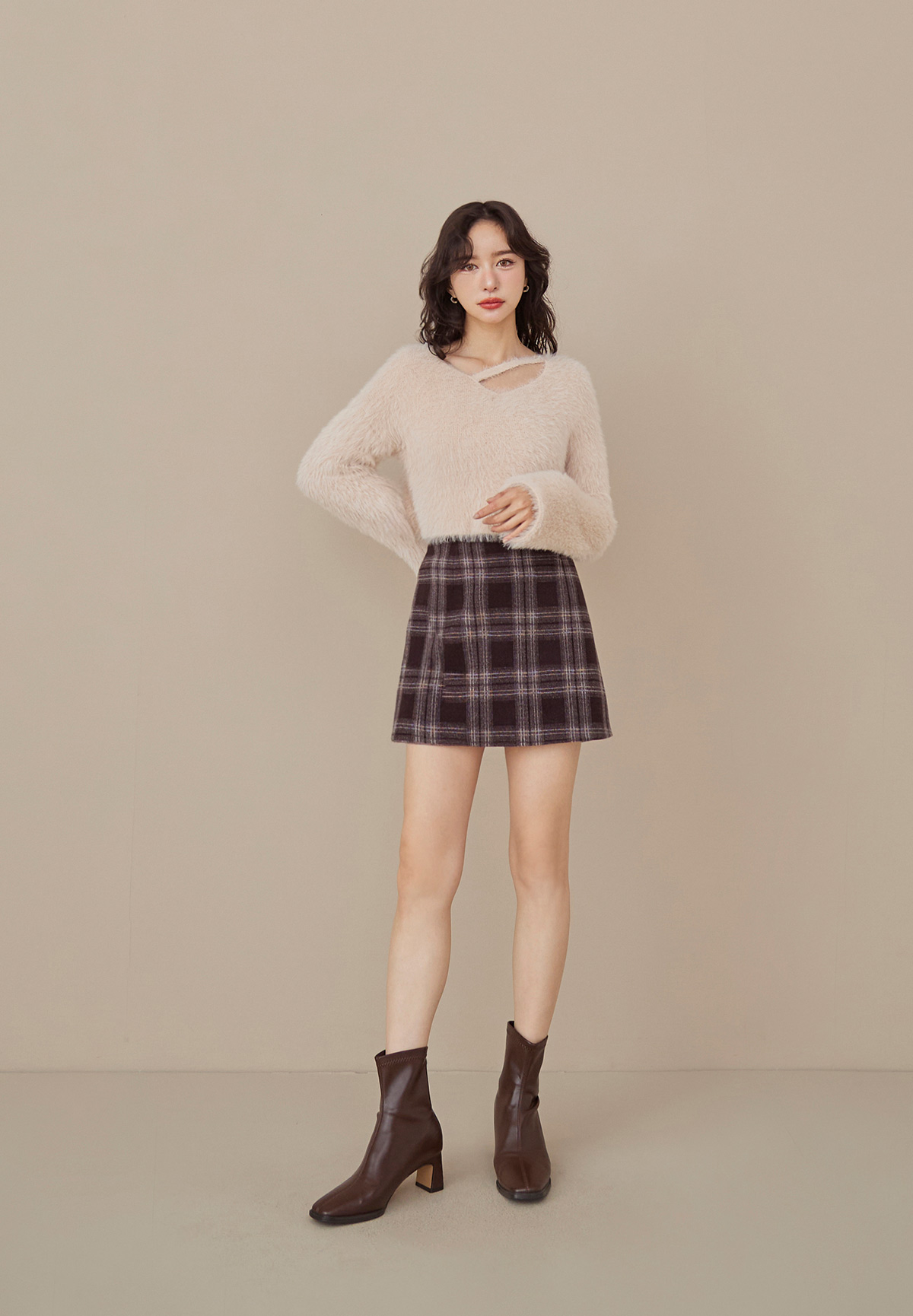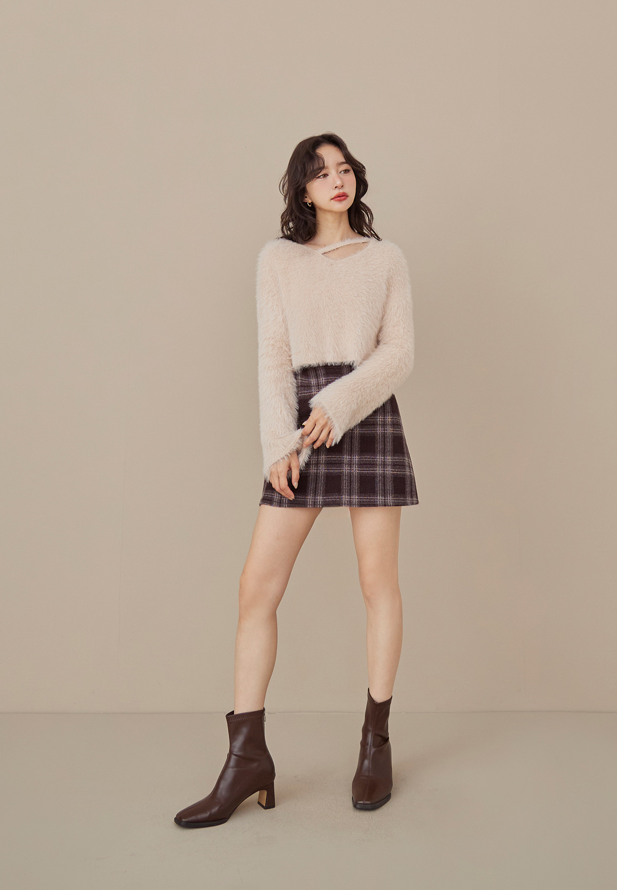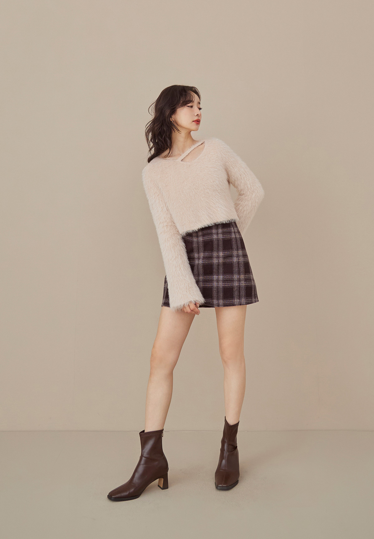 E23冬季小辣妹斜線鏤空水雕毛毛上衣