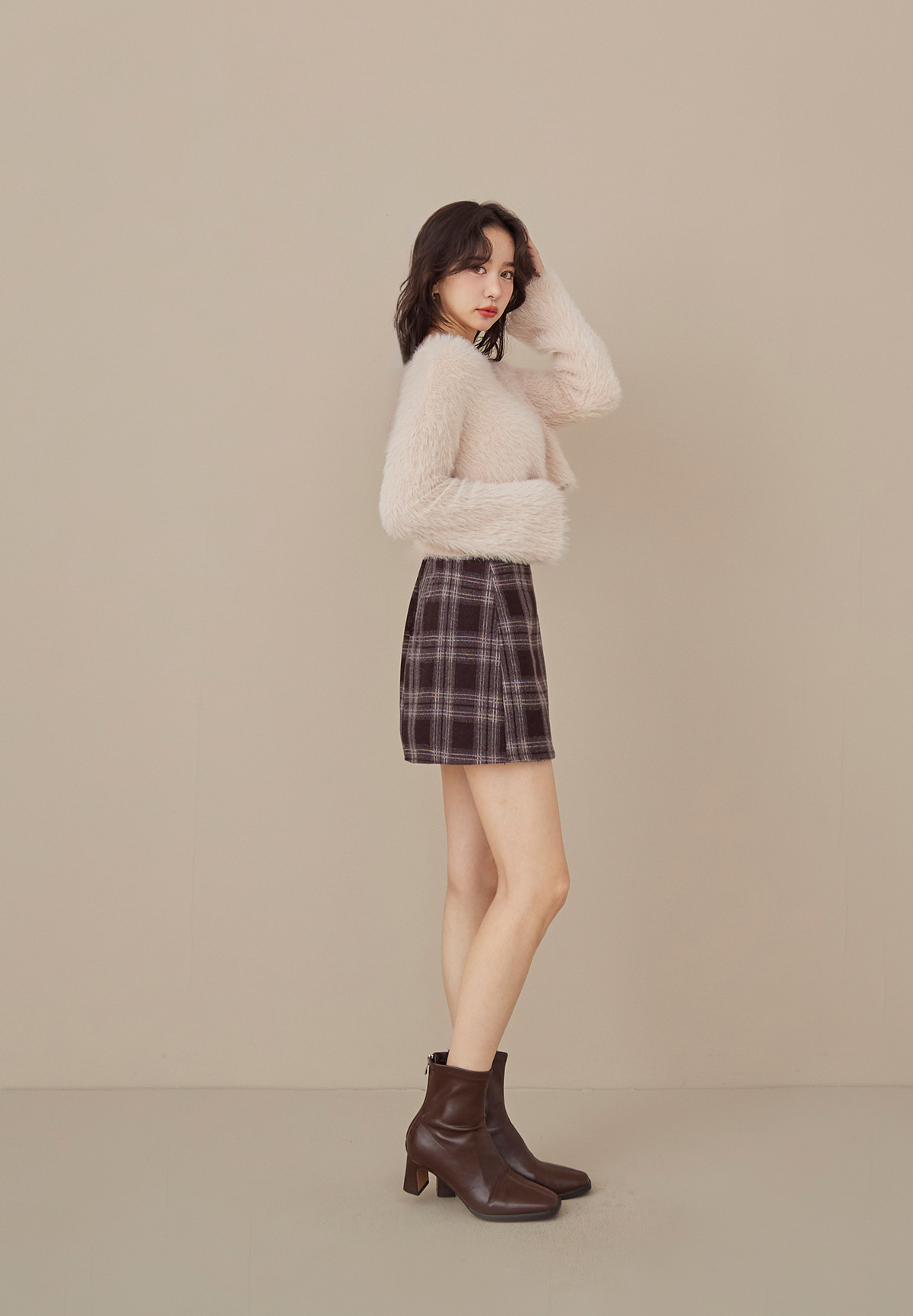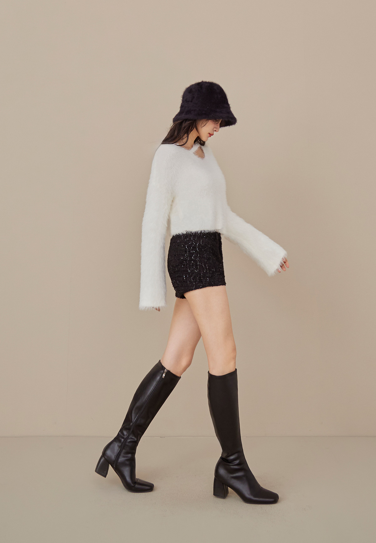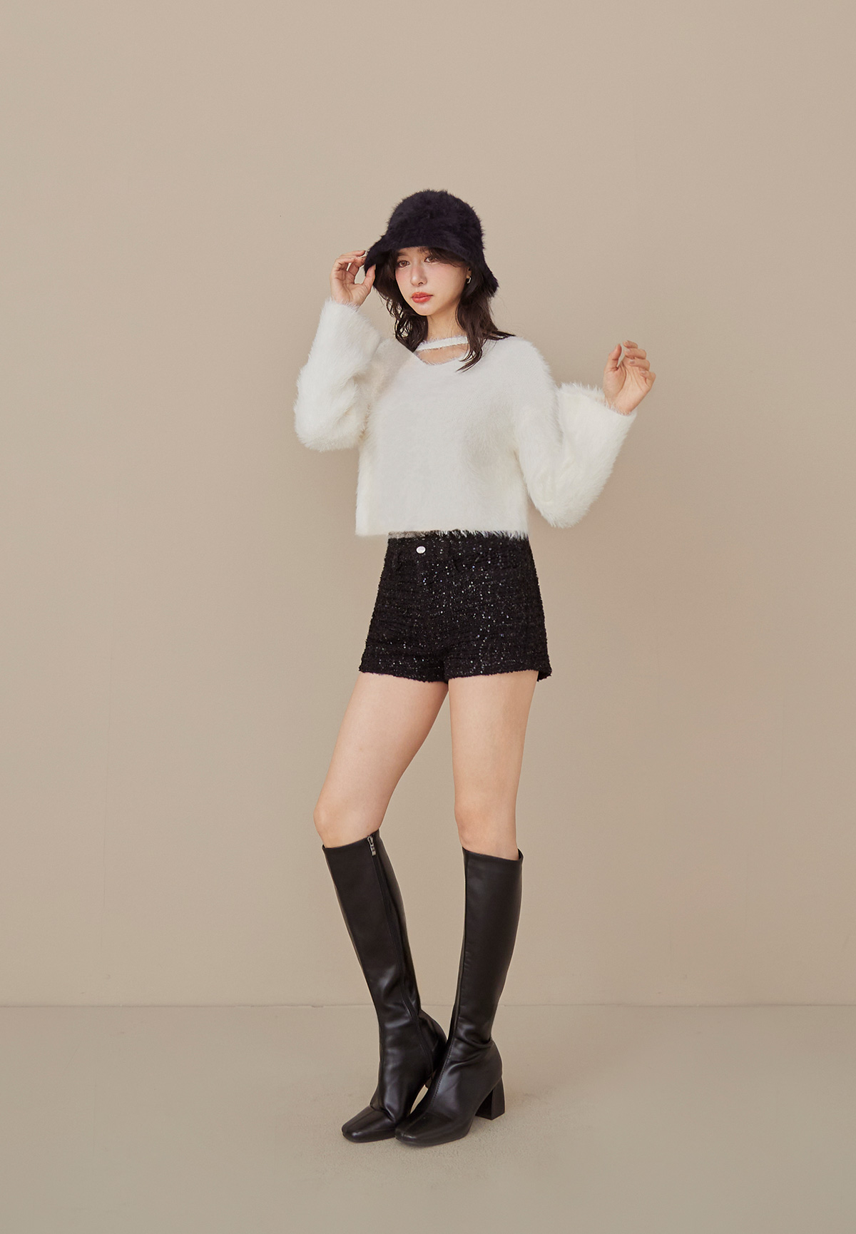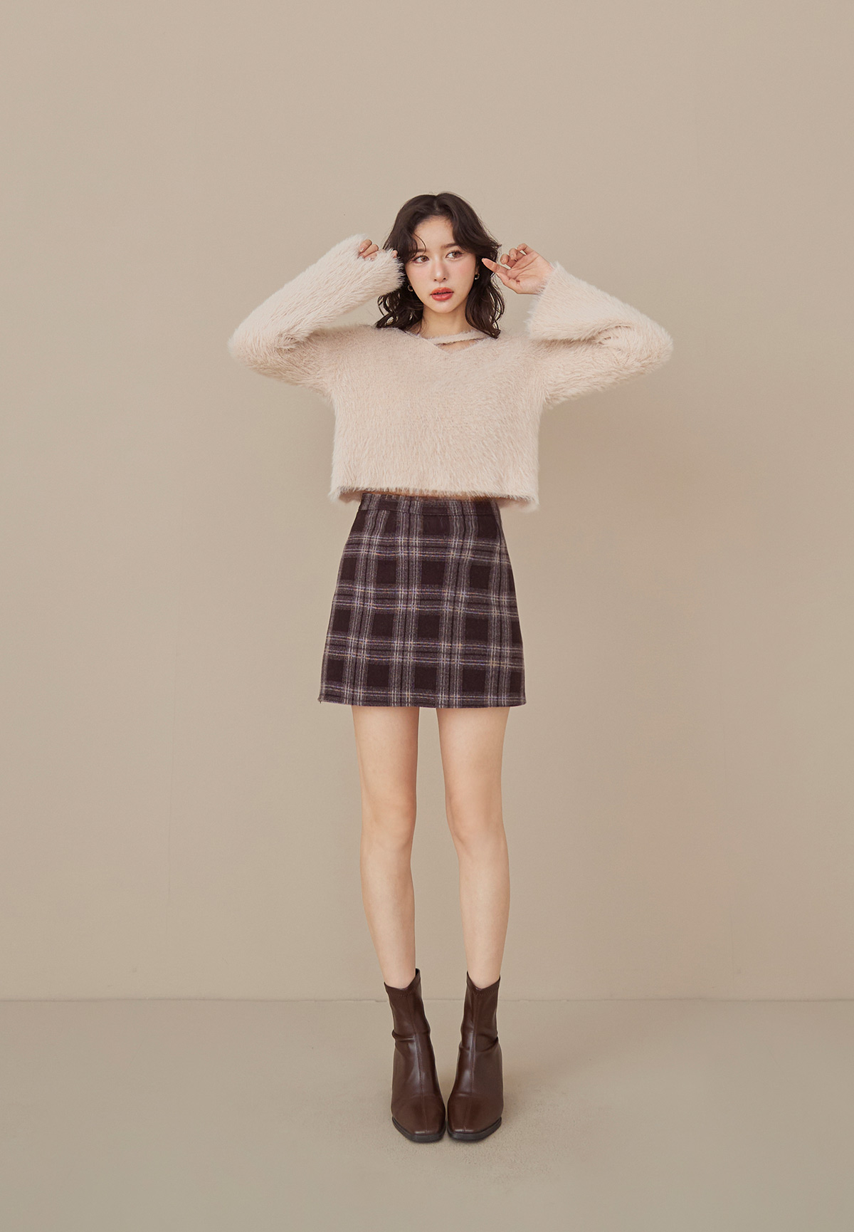 E23冬季小辣妹斜線鏤空水雕毛毛上衣