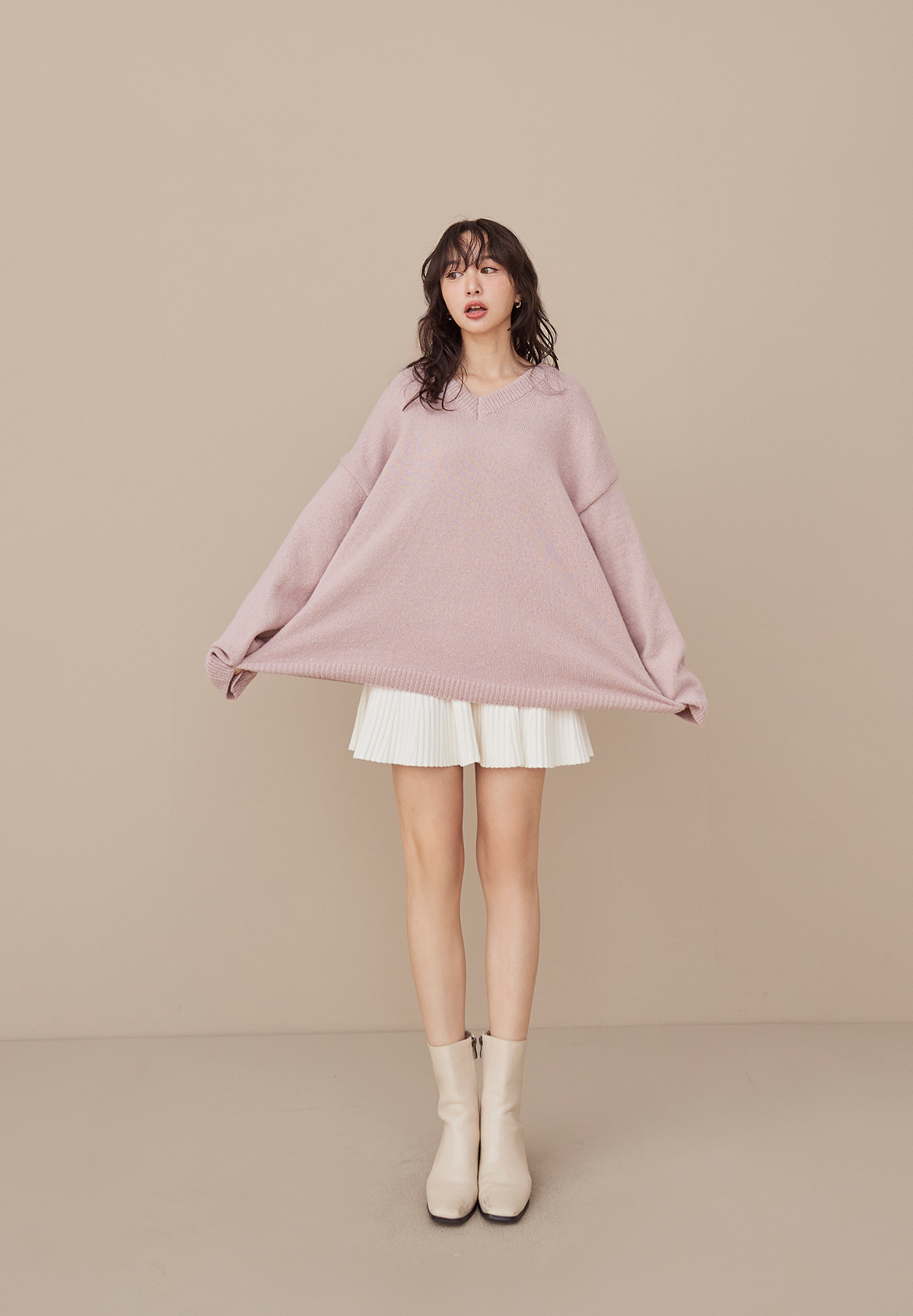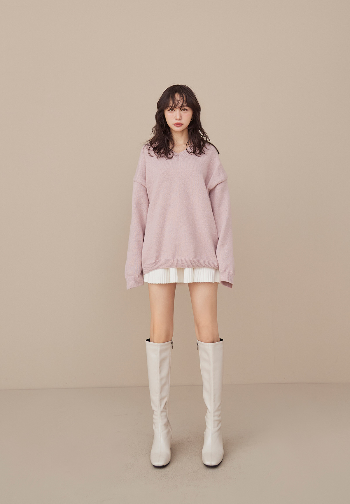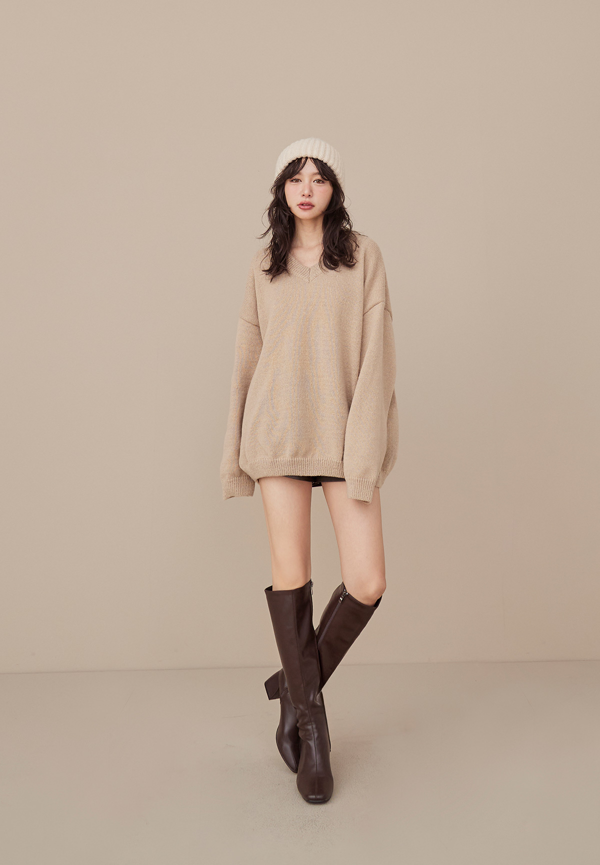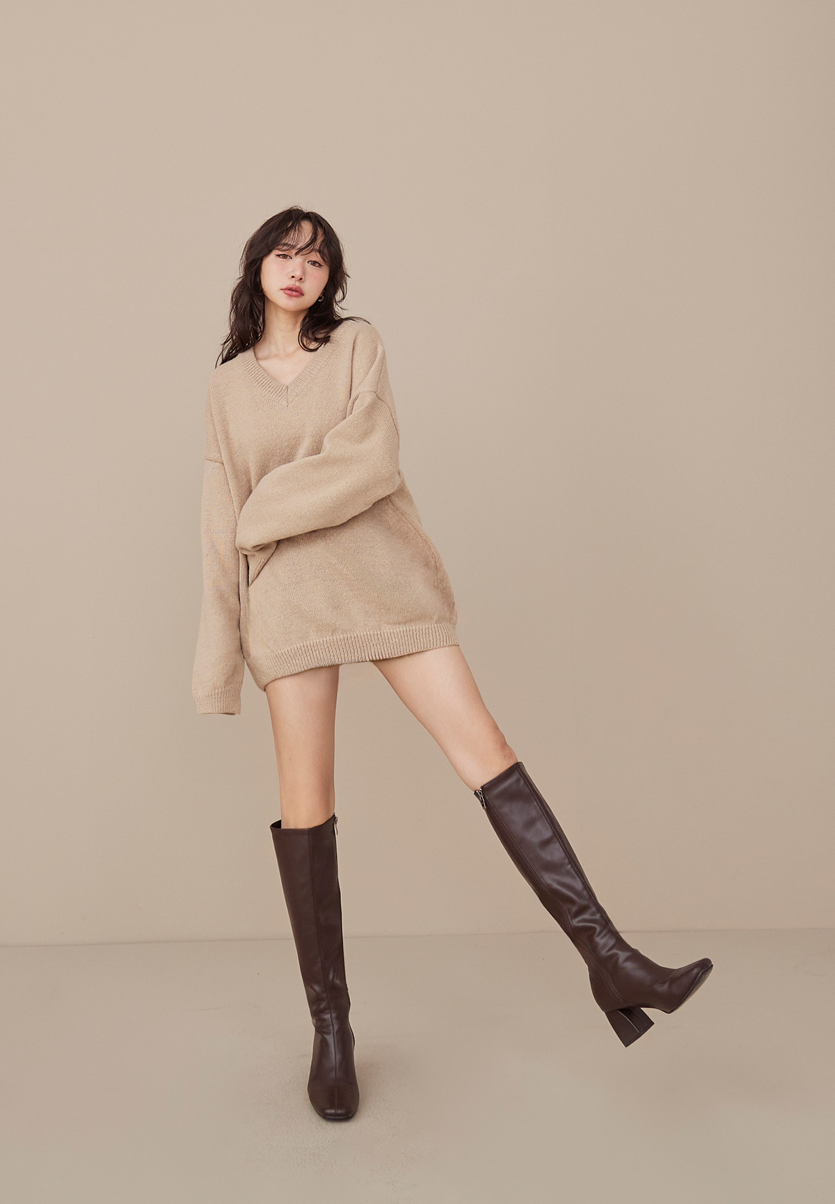 A09 (暖系)軟呼呼厚磅V領針織毛衣/洋裝