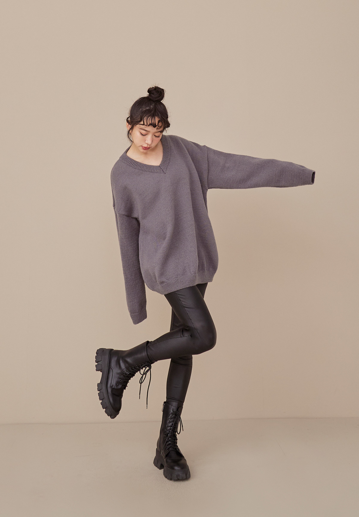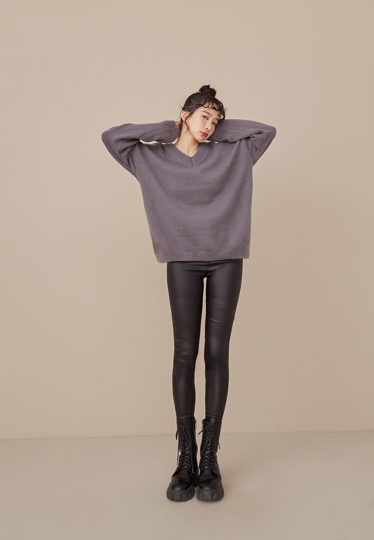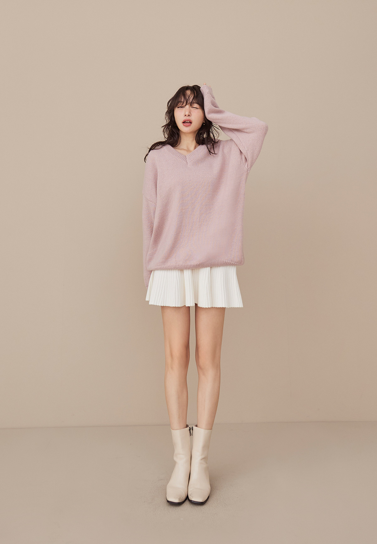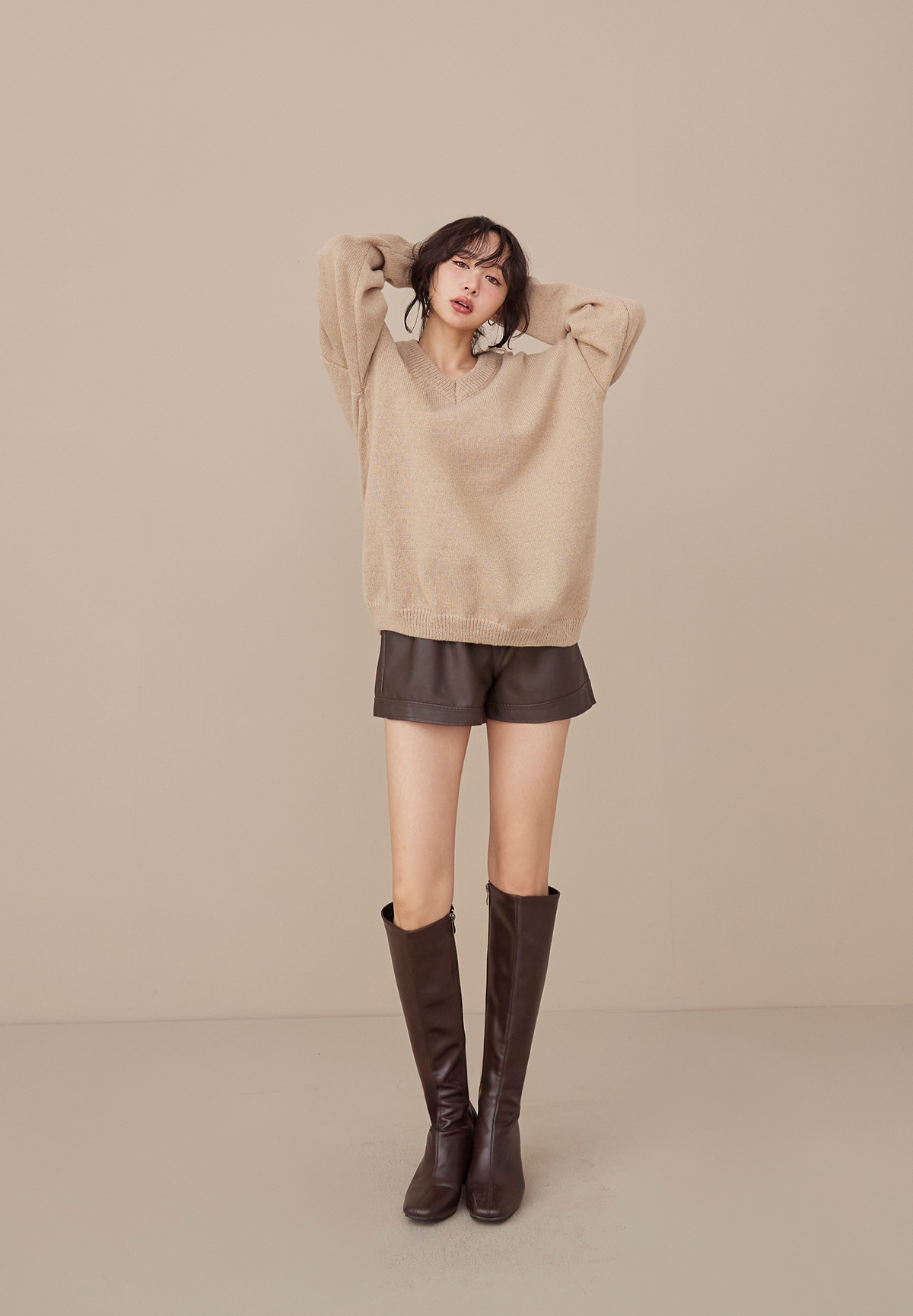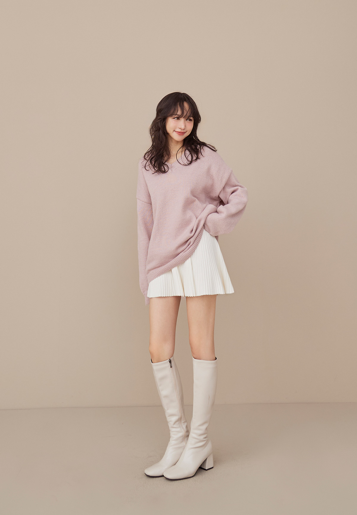 A09 (暖系)軟呼呼厚磅V領針織毛衣/洋裝