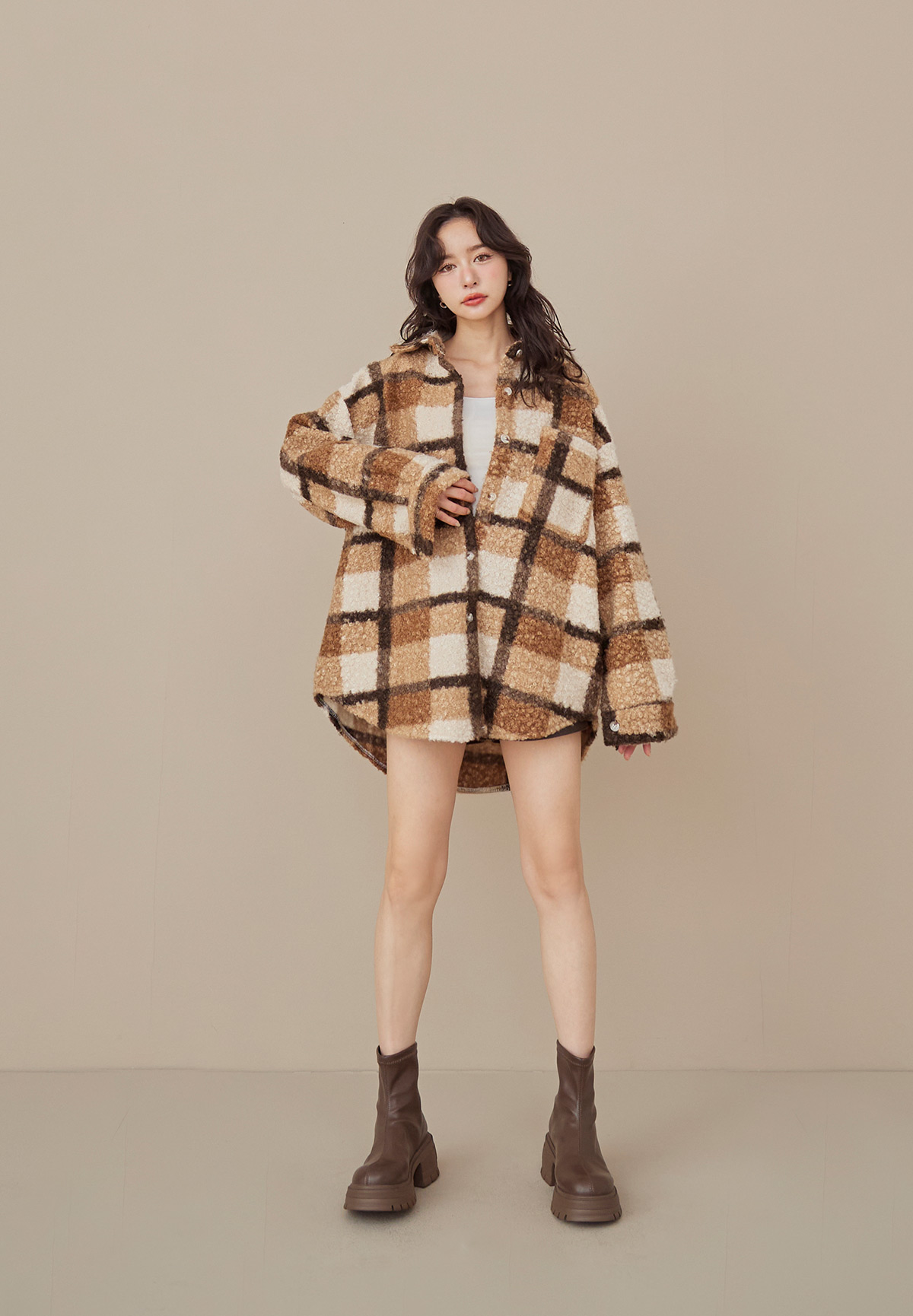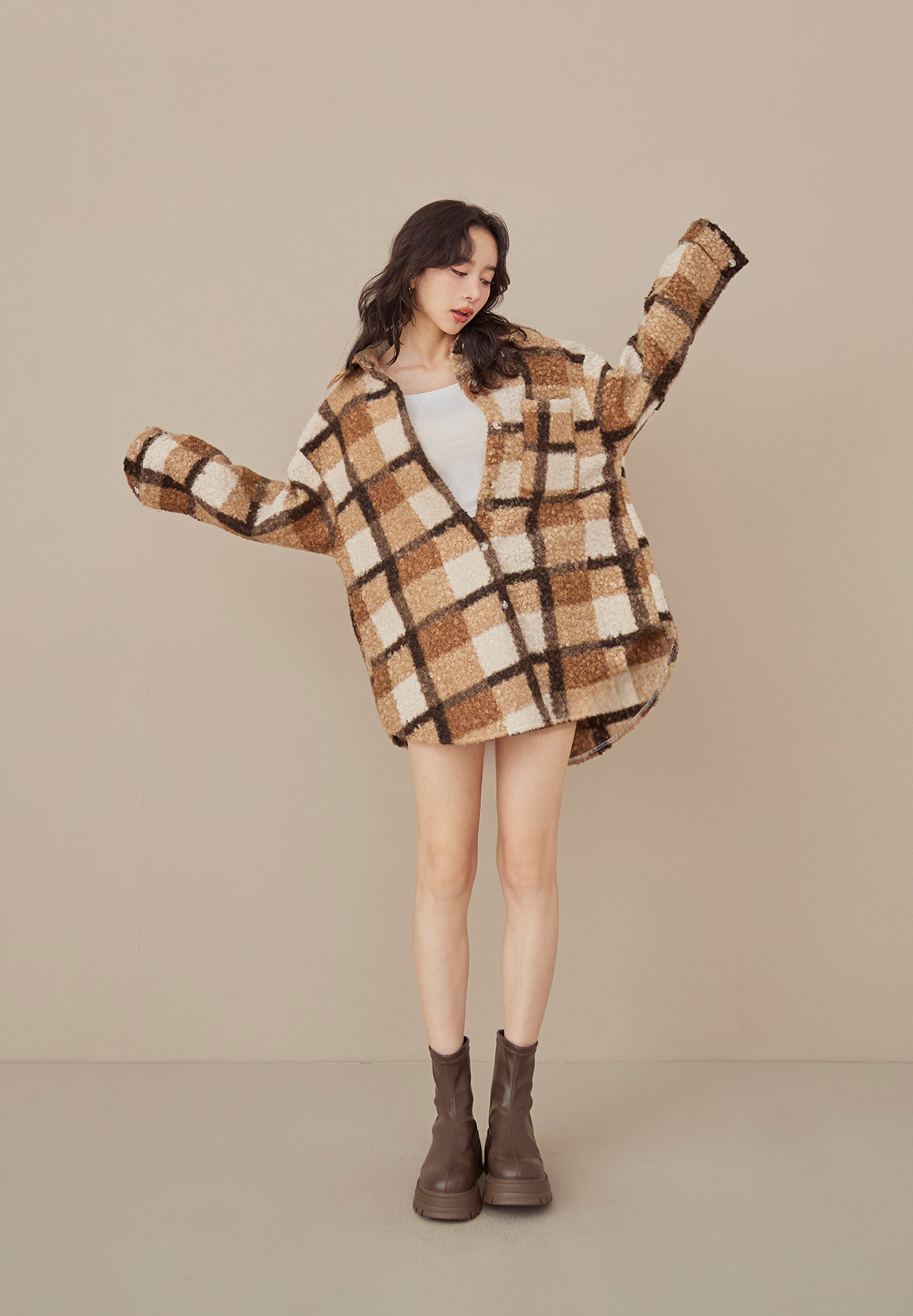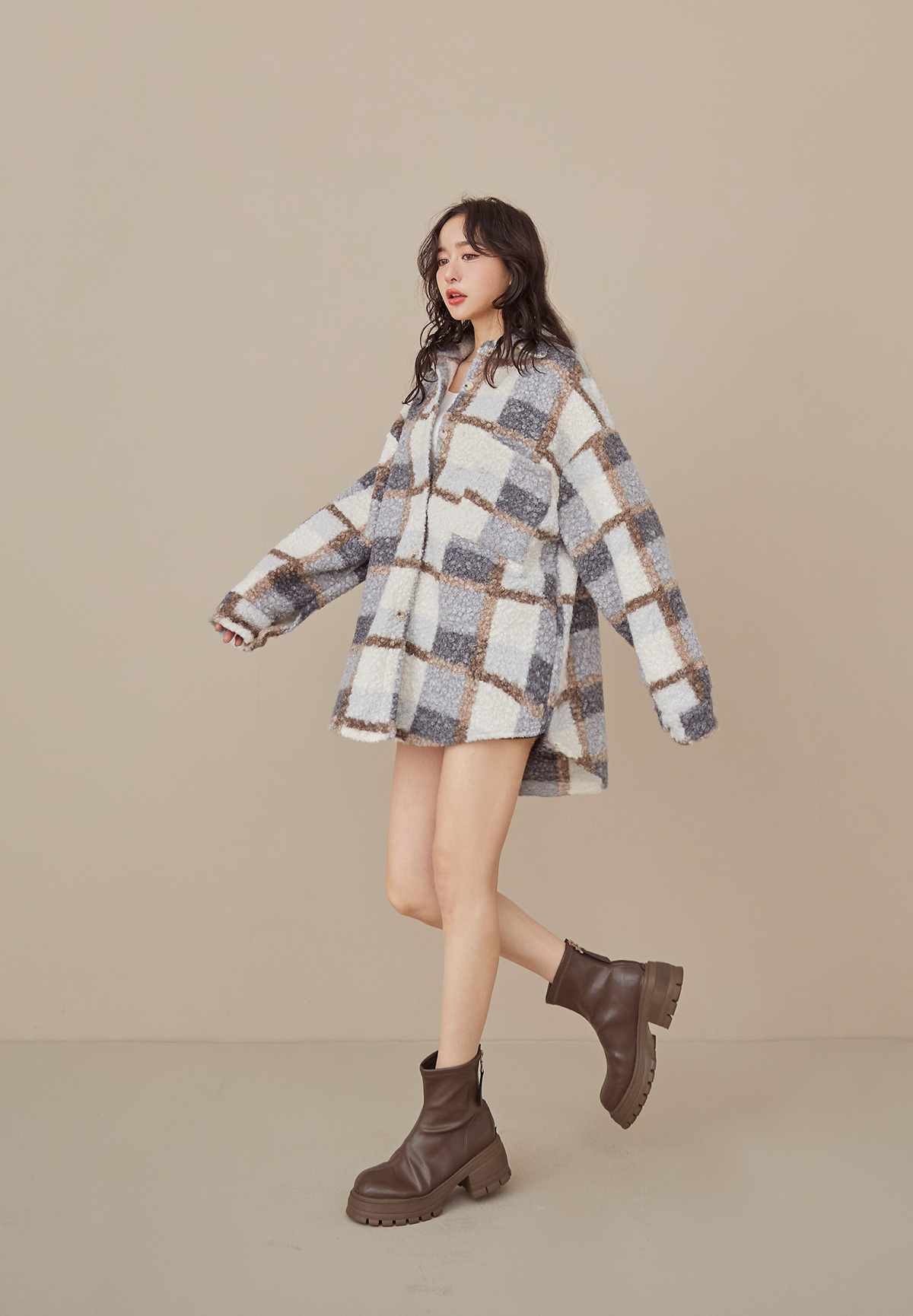 E01熊勾錐!粉彩格泰迪熊QQ毛襯衫/外套(厚片感+刷絨超暖)