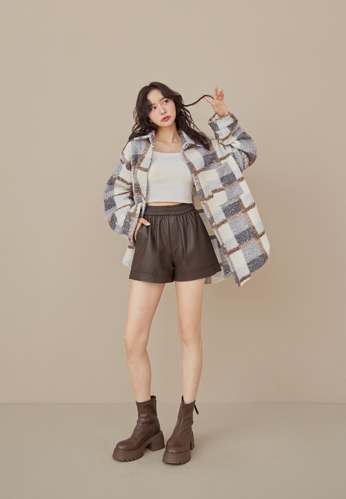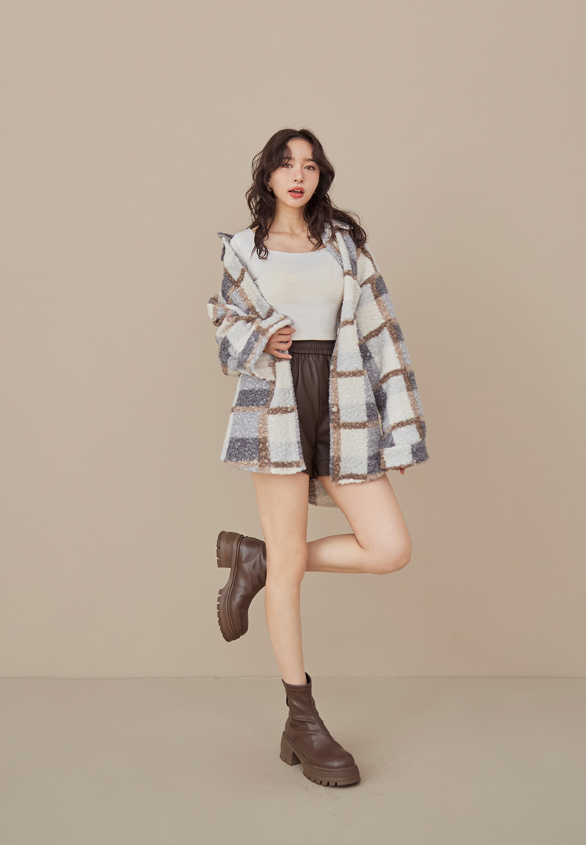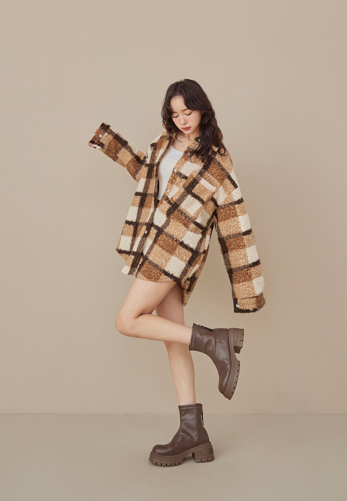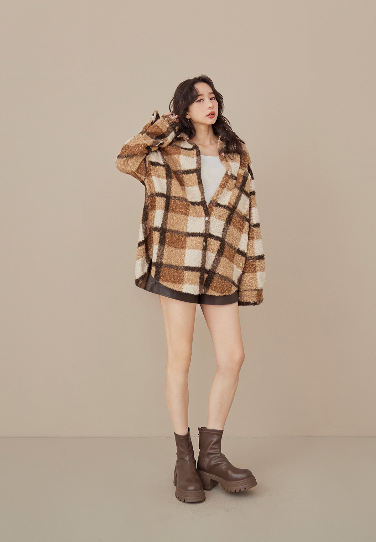 E01熊勾錐!粉彩格泰迪熊QQ毛襯衫/外套(厚片感+刷絨超暖)