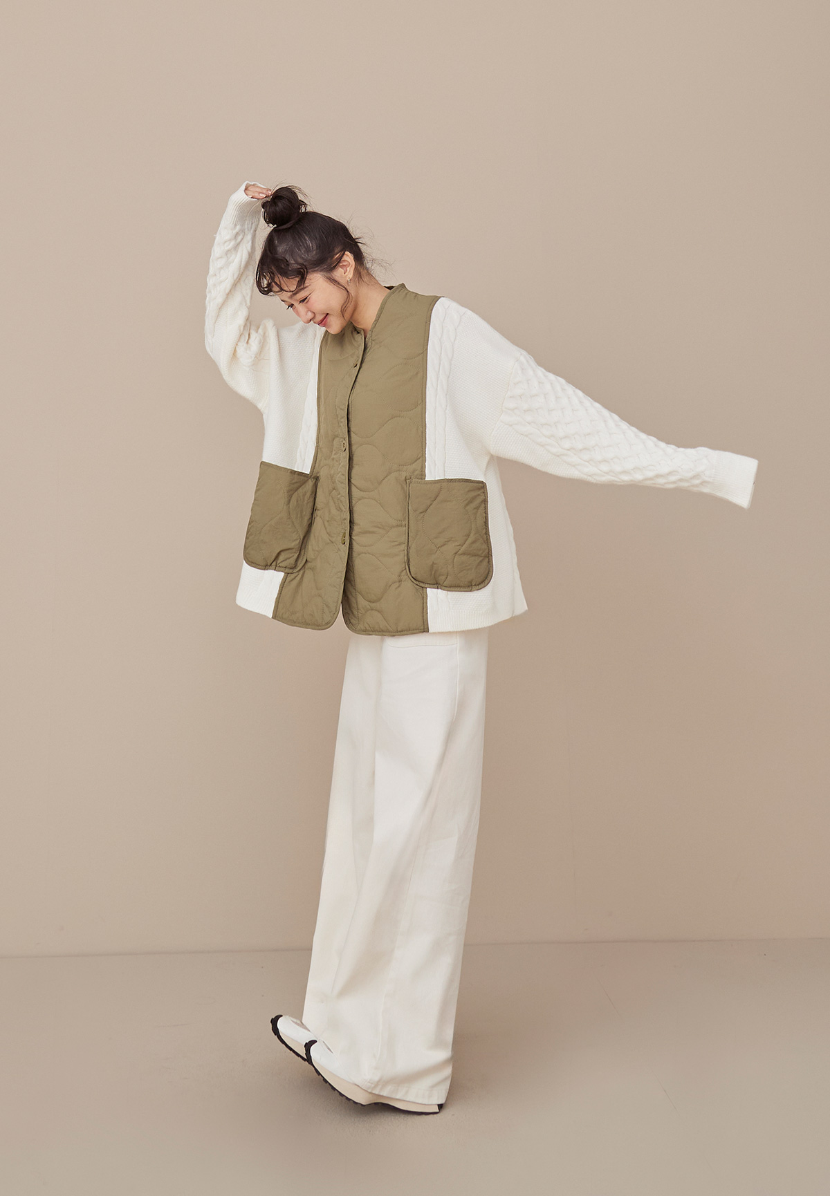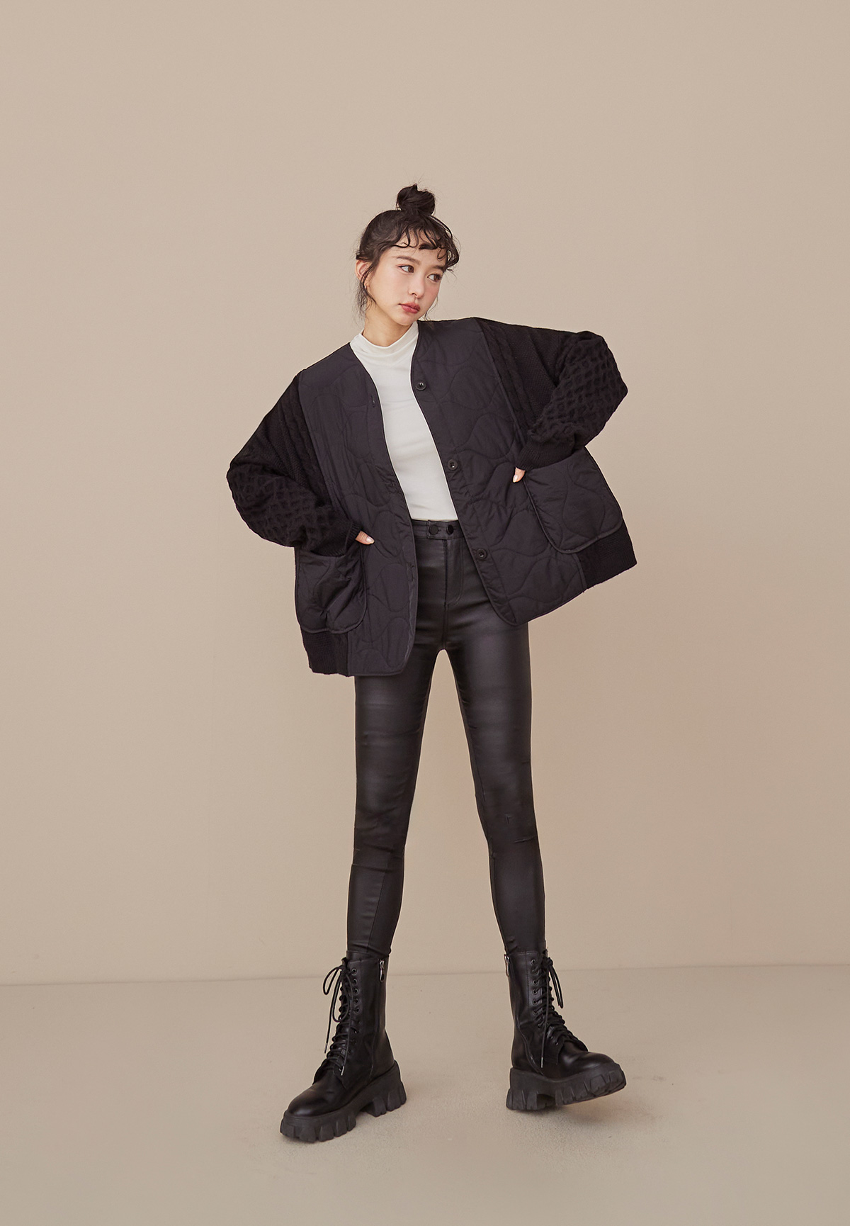 A01 (高訂設計款)日系拼接麻花織紋衍縫外套