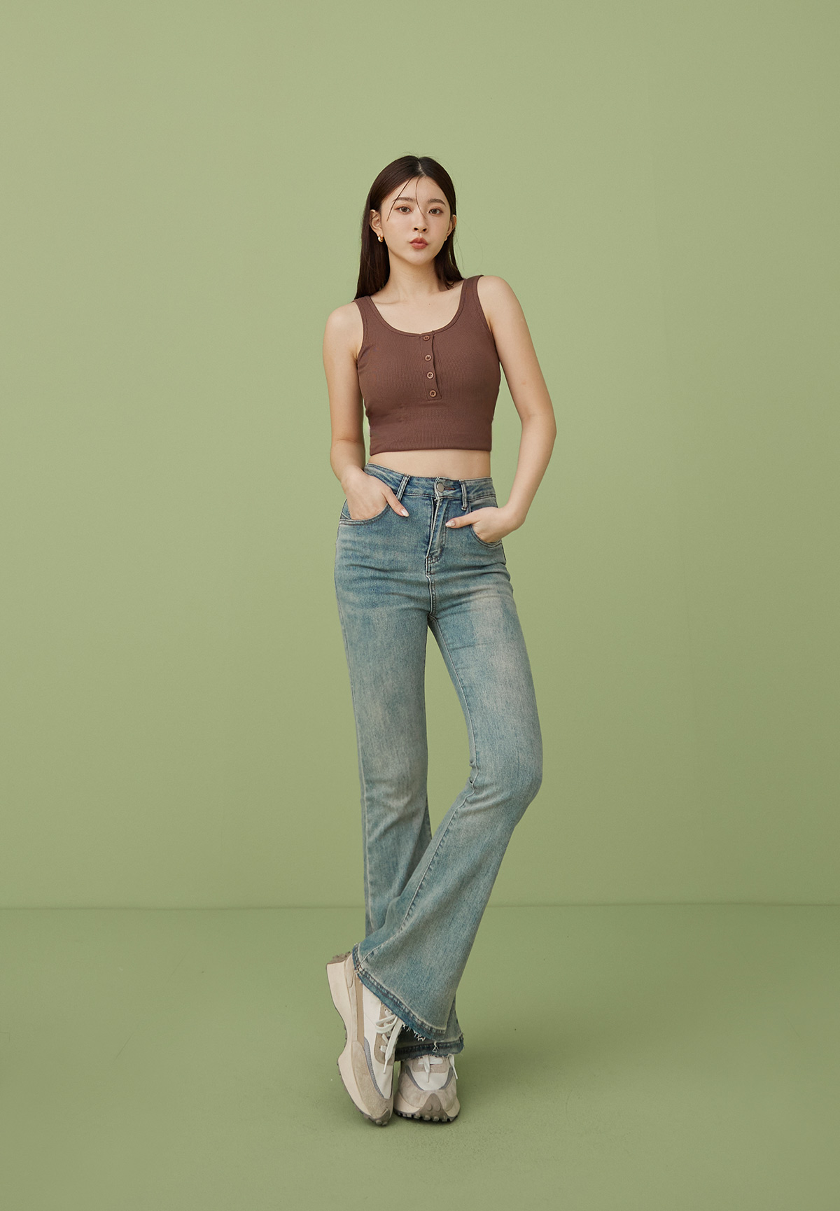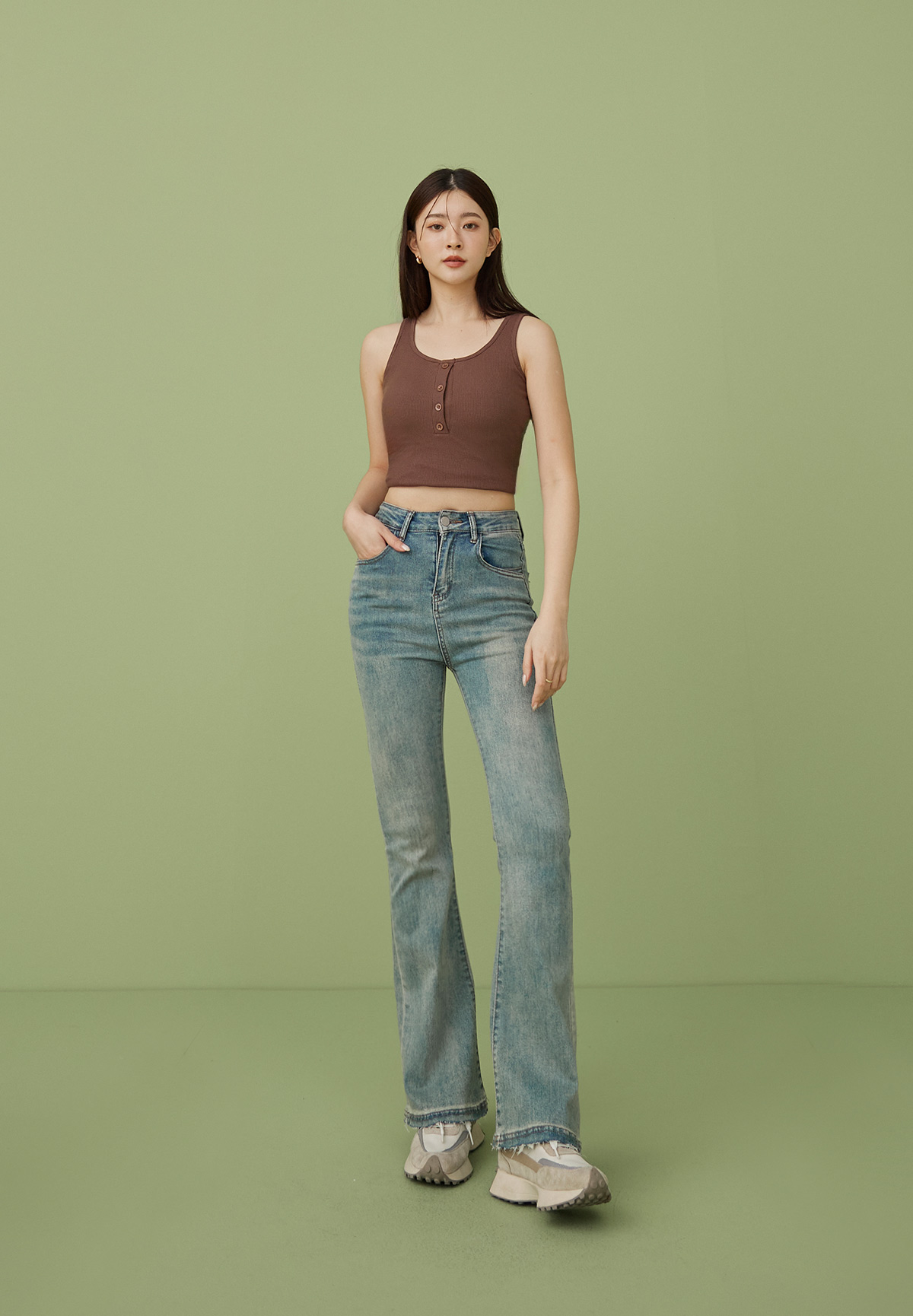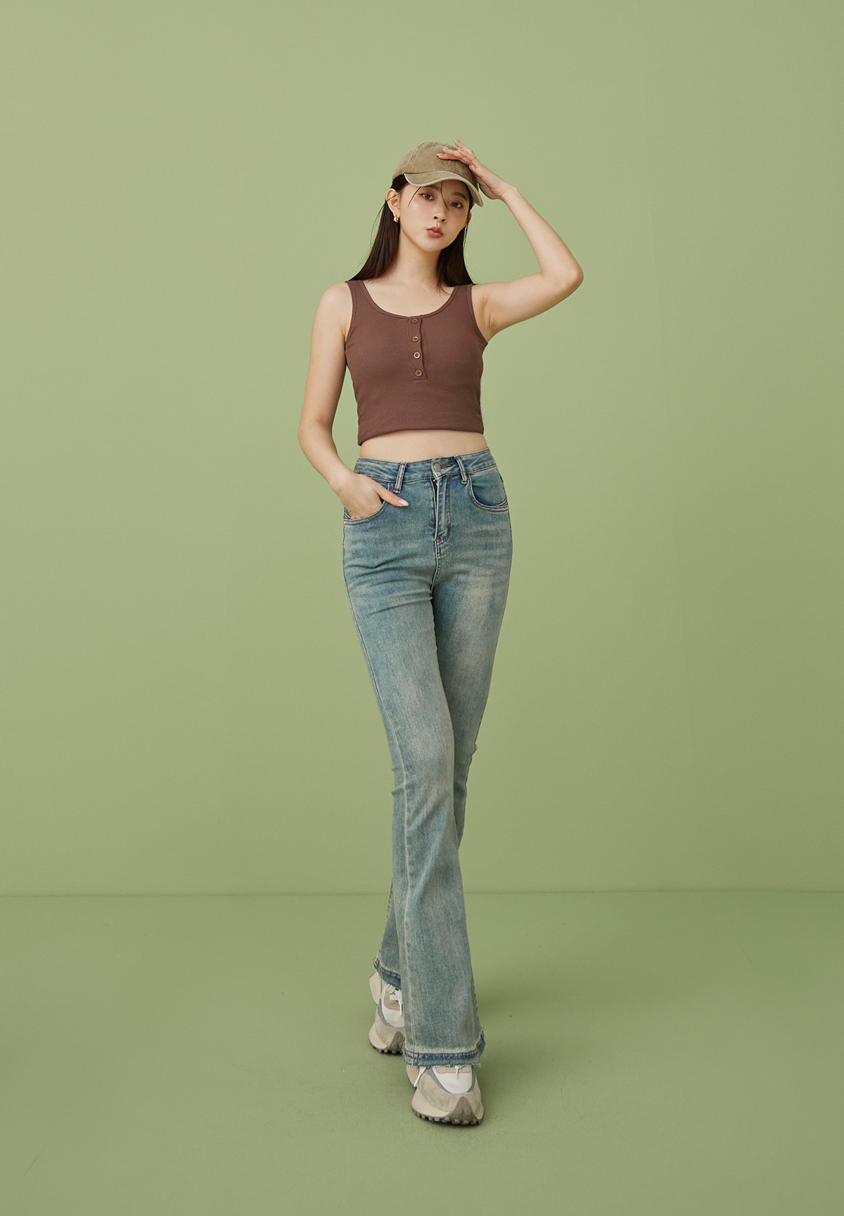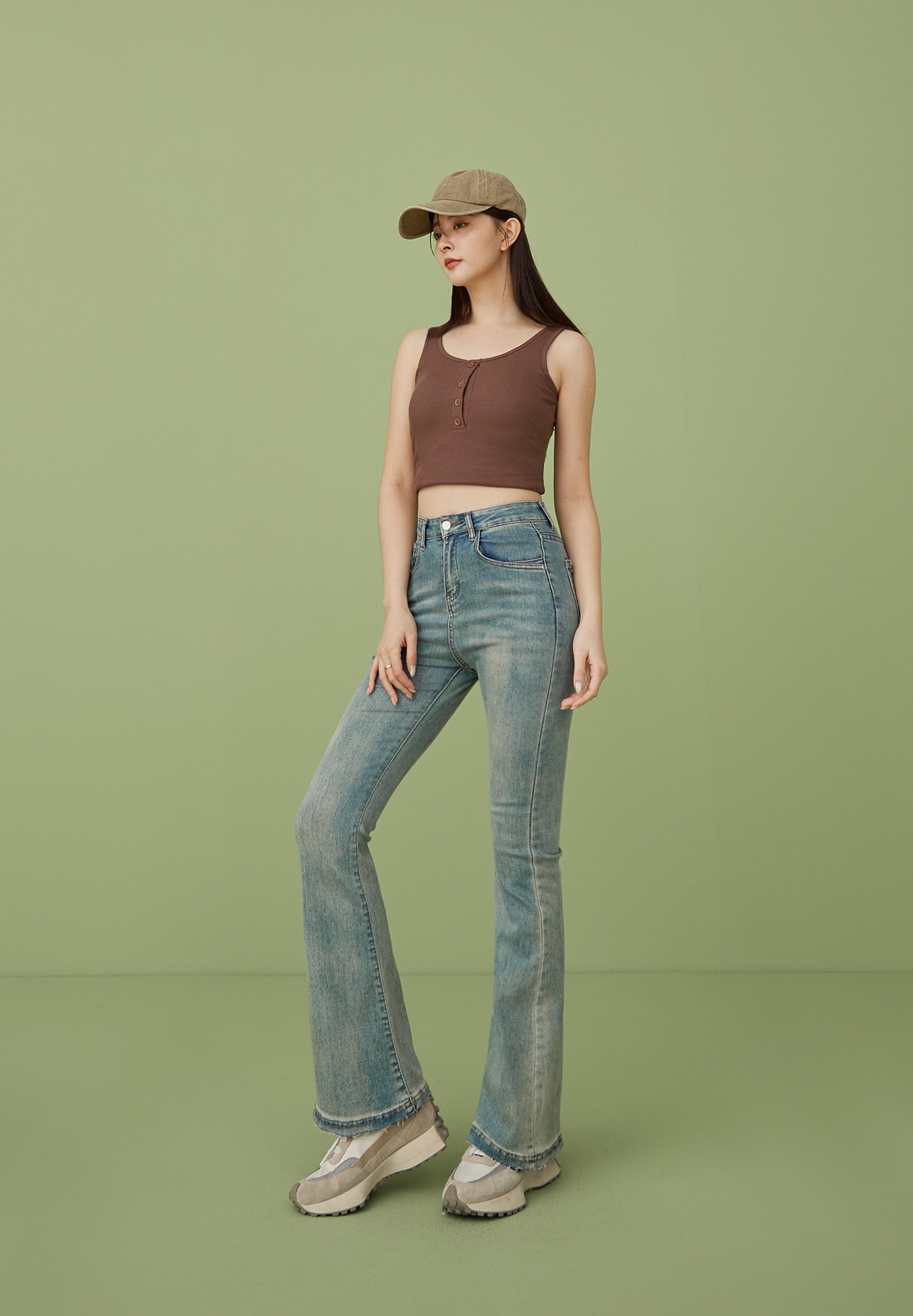 M41媽生長腿破壞感口袋喇叭牛仔褲