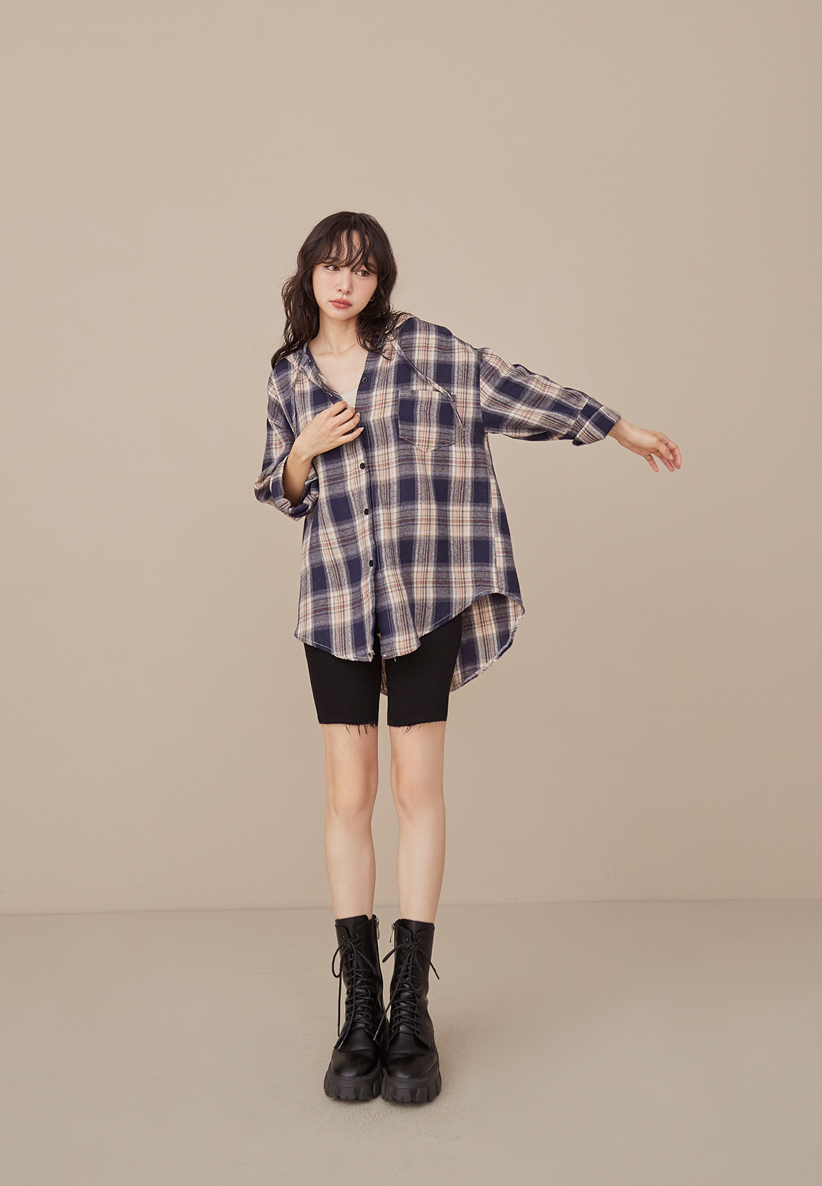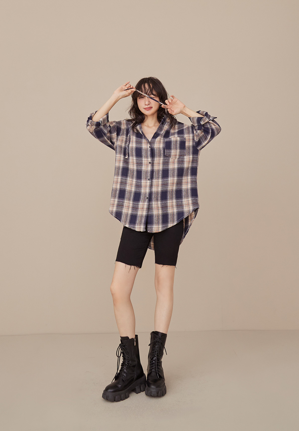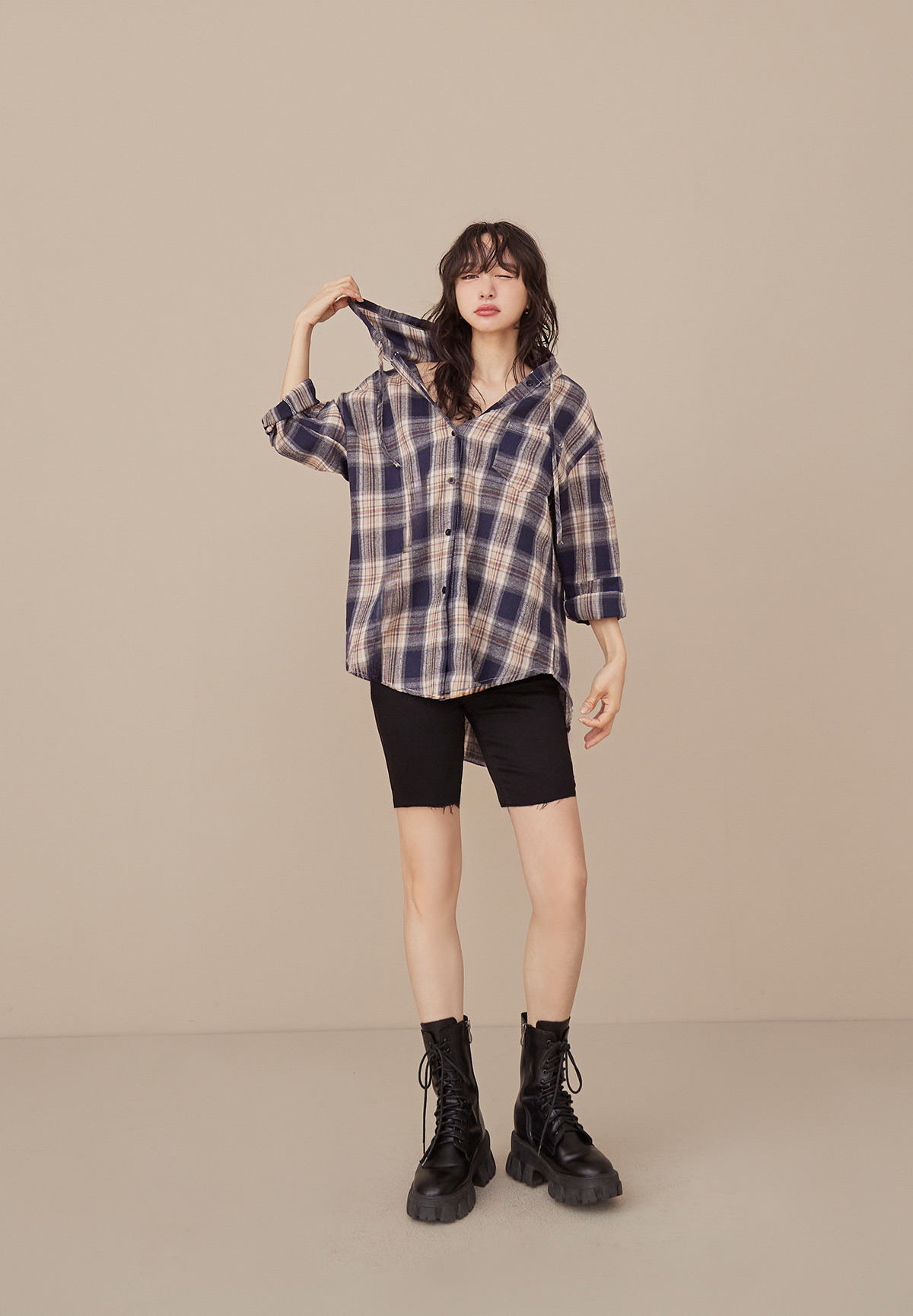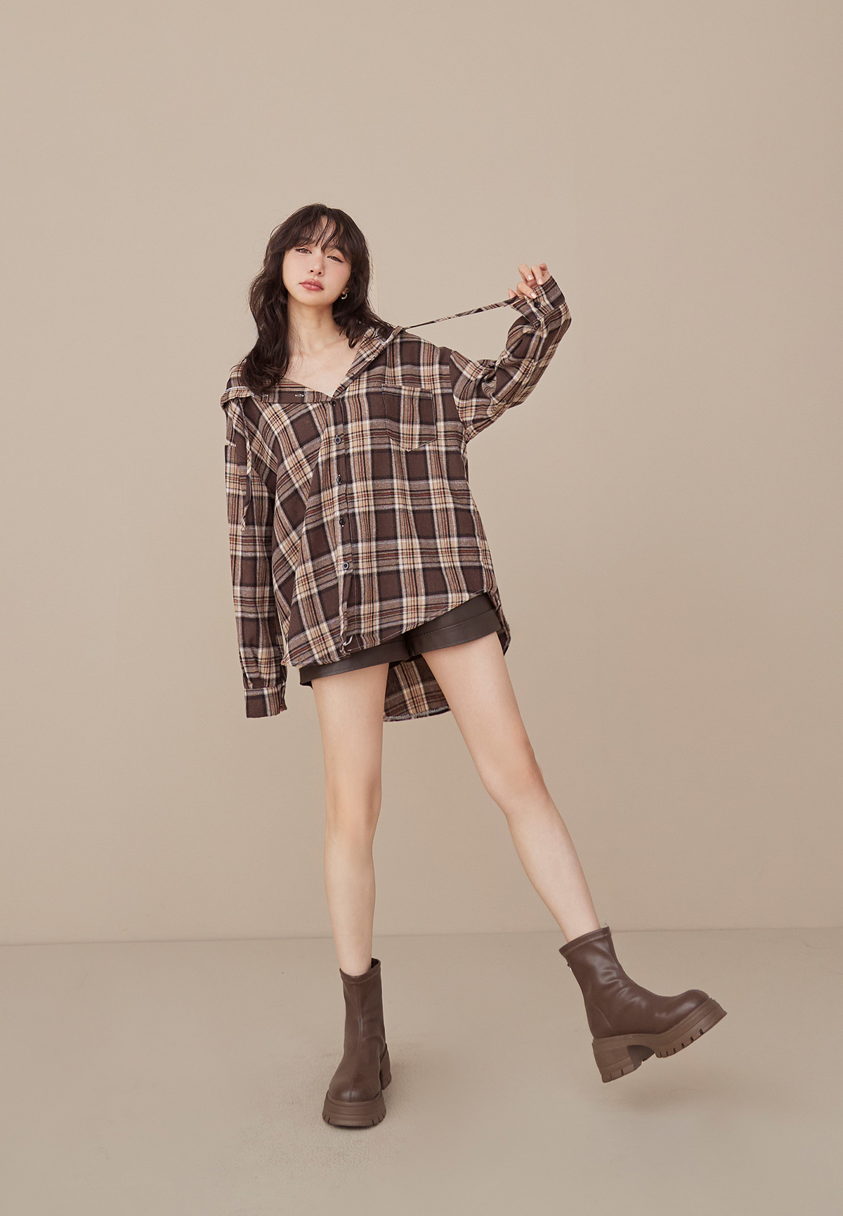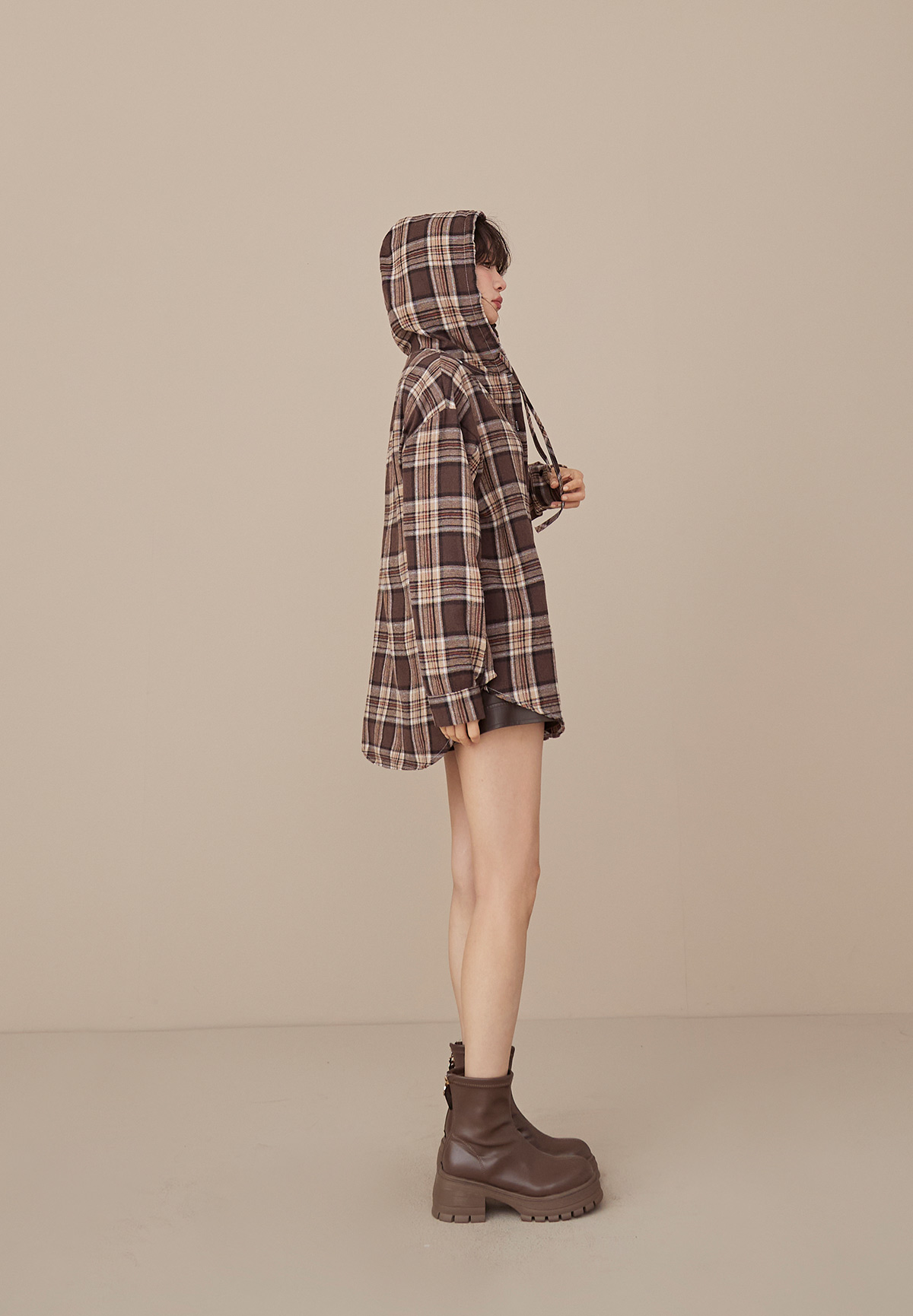 A29率性英倫風格紋抽繩連帽襯衫/罩衫