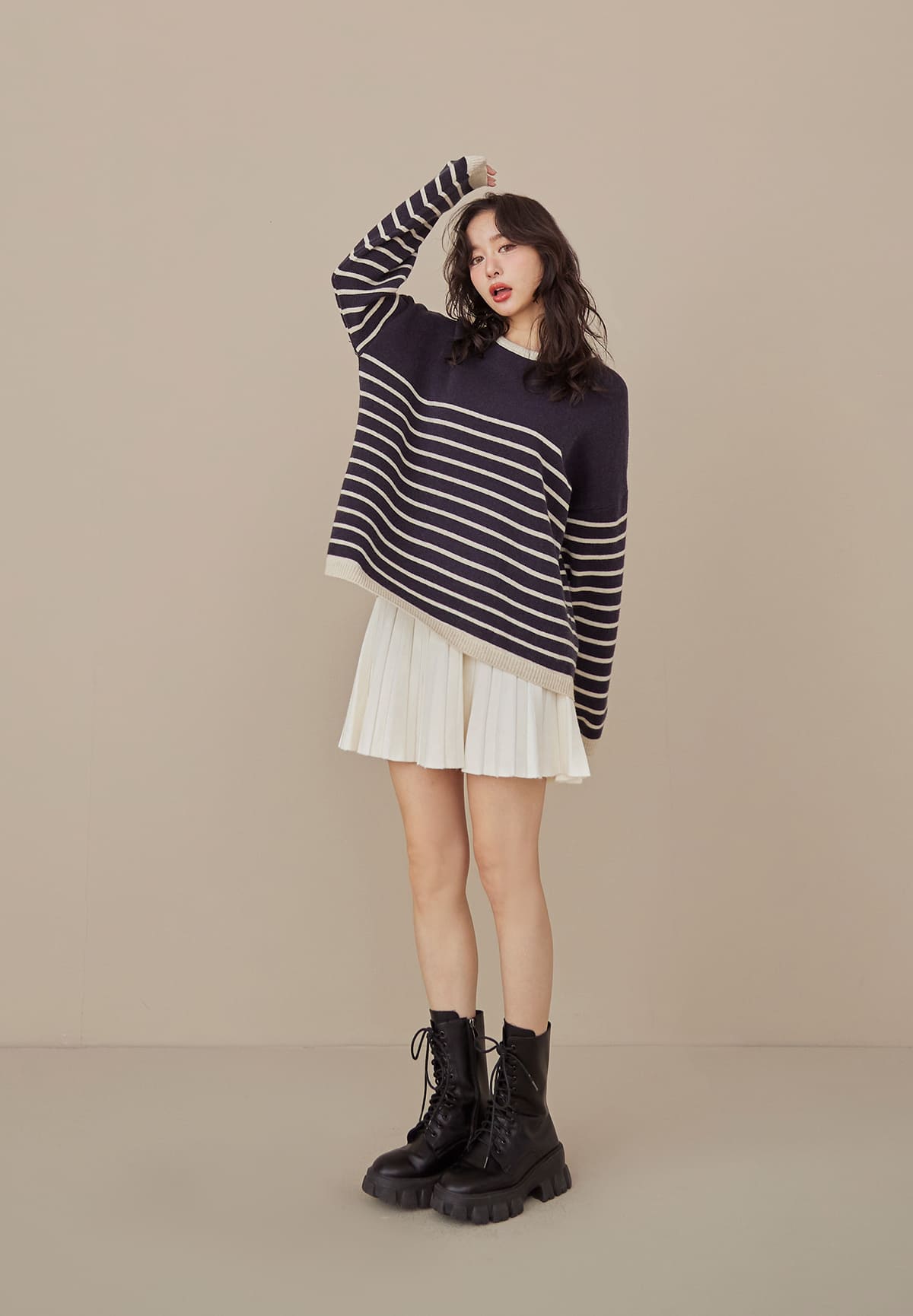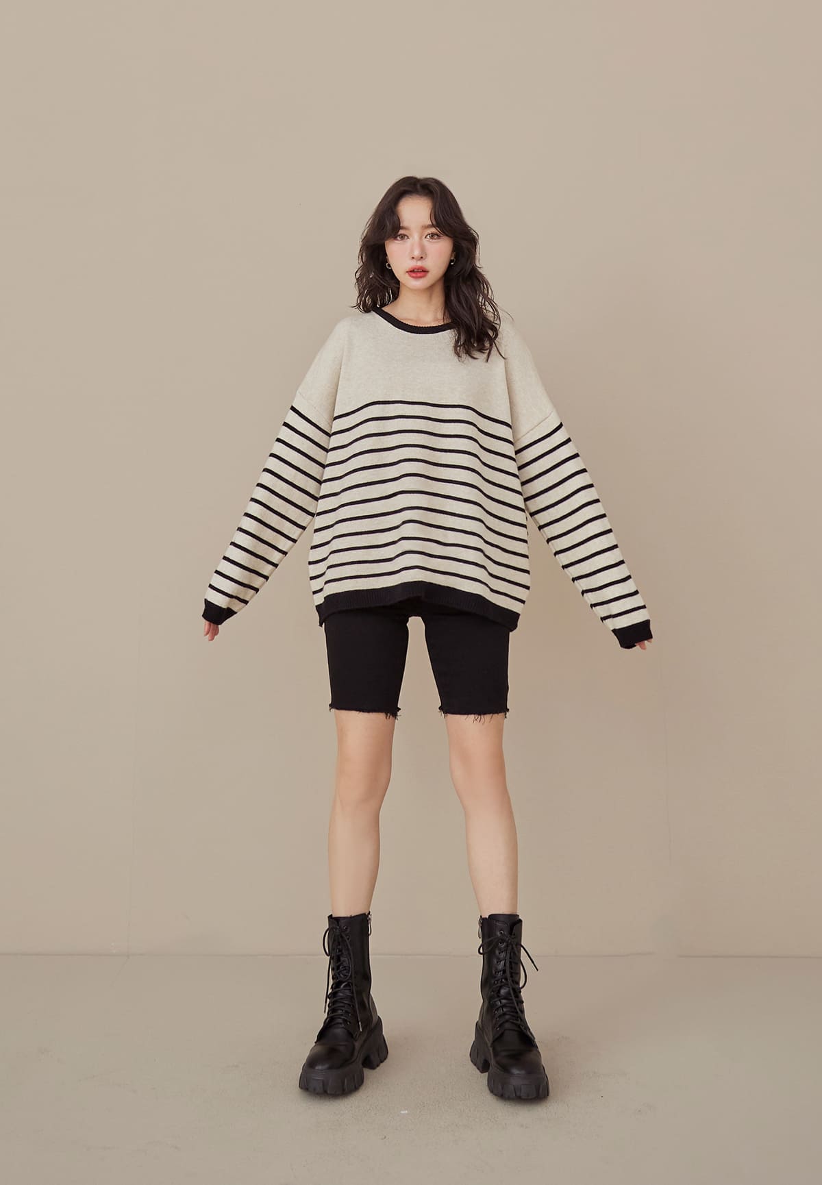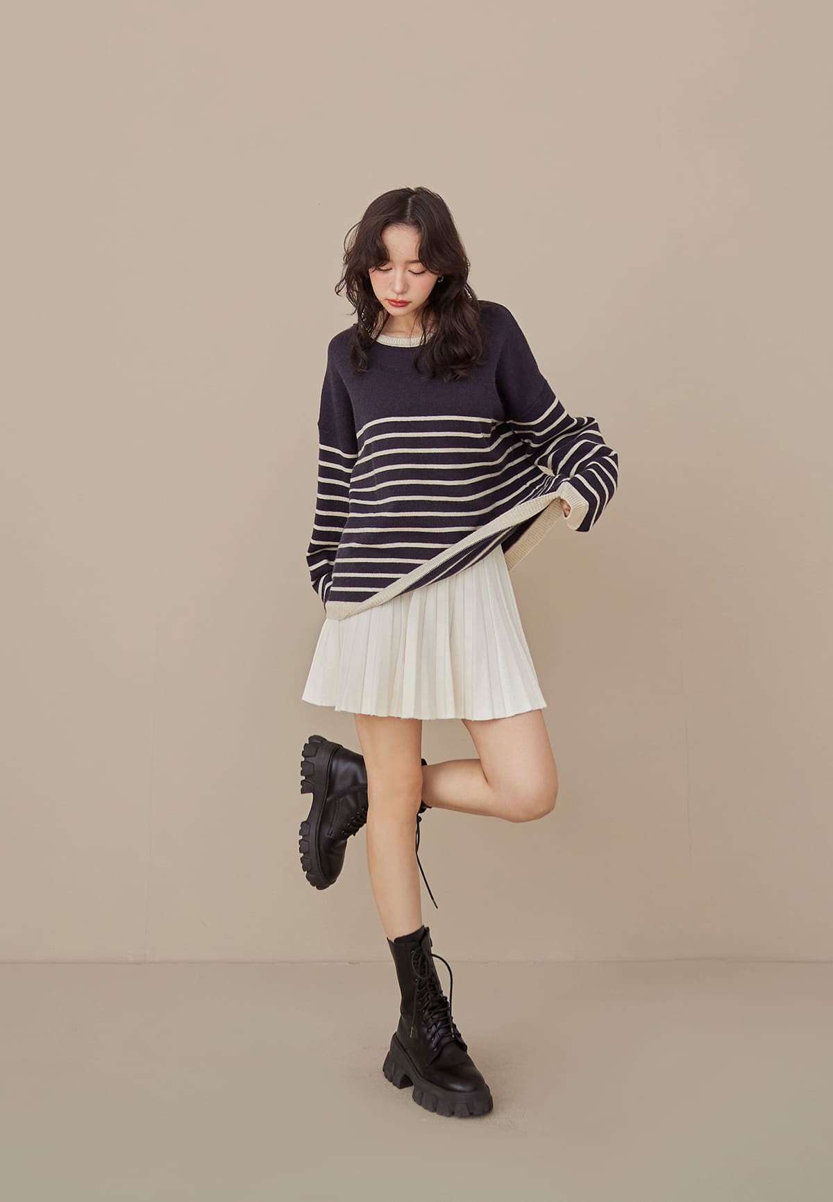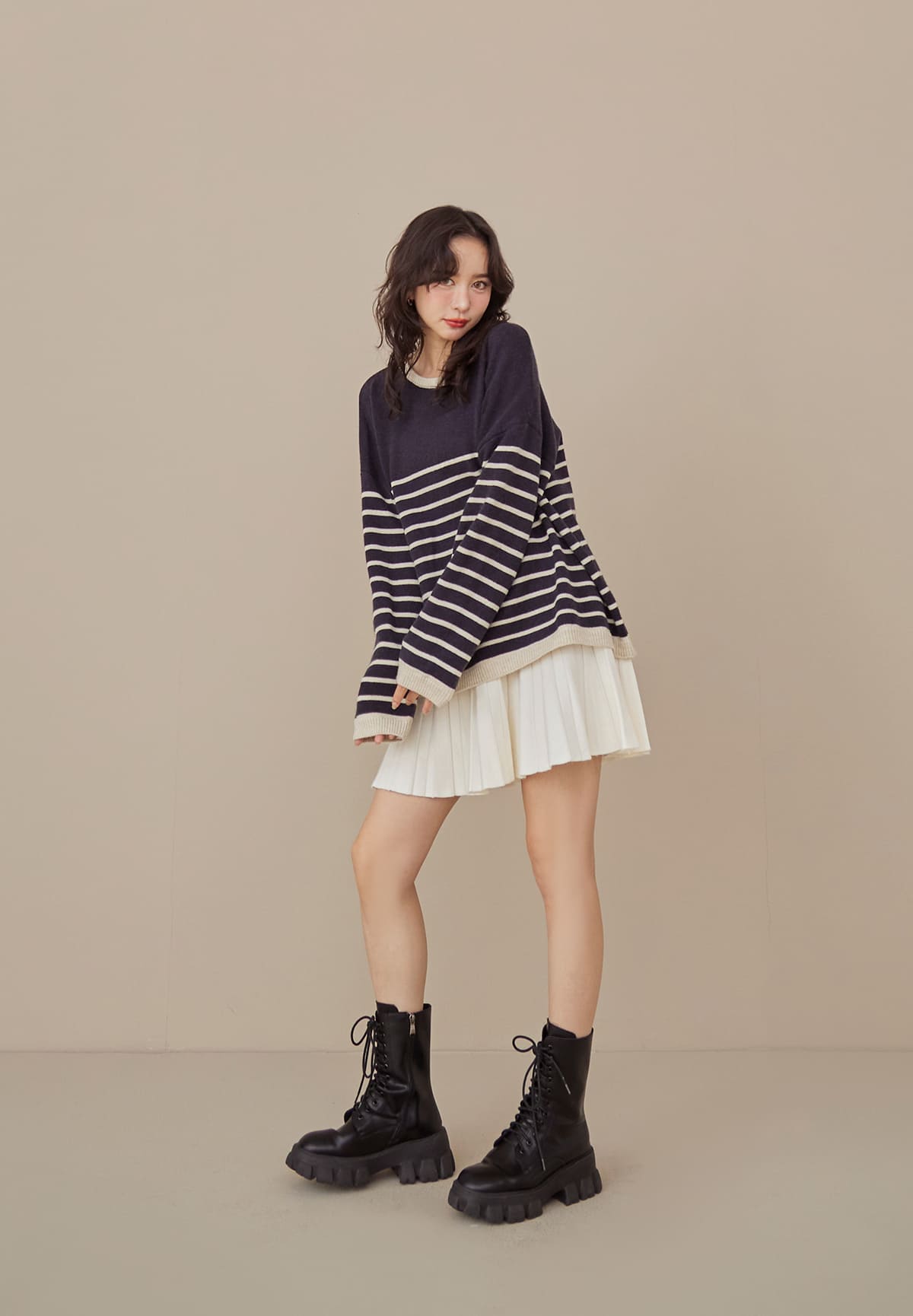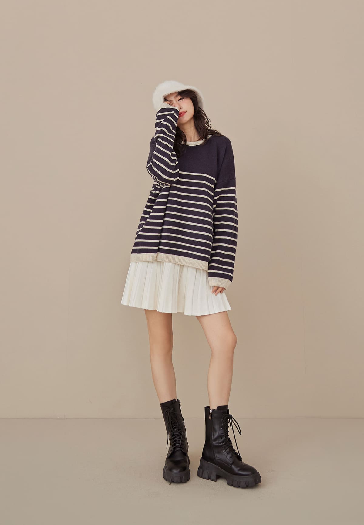 E12鬆弛感穿搭:條紋撞色塊寬鬆針織上衣