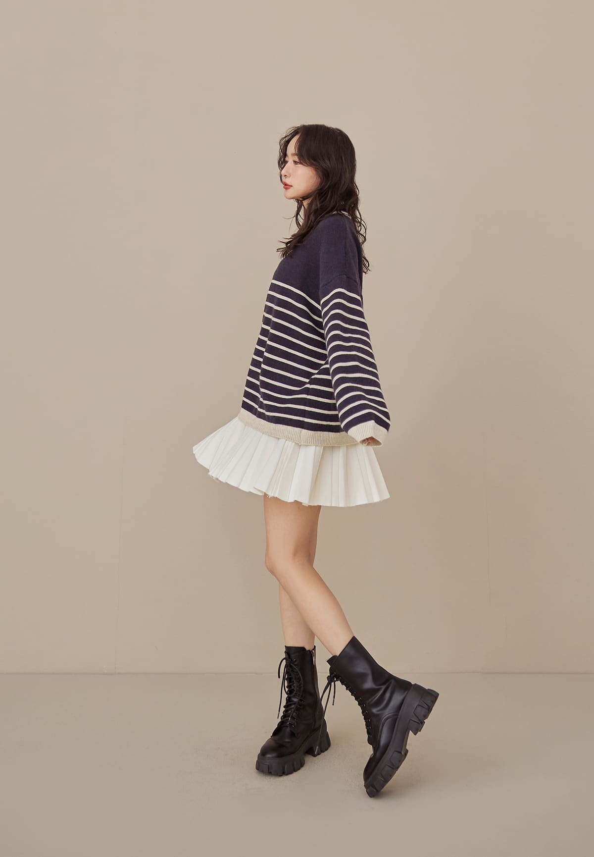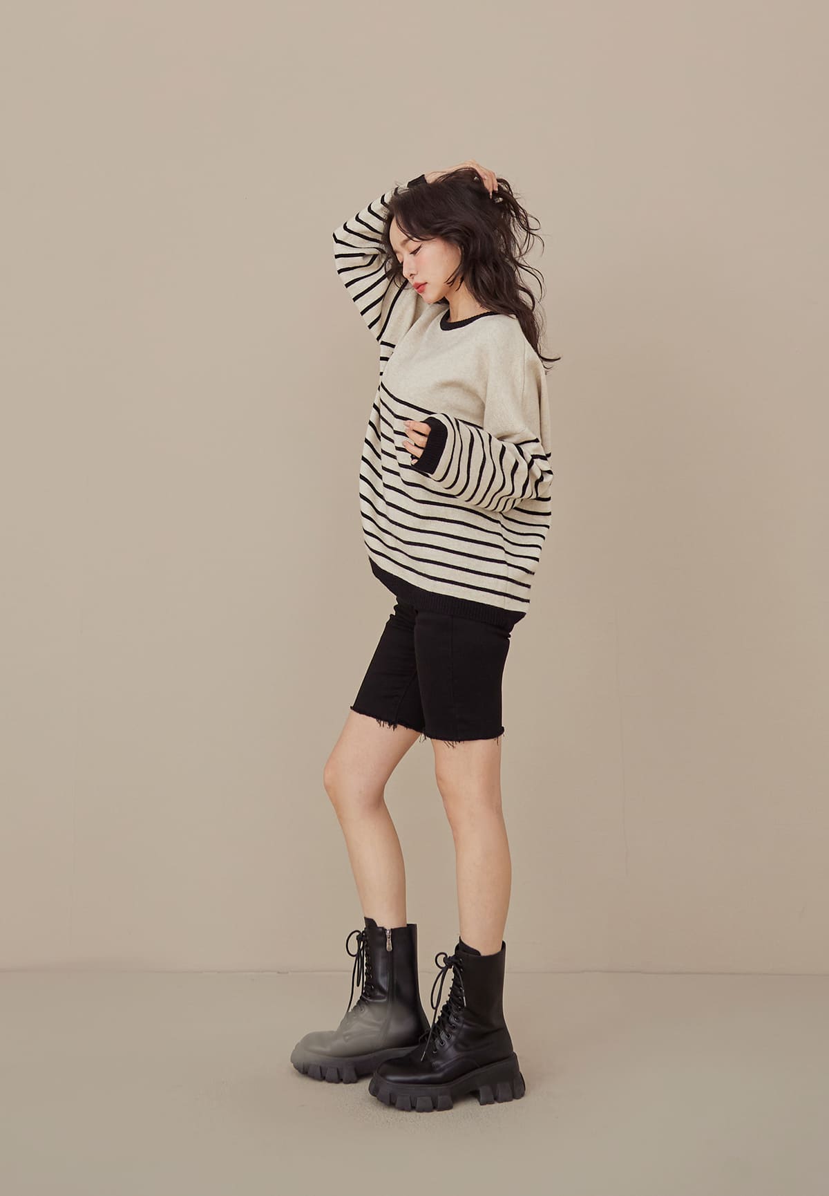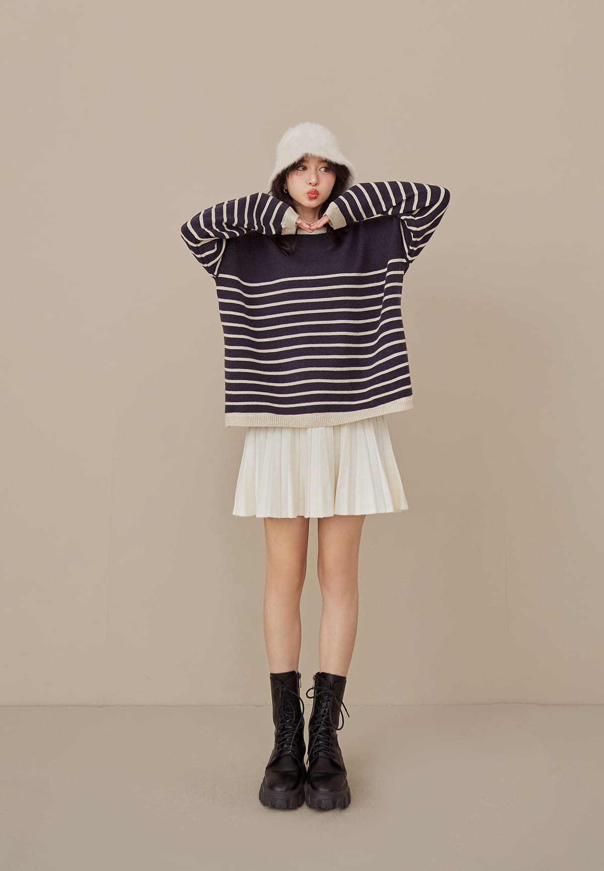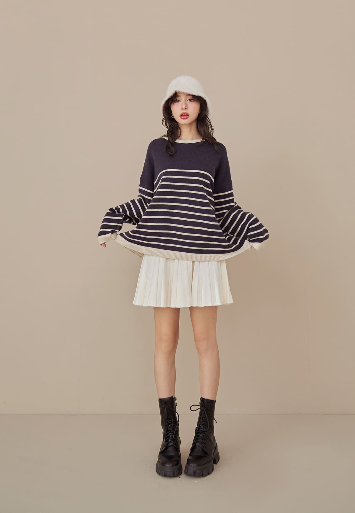 E12鬆弛感穿搭:條紋撞色塊寬鬆針織上衣