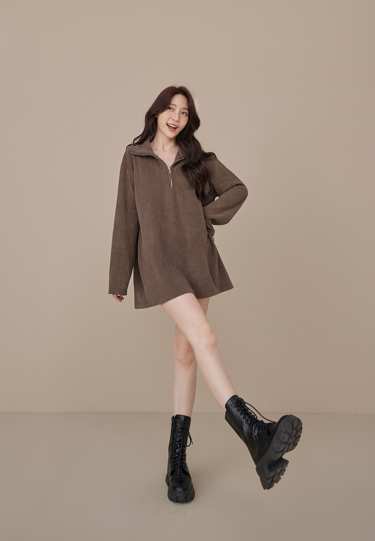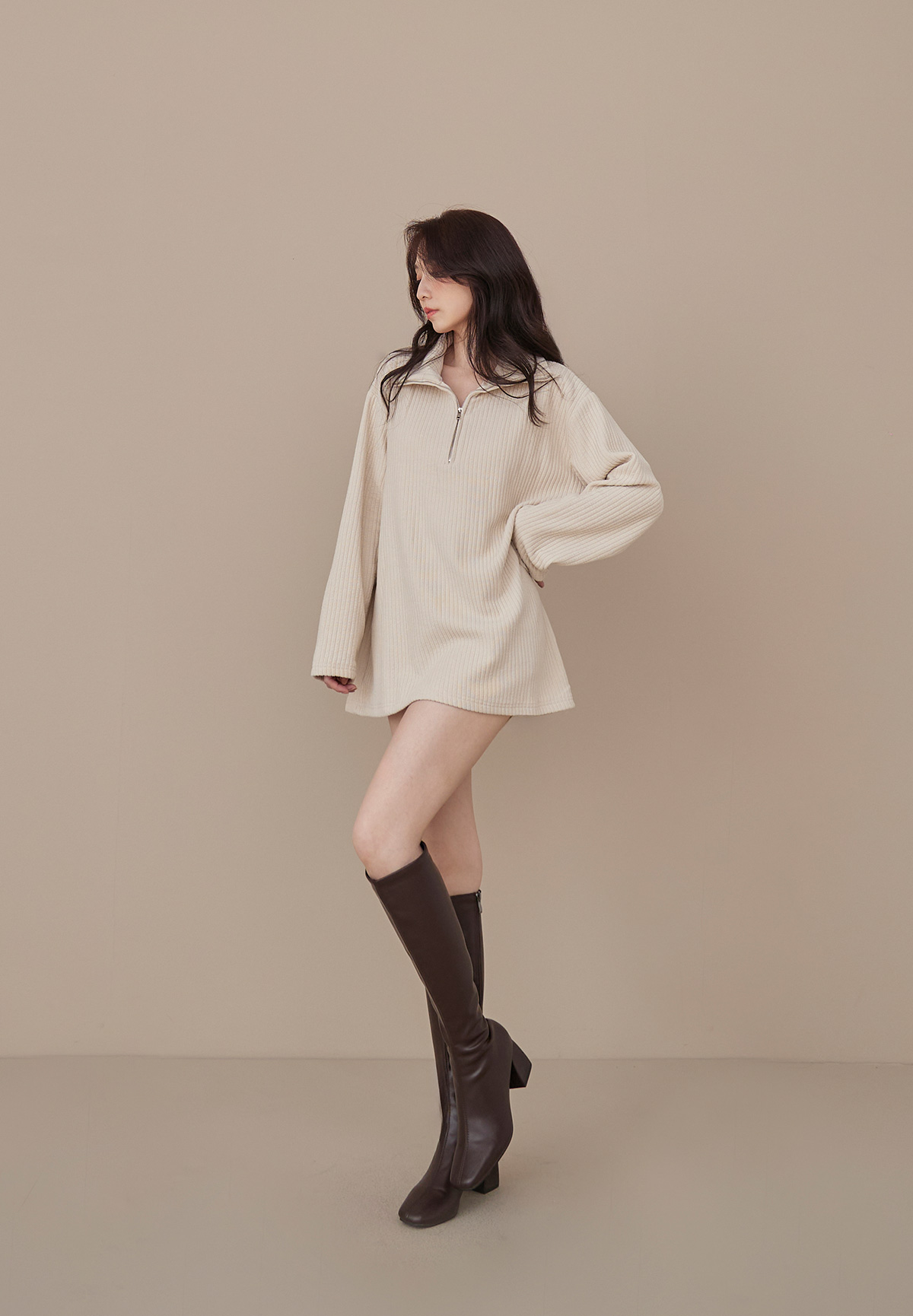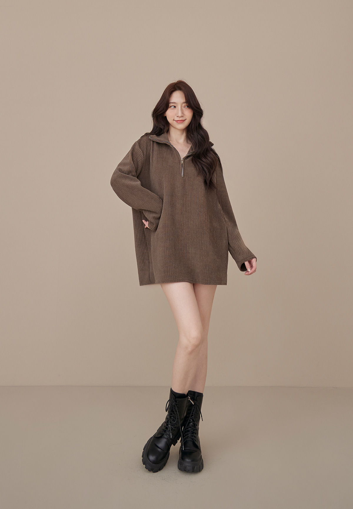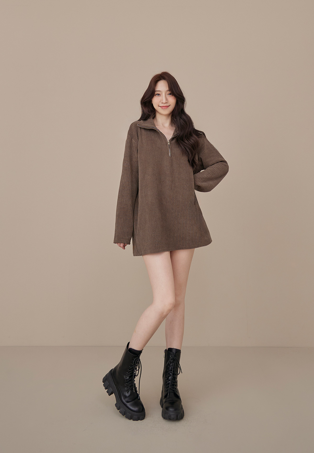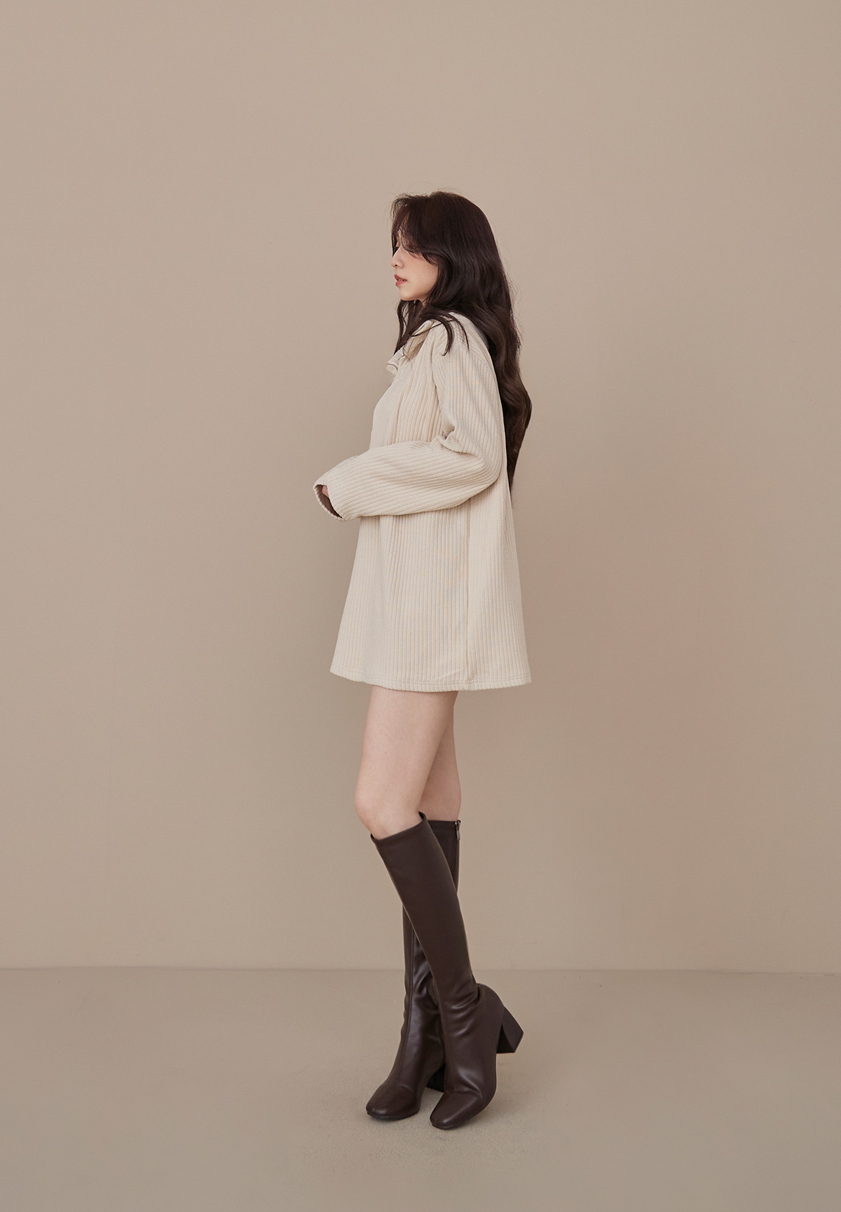 B03低飽和顯質感大地色燈芯絨拉鍊POLO衫/洋裝