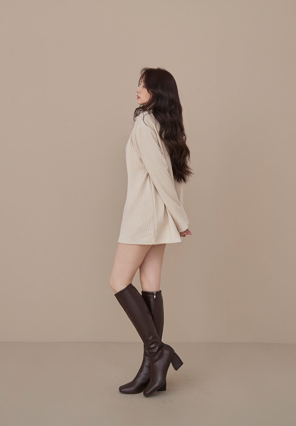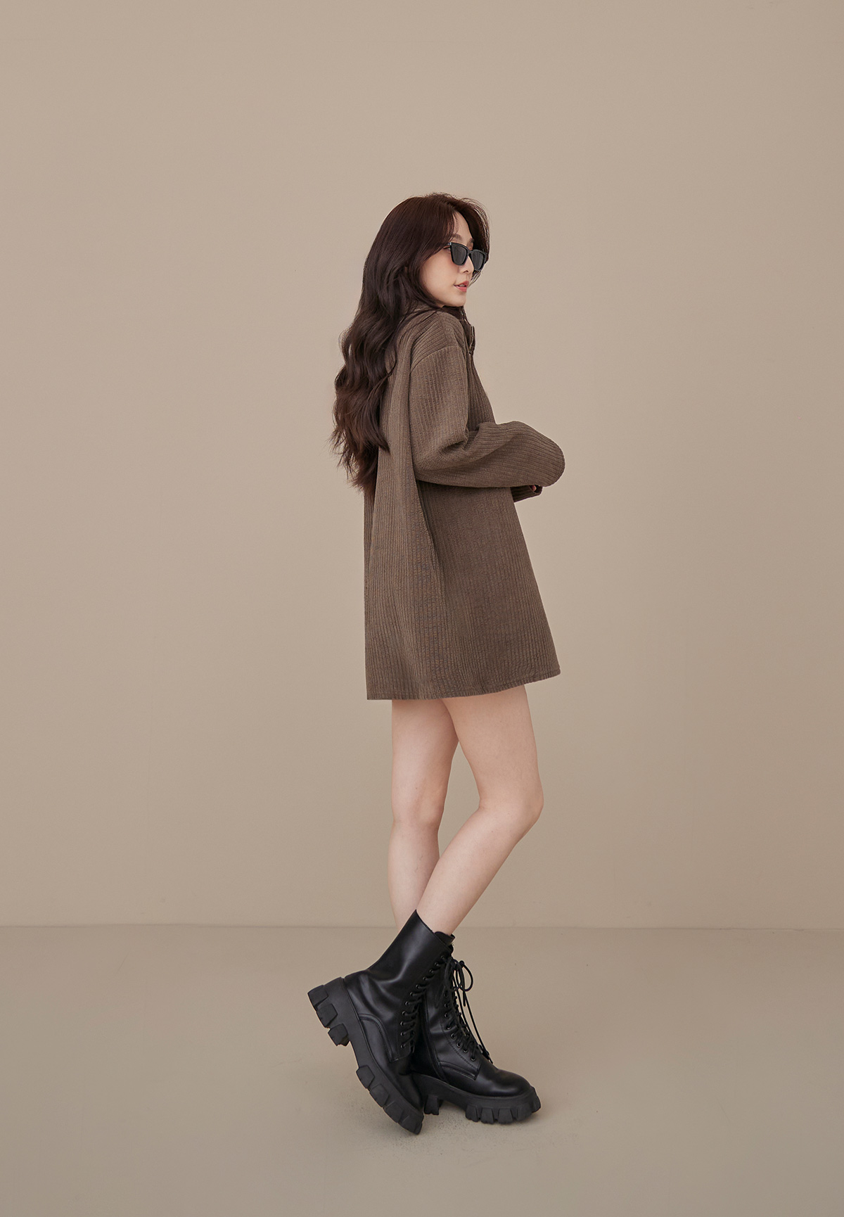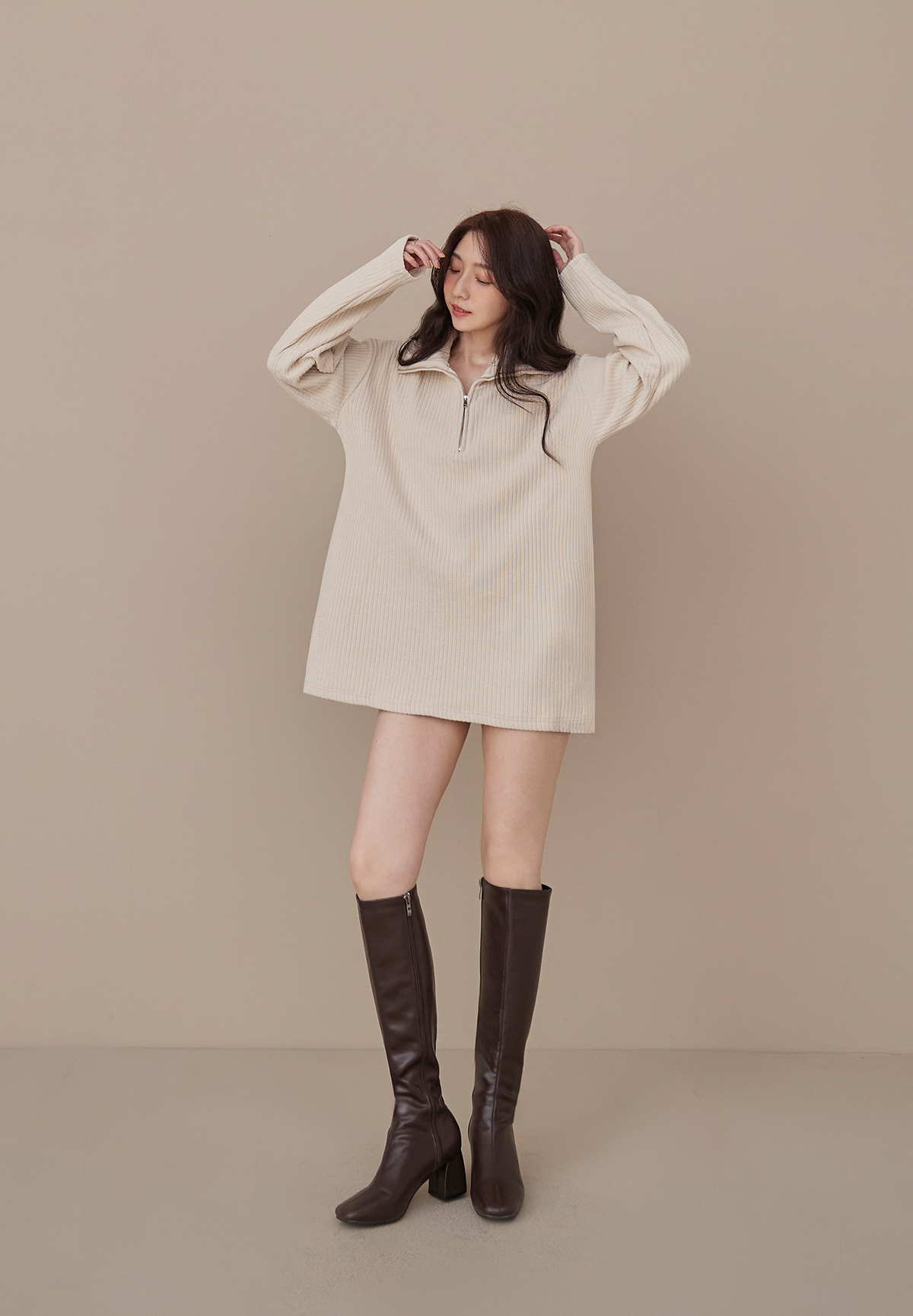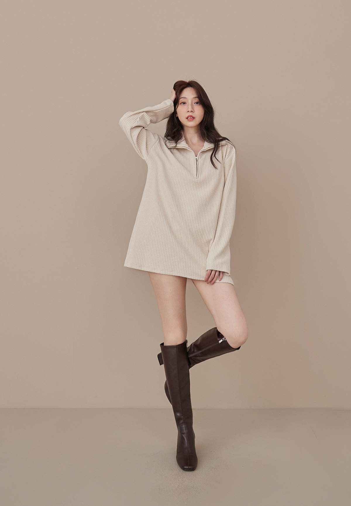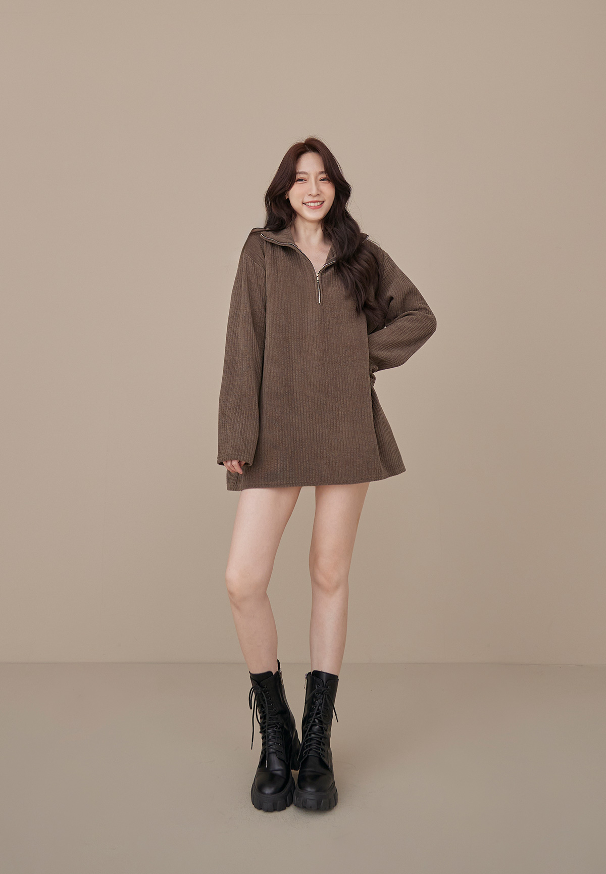 B03低飽和顯質感大地色燈芯絨拉鍊POLO衫/洋裝