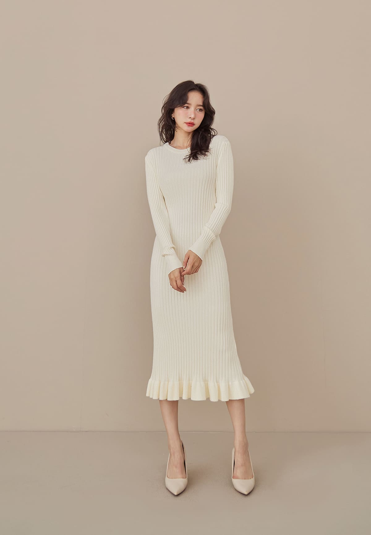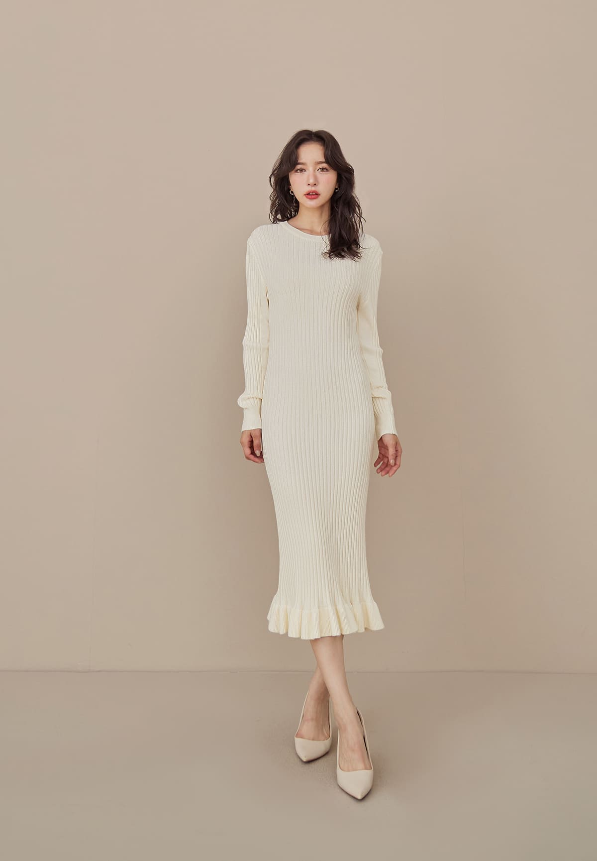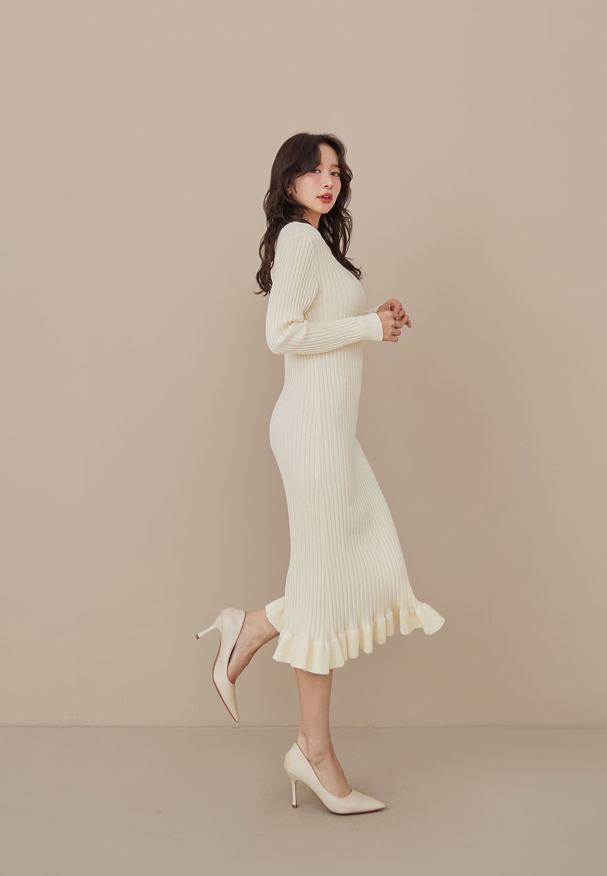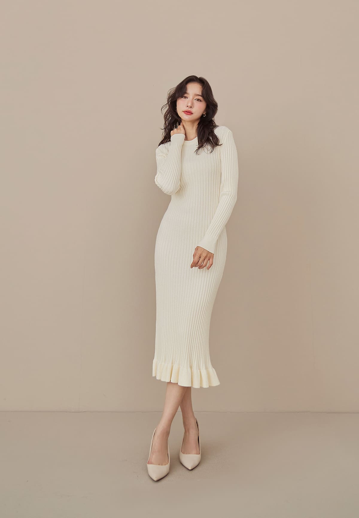 E22維也納華爾滋荷葉邊魚尾裙針織洋裝