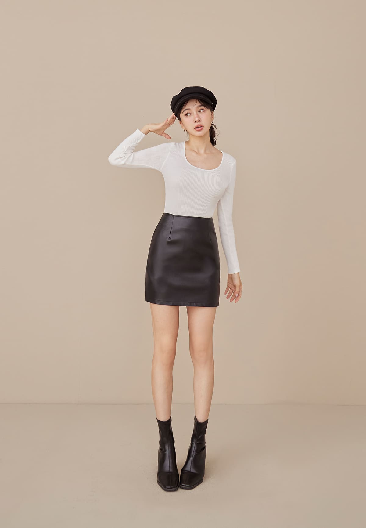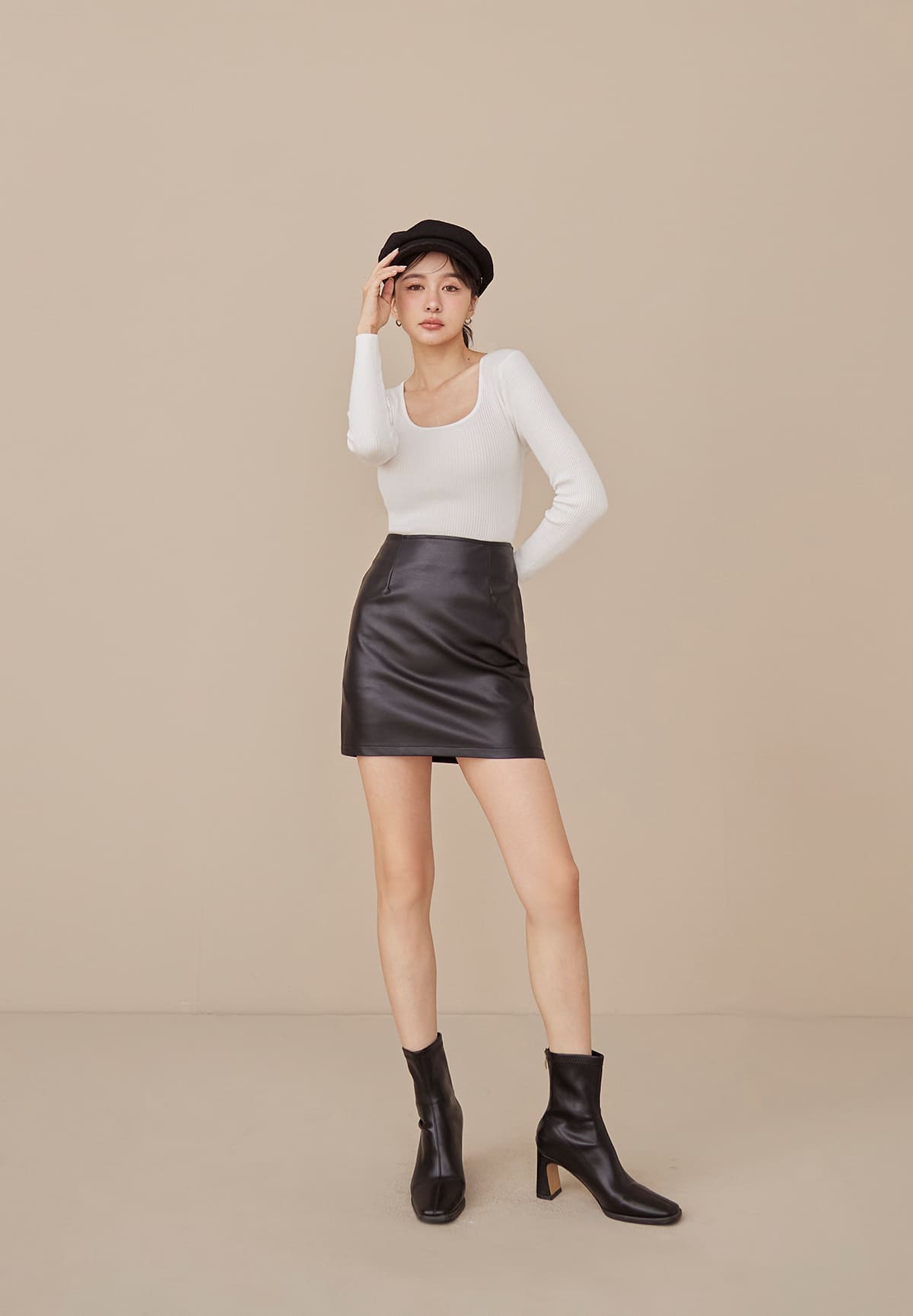 B15 (秋冬穿搭3寶)辣辣有質感皮革短裙