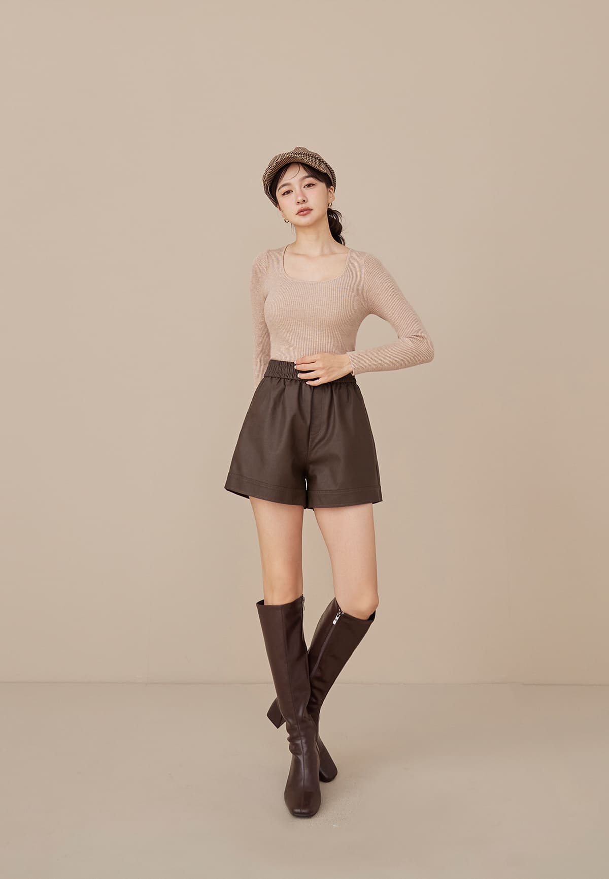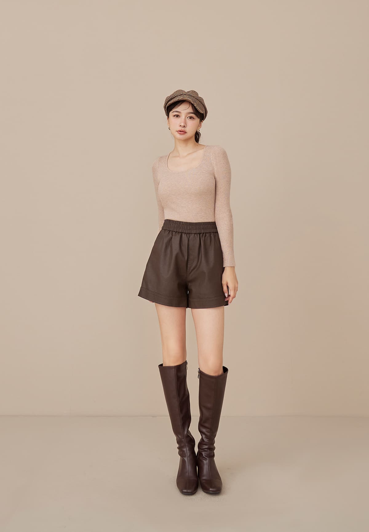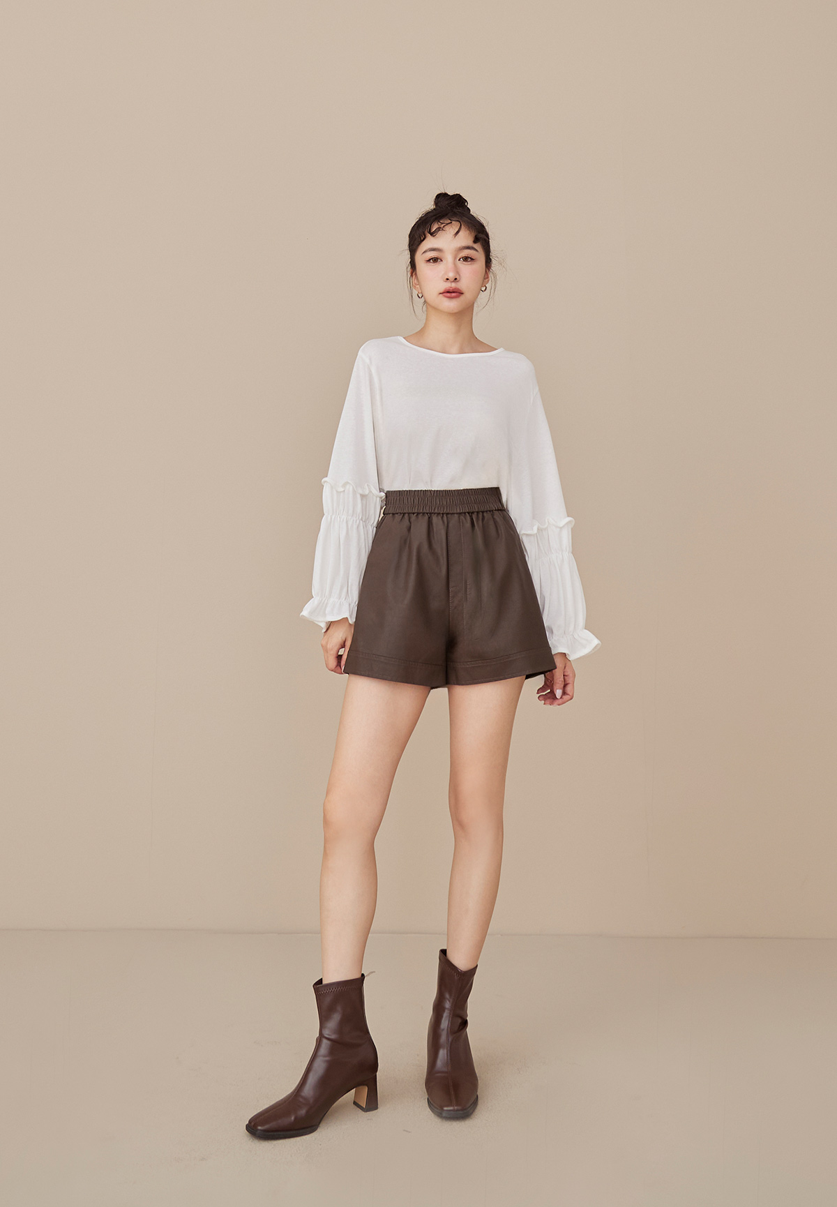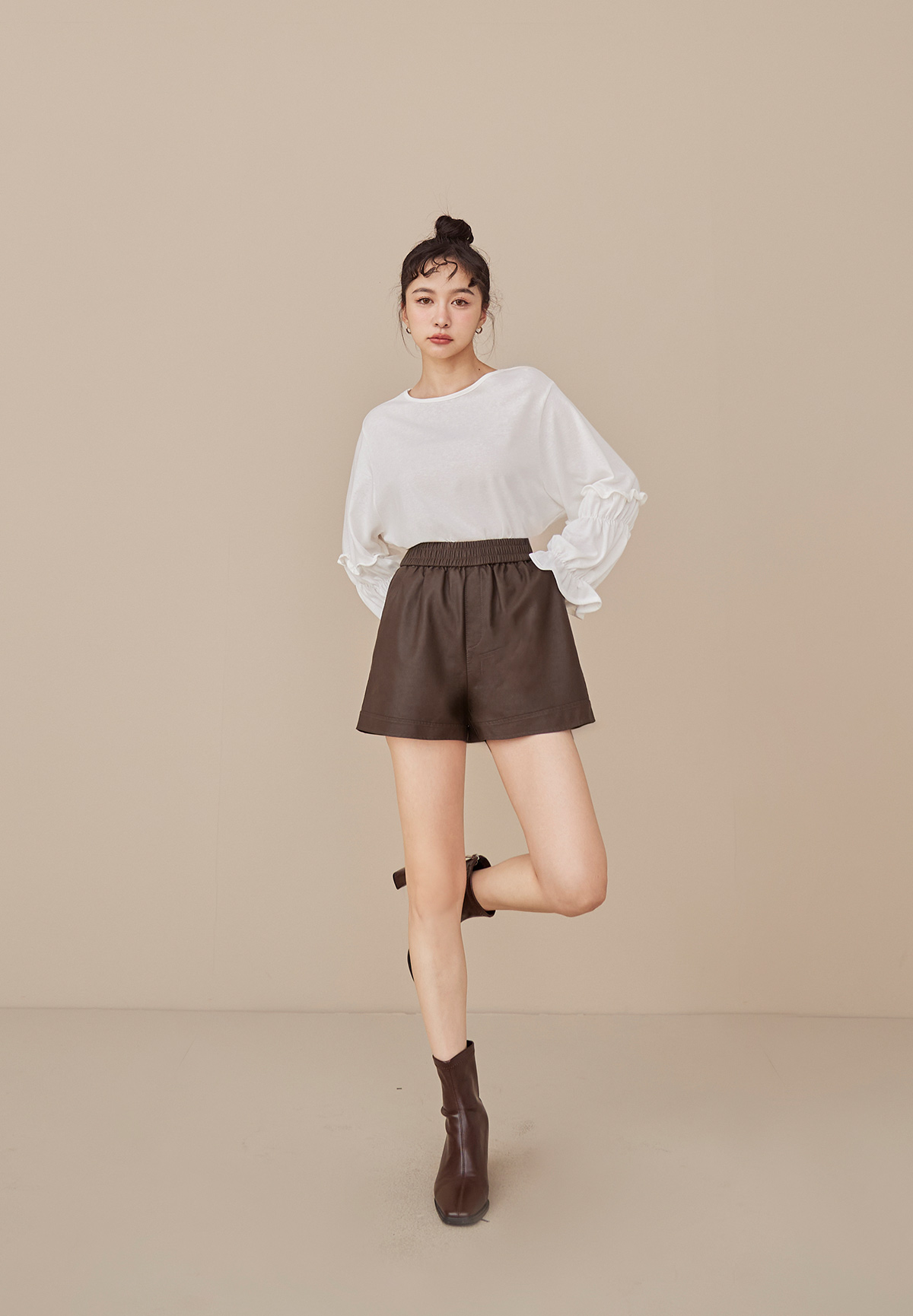 B14 (秋冬穿搭3寶)膠原蛋白軟皮革短褲