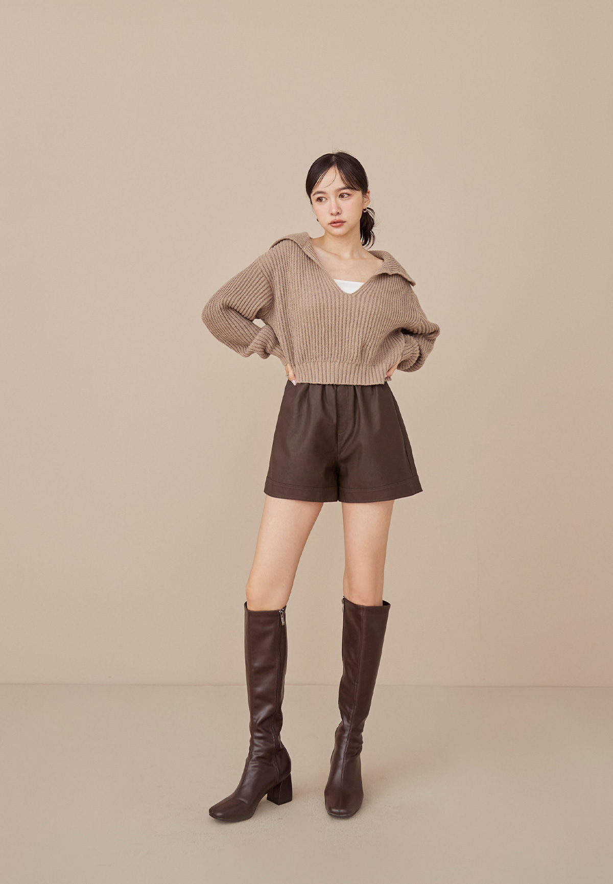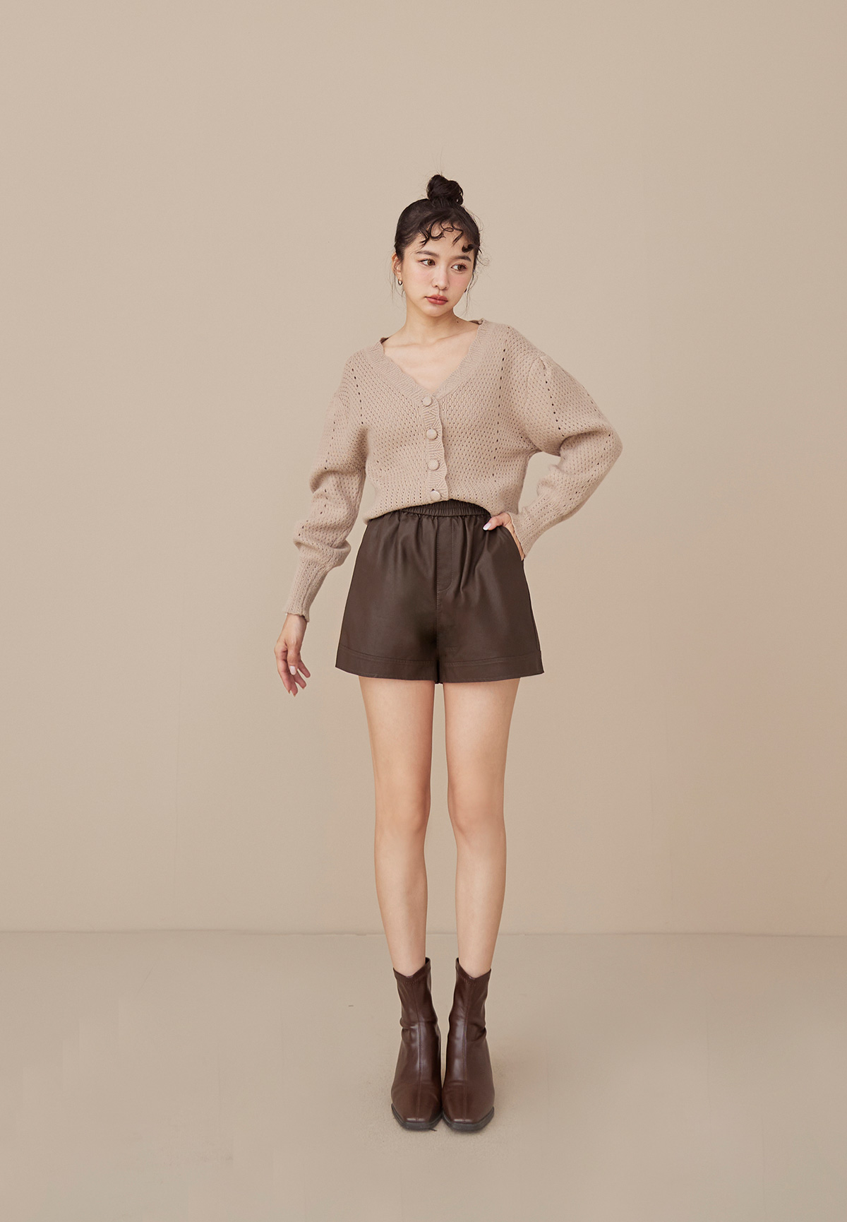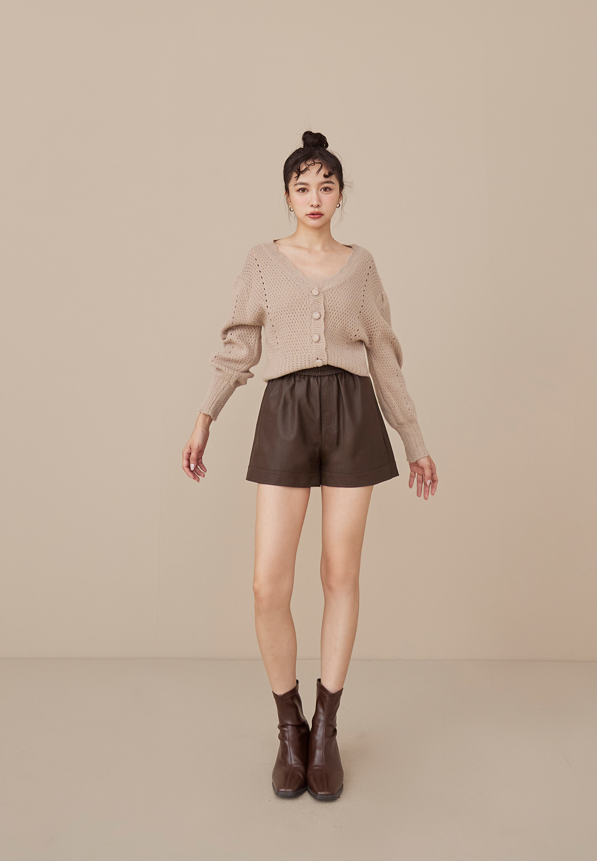 B14 (秋冬穿搭3寶)膠原蛋白軟皮革短褲