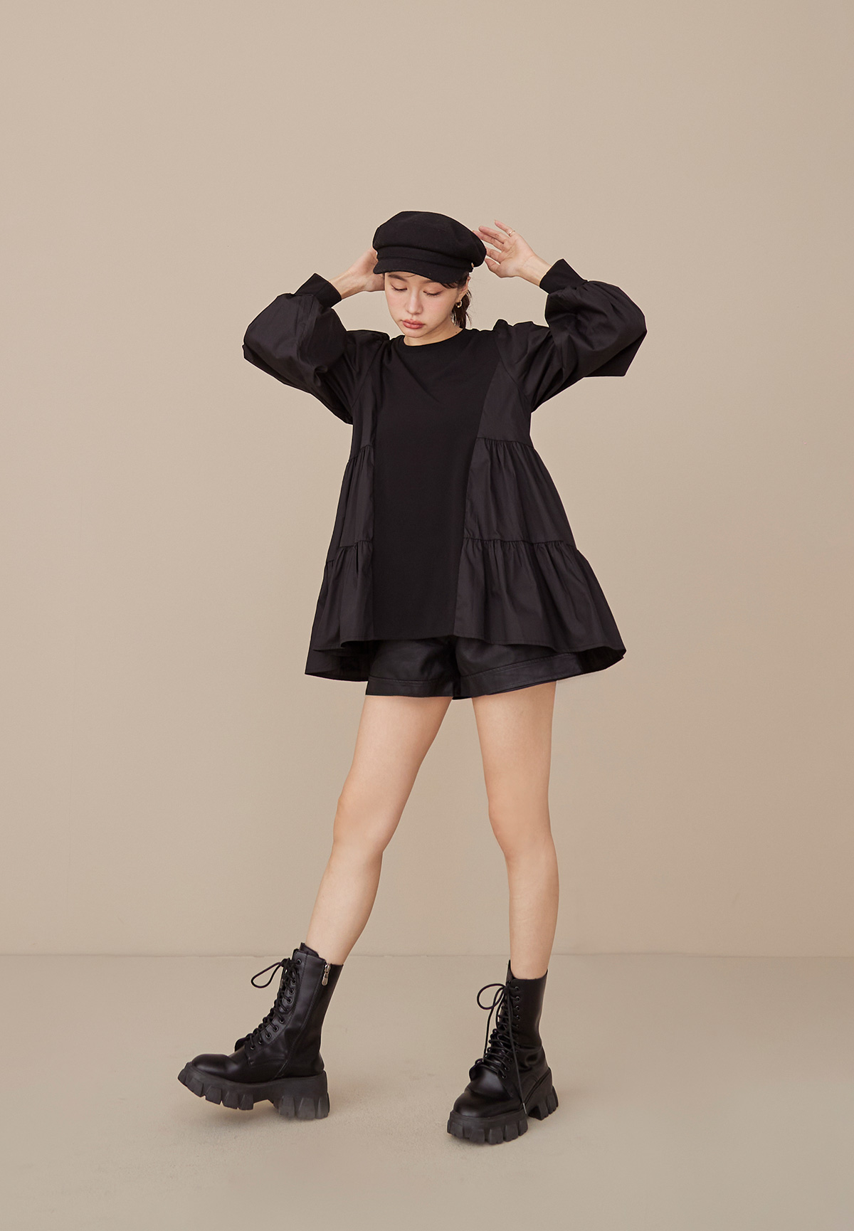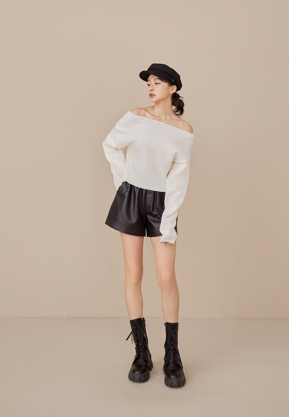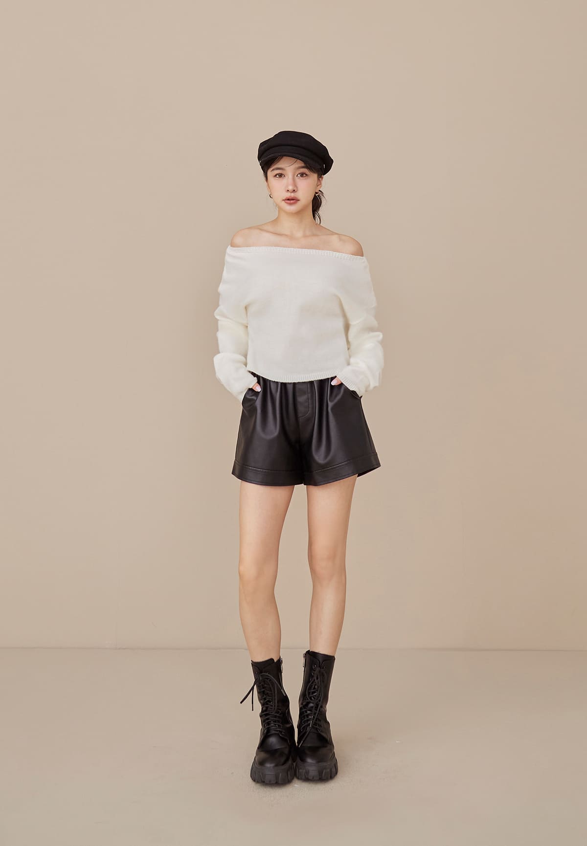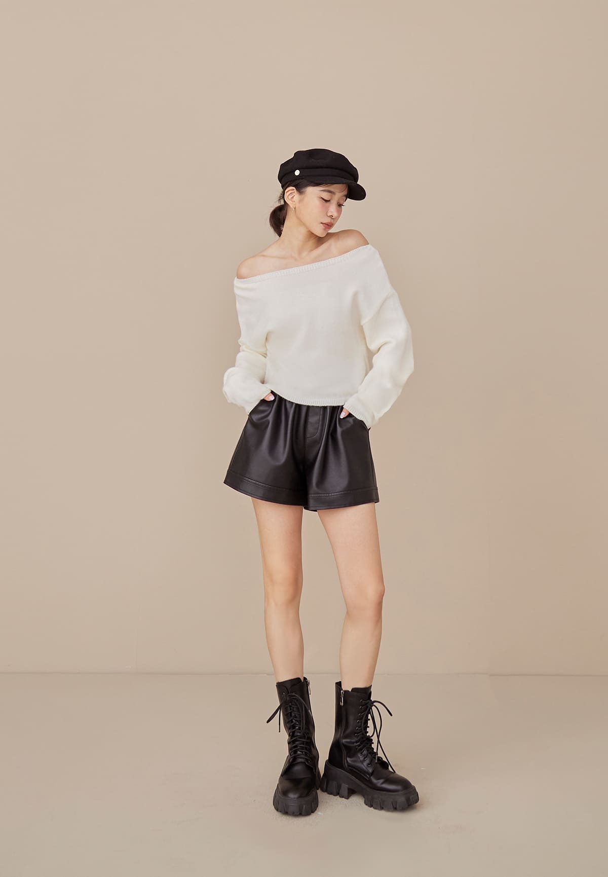 B14 (秋冬穿搭3寶)膠原蛋白軟皮革短褲