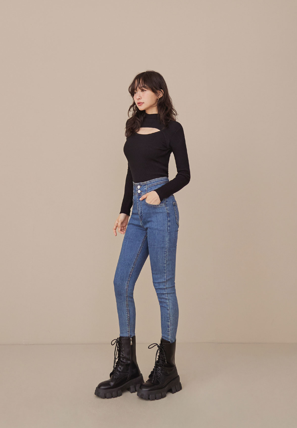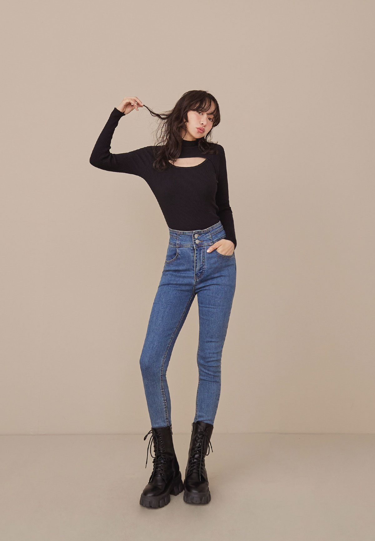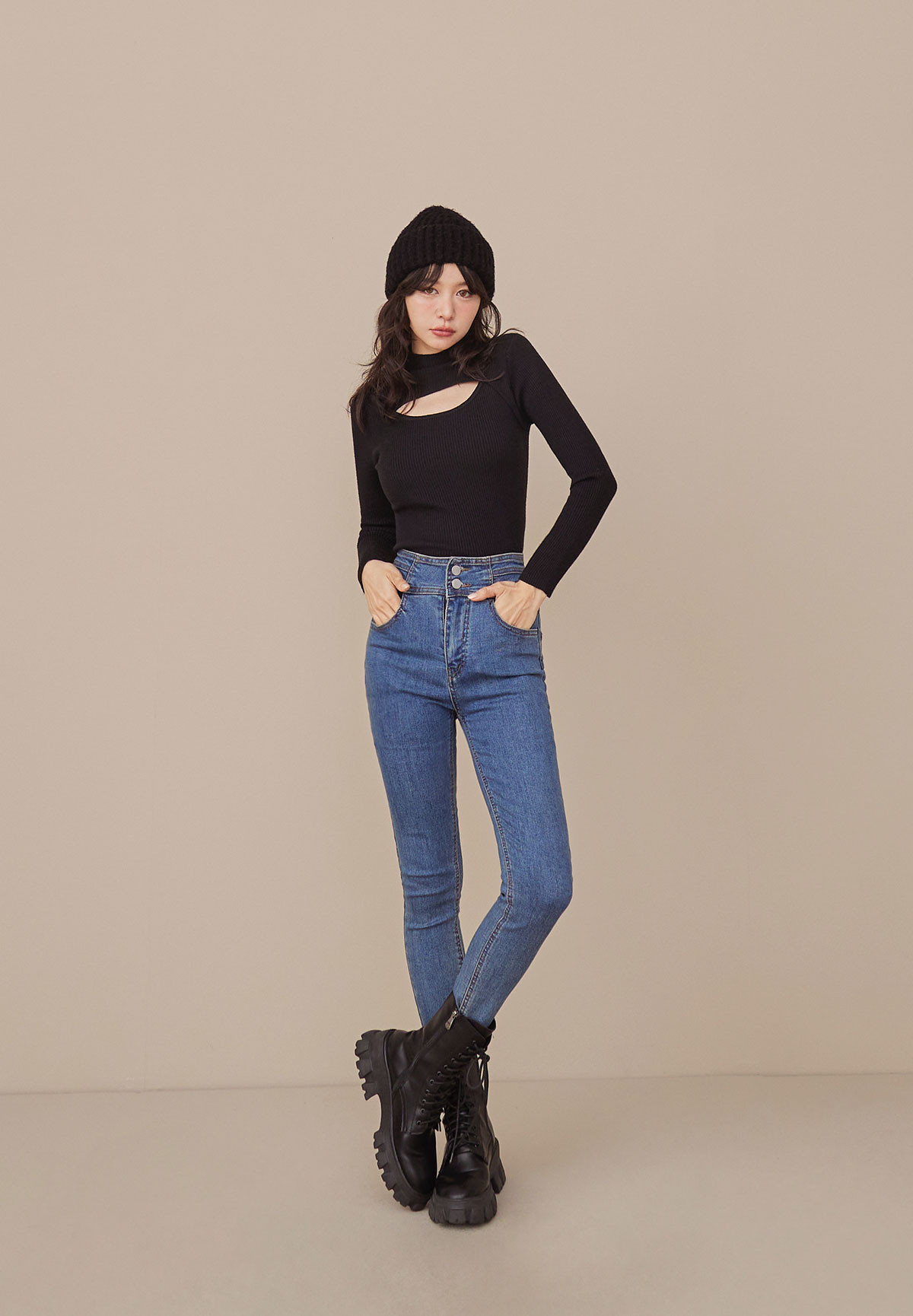 A38辣妹沒有冬天鏤空設計小立領針織衫