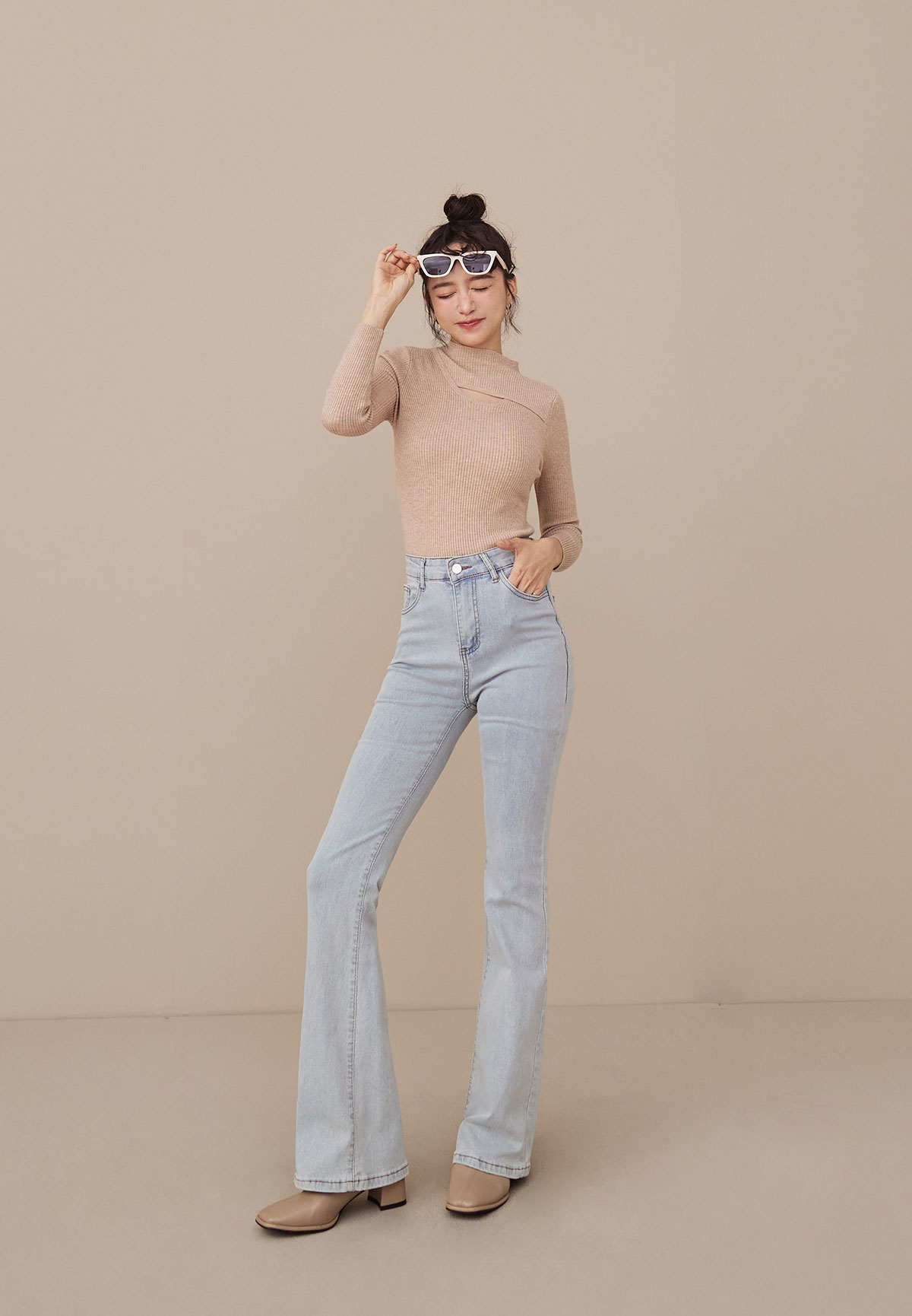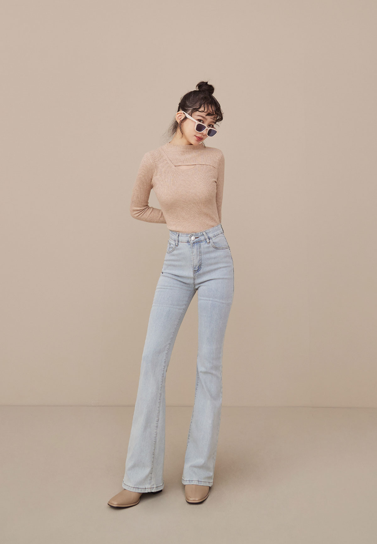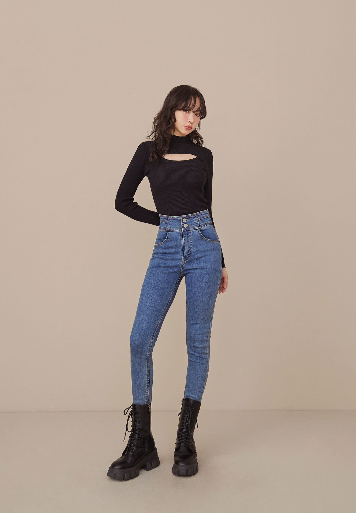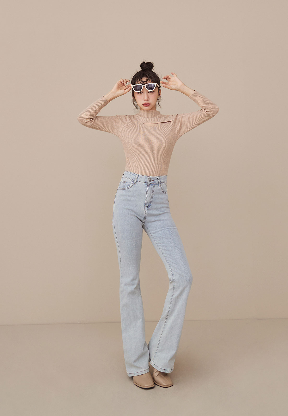 A38辣妹沒有冬天鏤空設計小立領針織衫