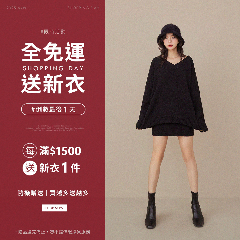 E16 (厚磅系列)反車縫捲邊寬袖針織上衣/洋裝